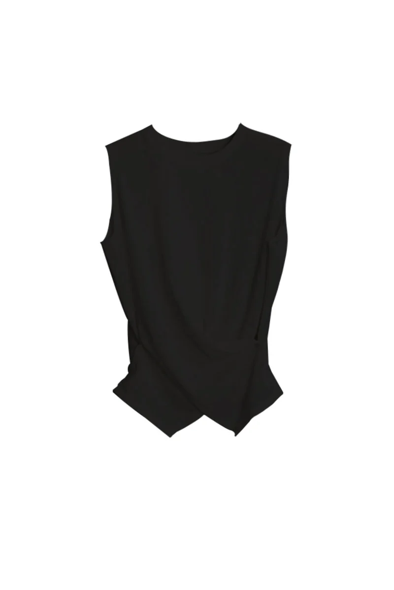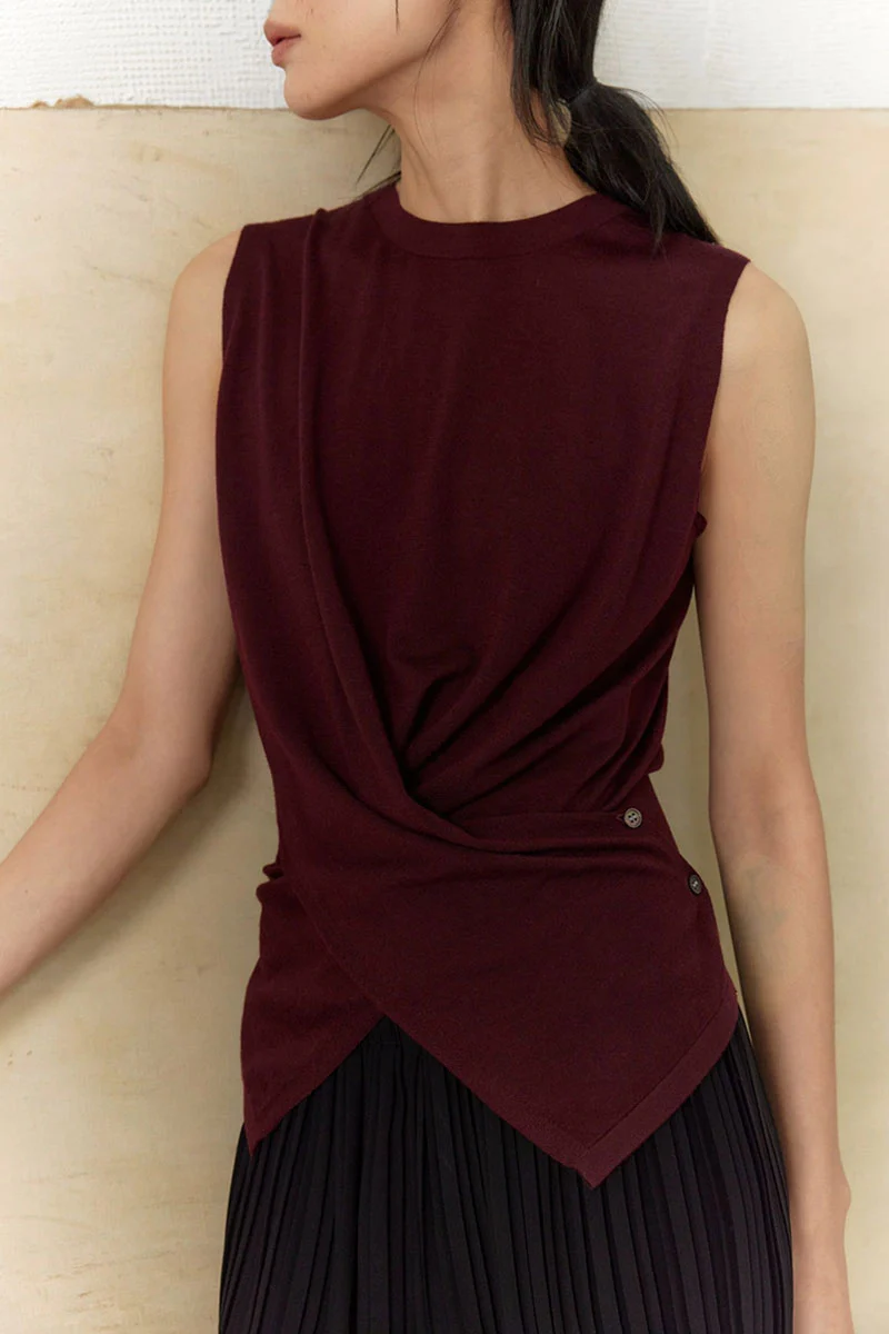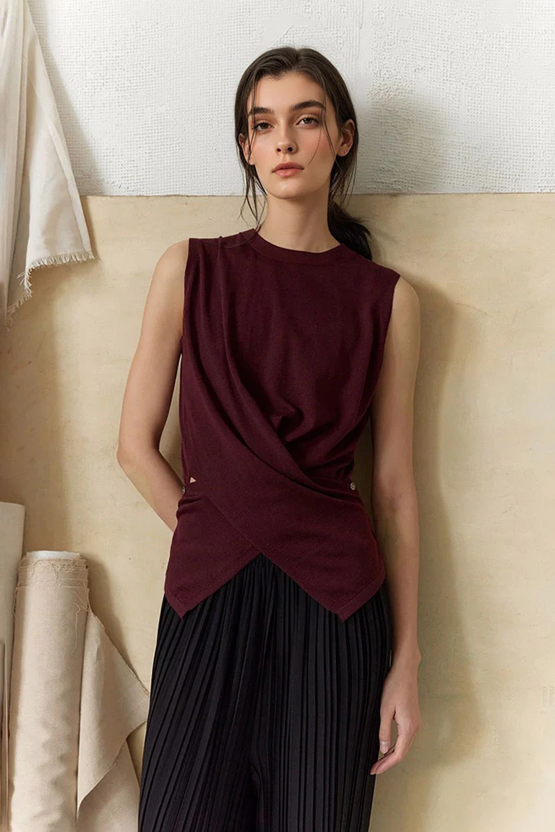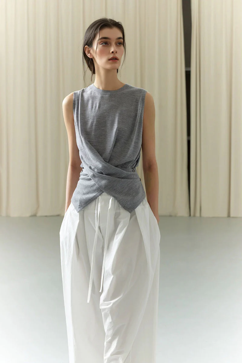 100 Wool Knit Asymmetrical Crew-Neck Wrap Tank Top
