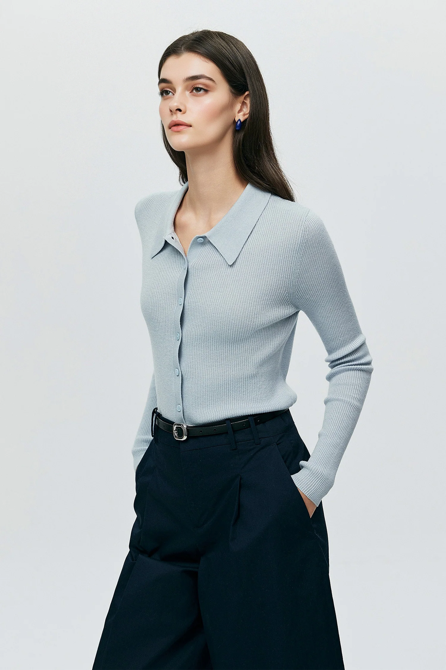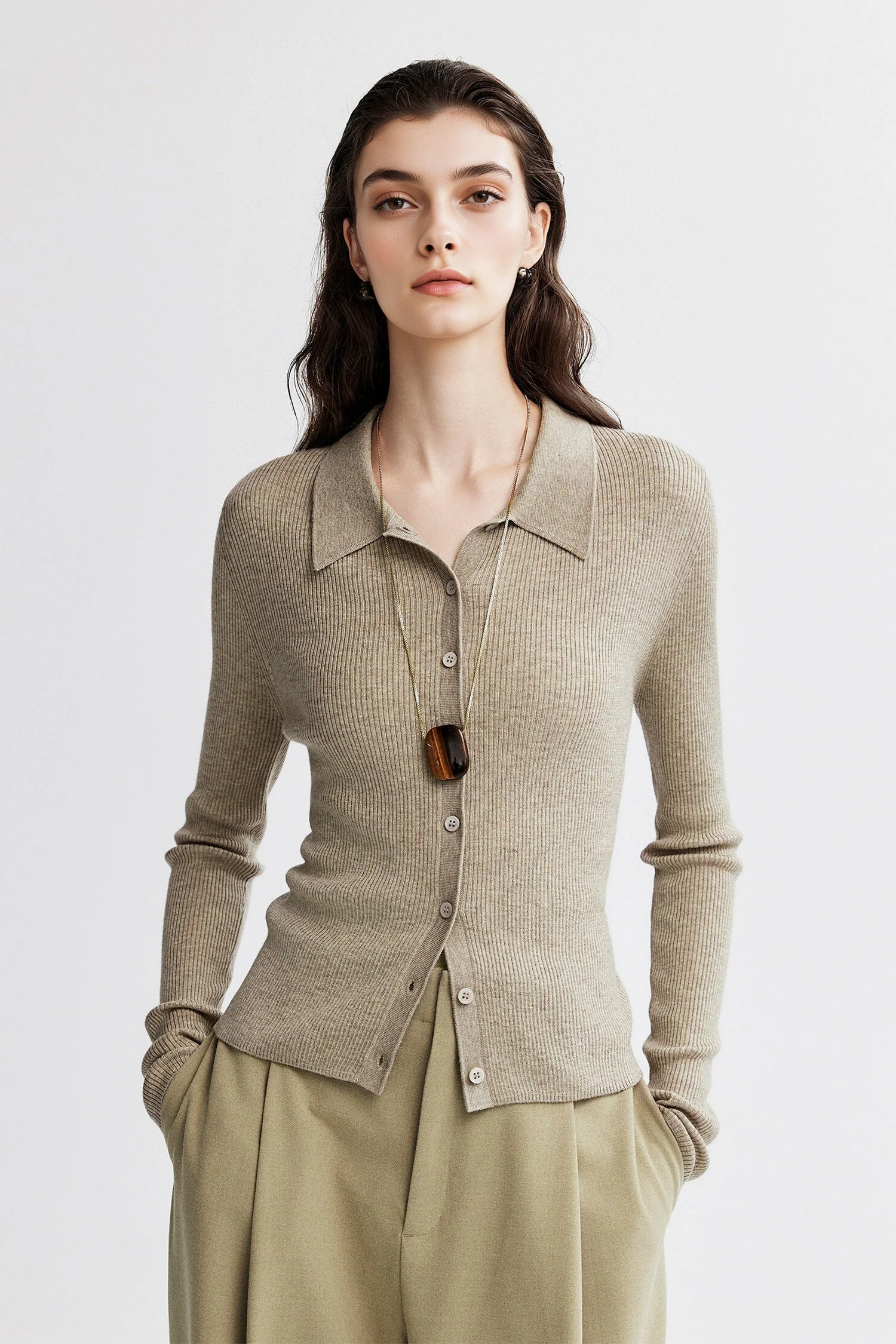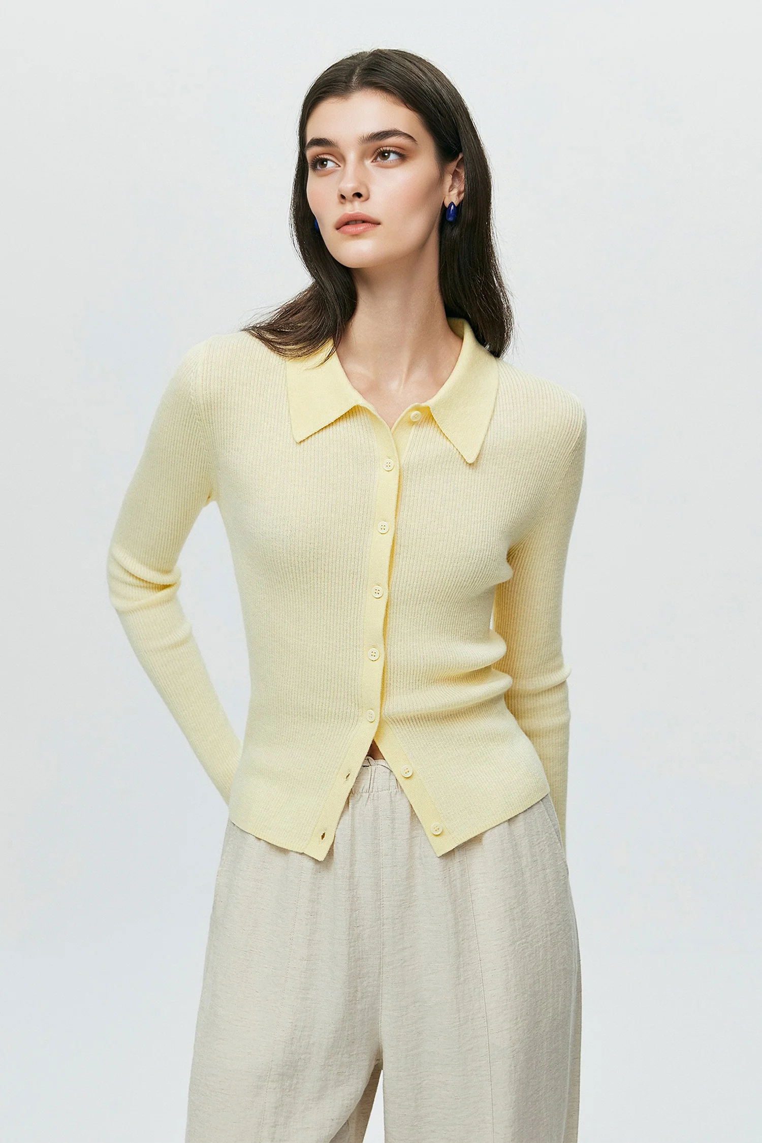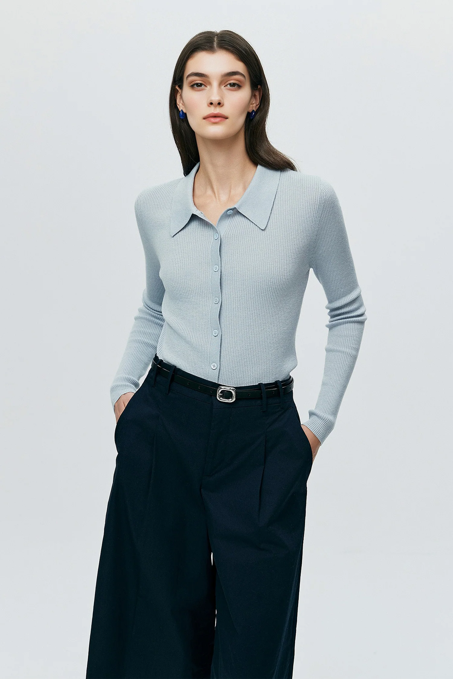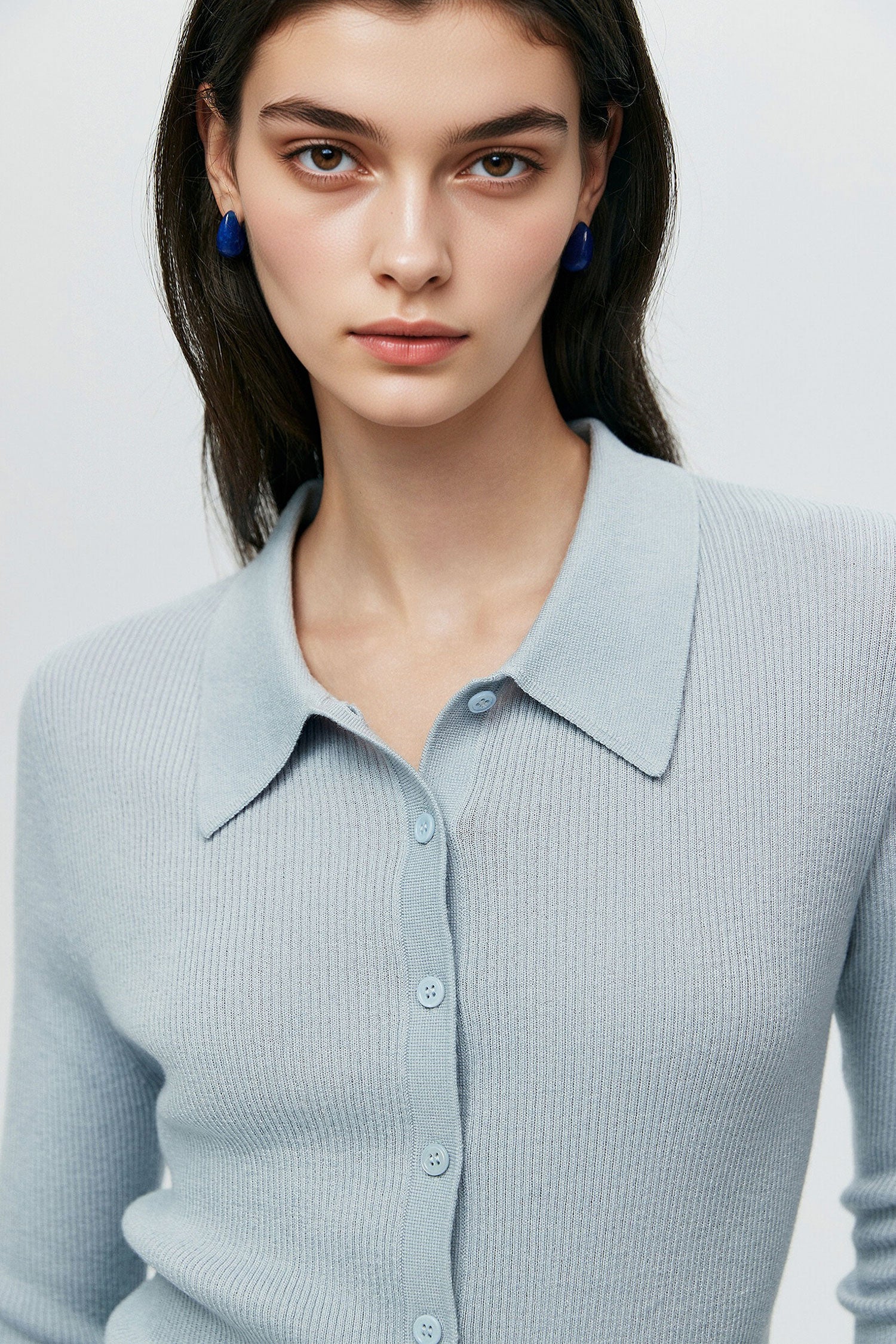 Lightweight Wool-Blend Fitted Polo Cardigan Sweater