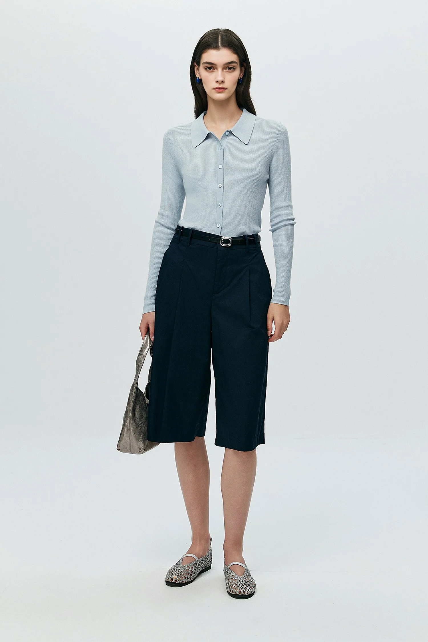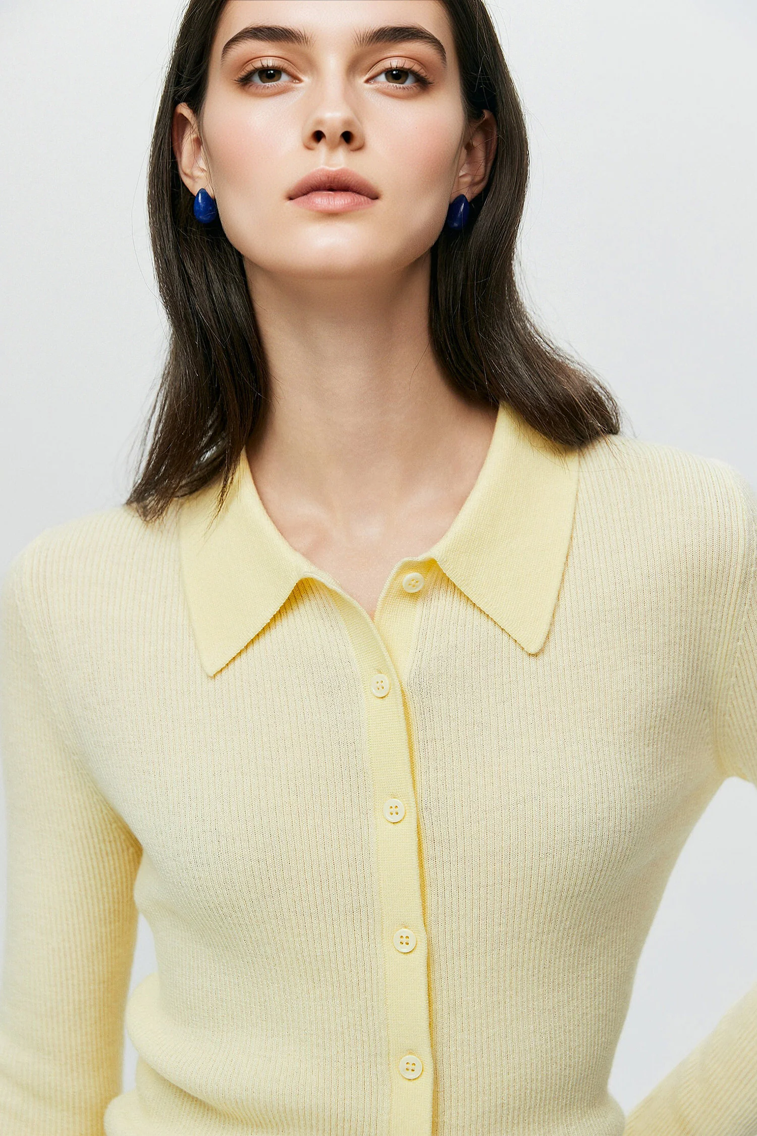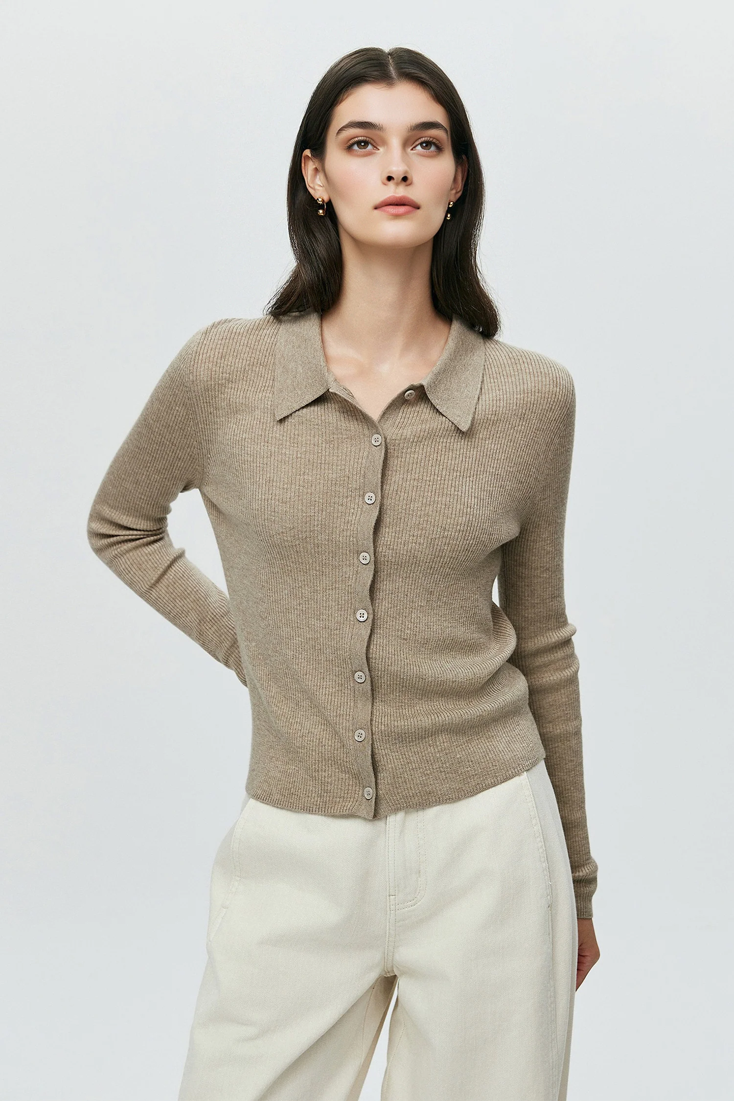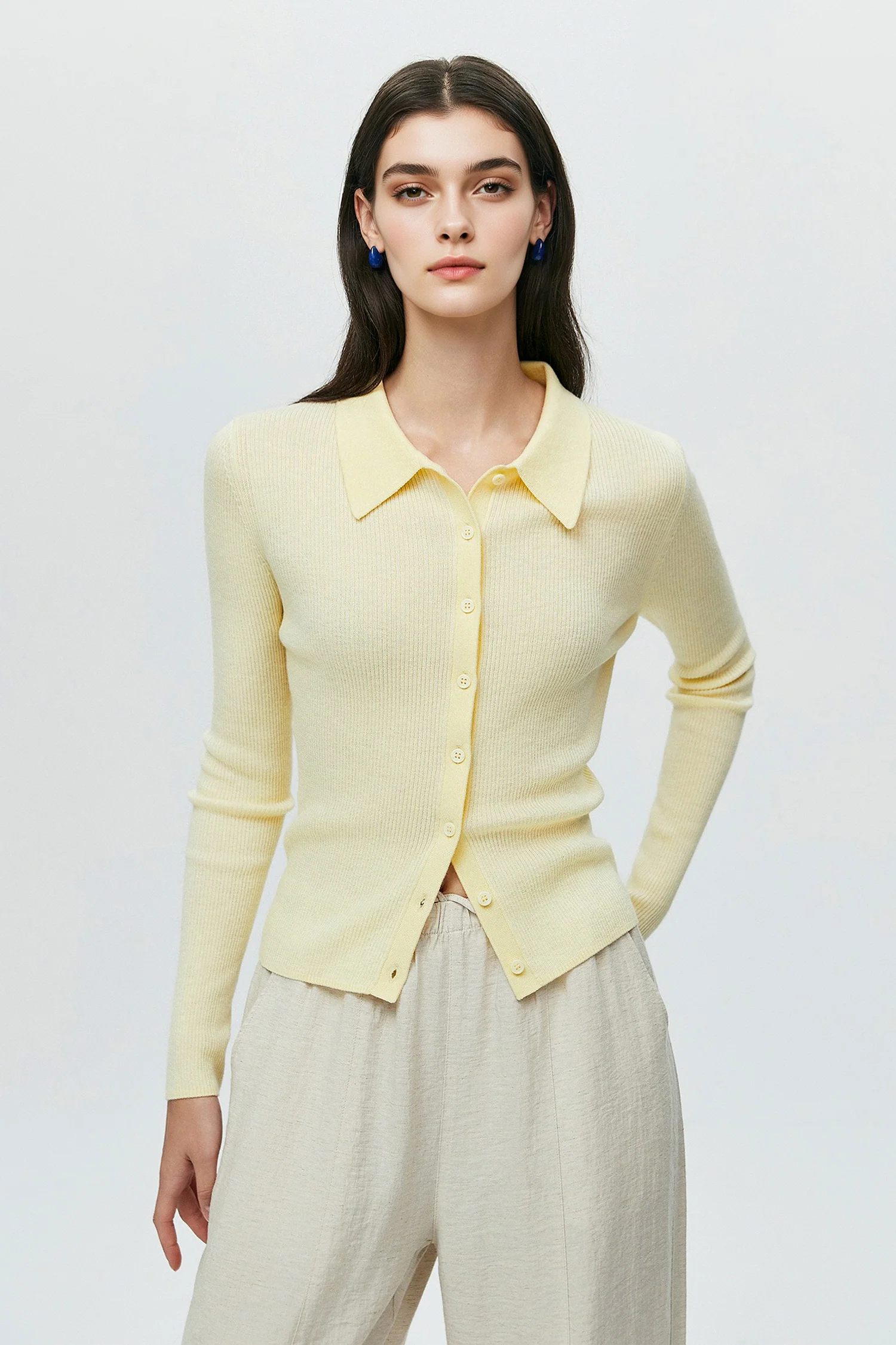 Lightweight Wool-Blend Fitted Polo Cardigan Sweater