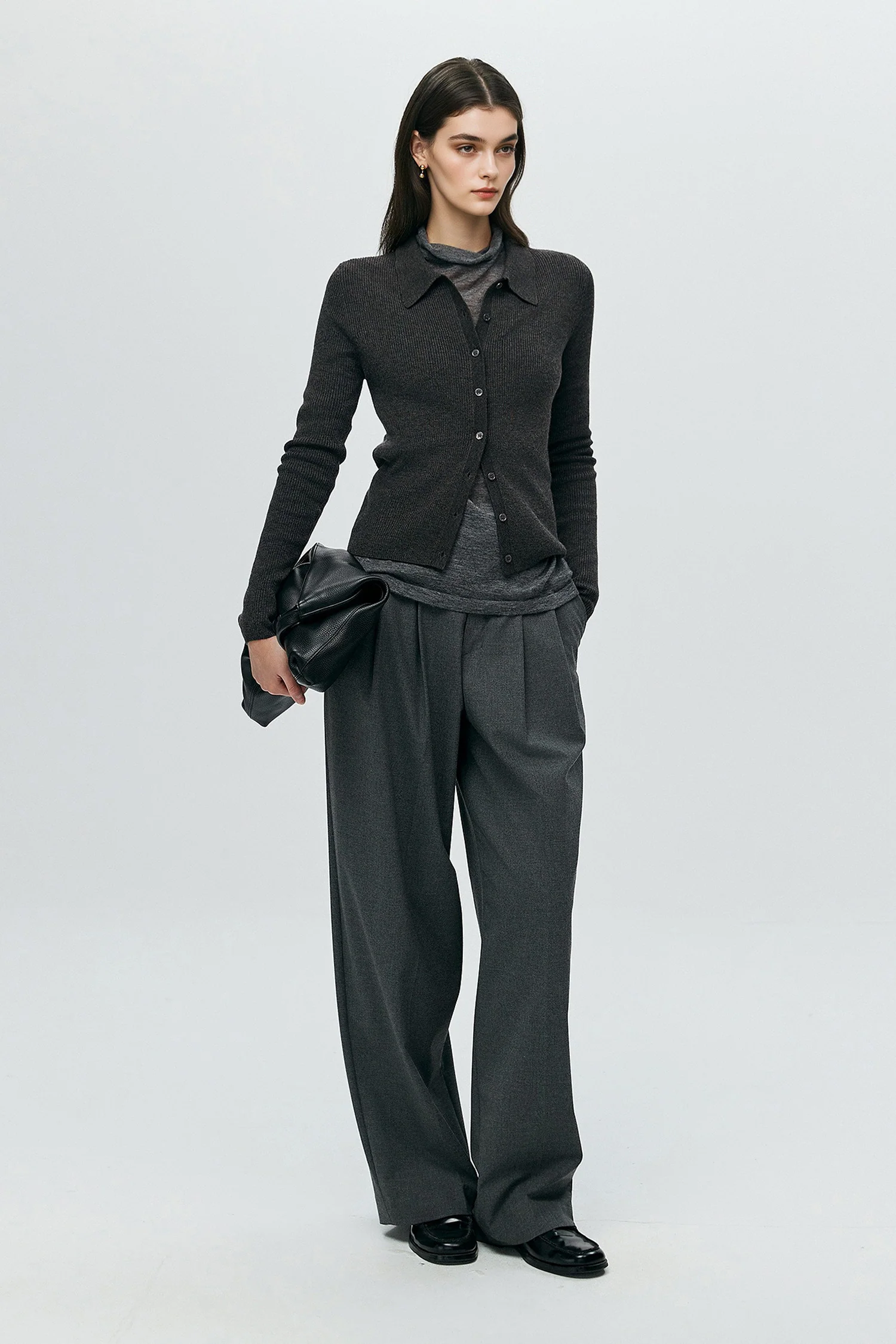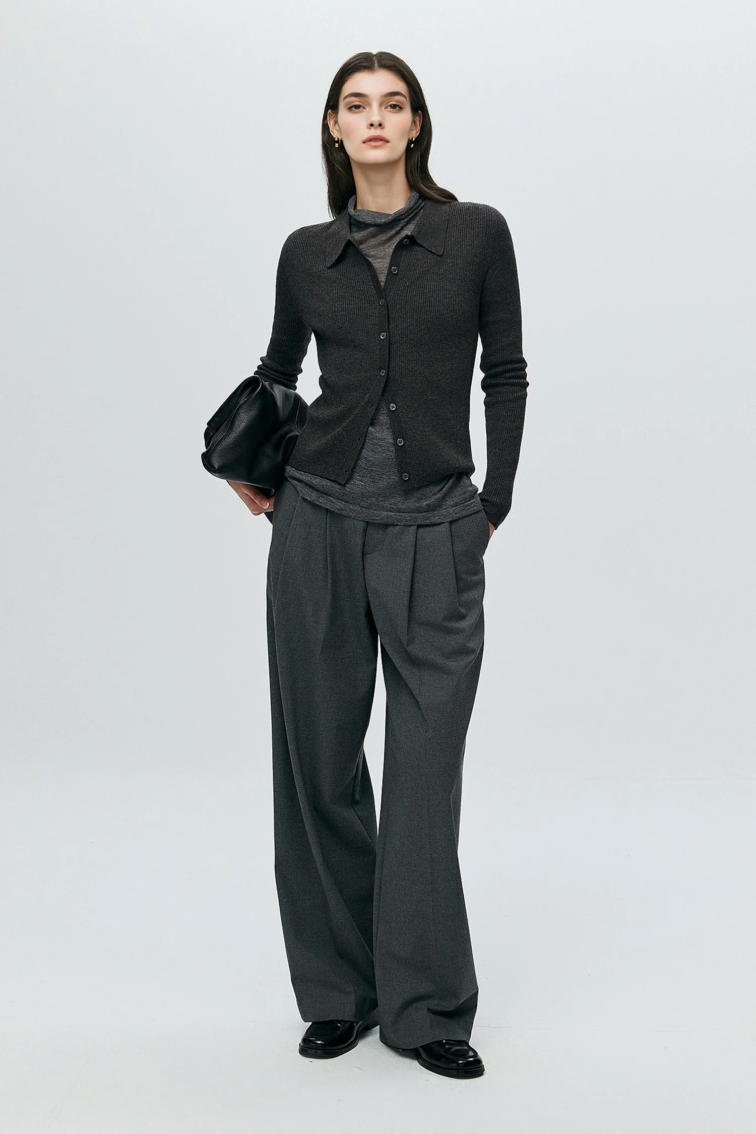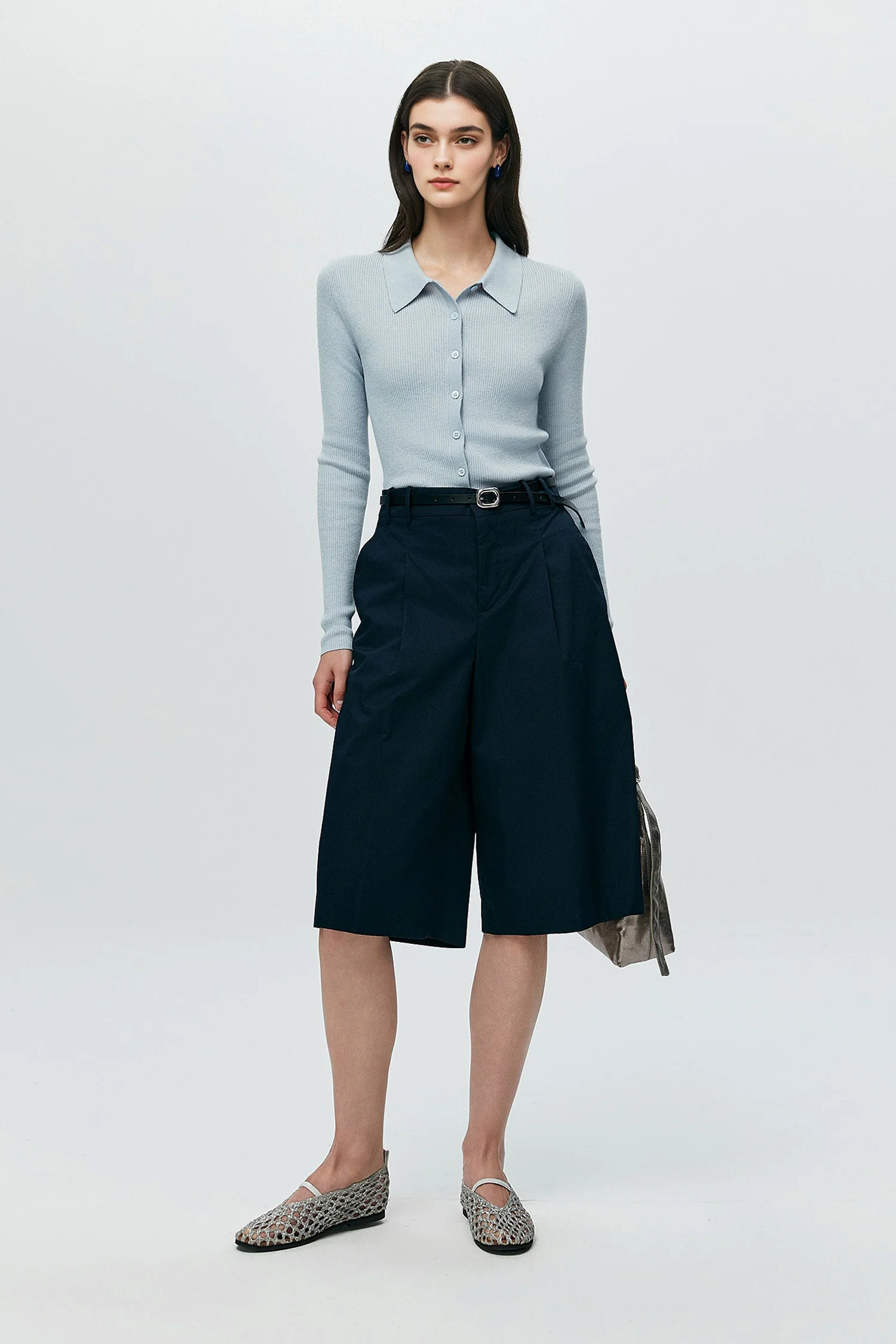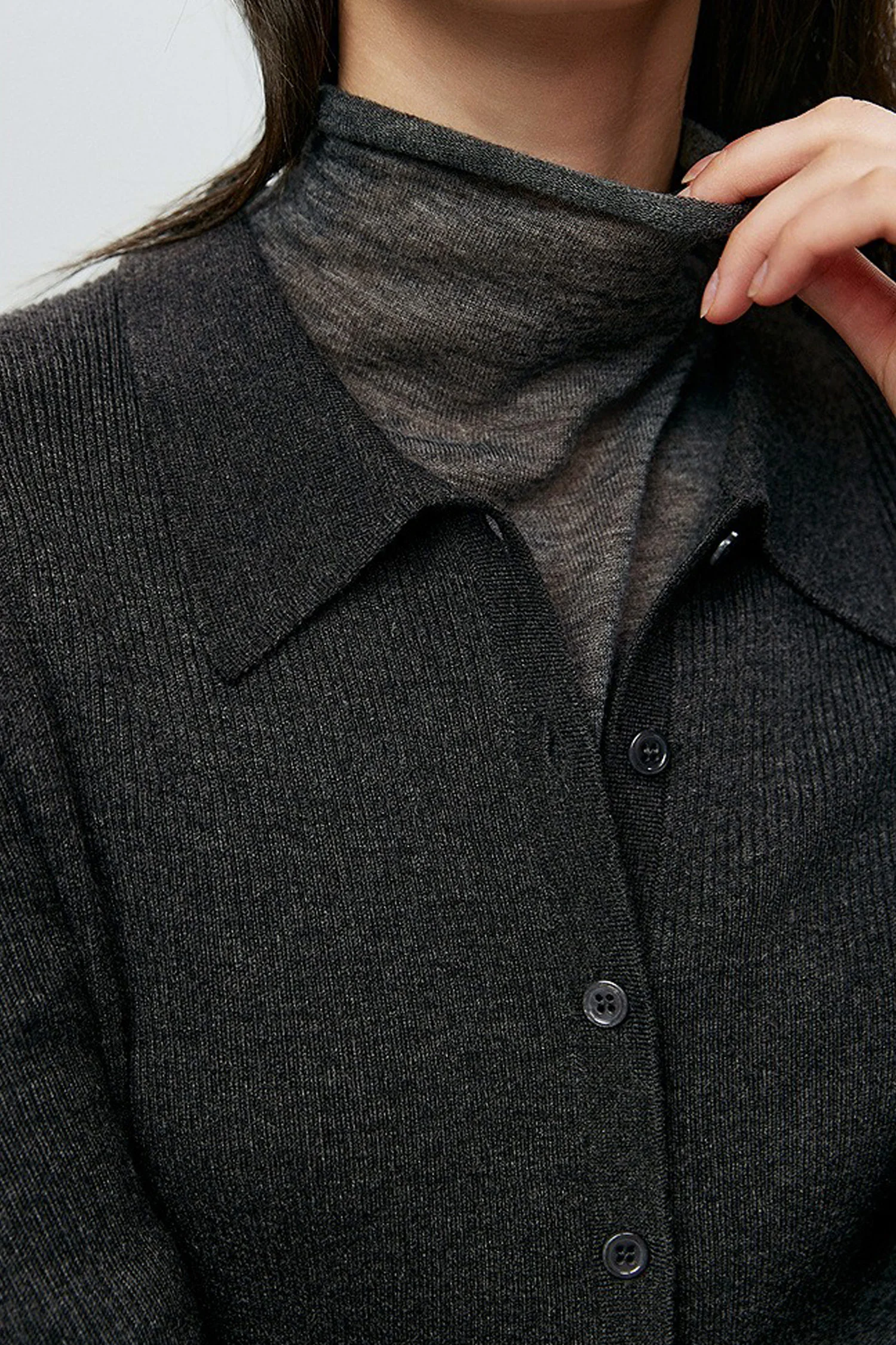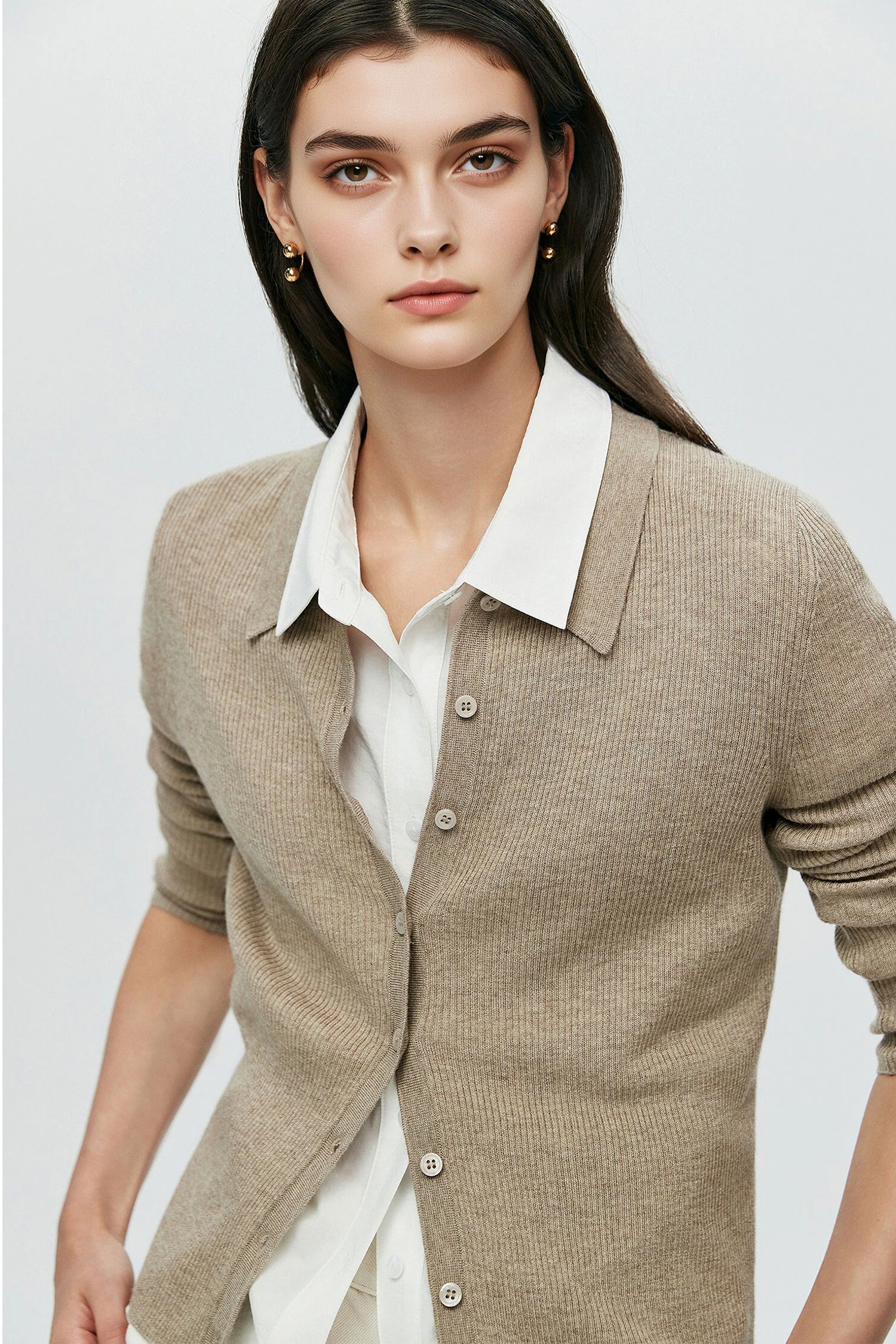 Lightweight Wool-Blend Fitted Polo Cardigan Sweater