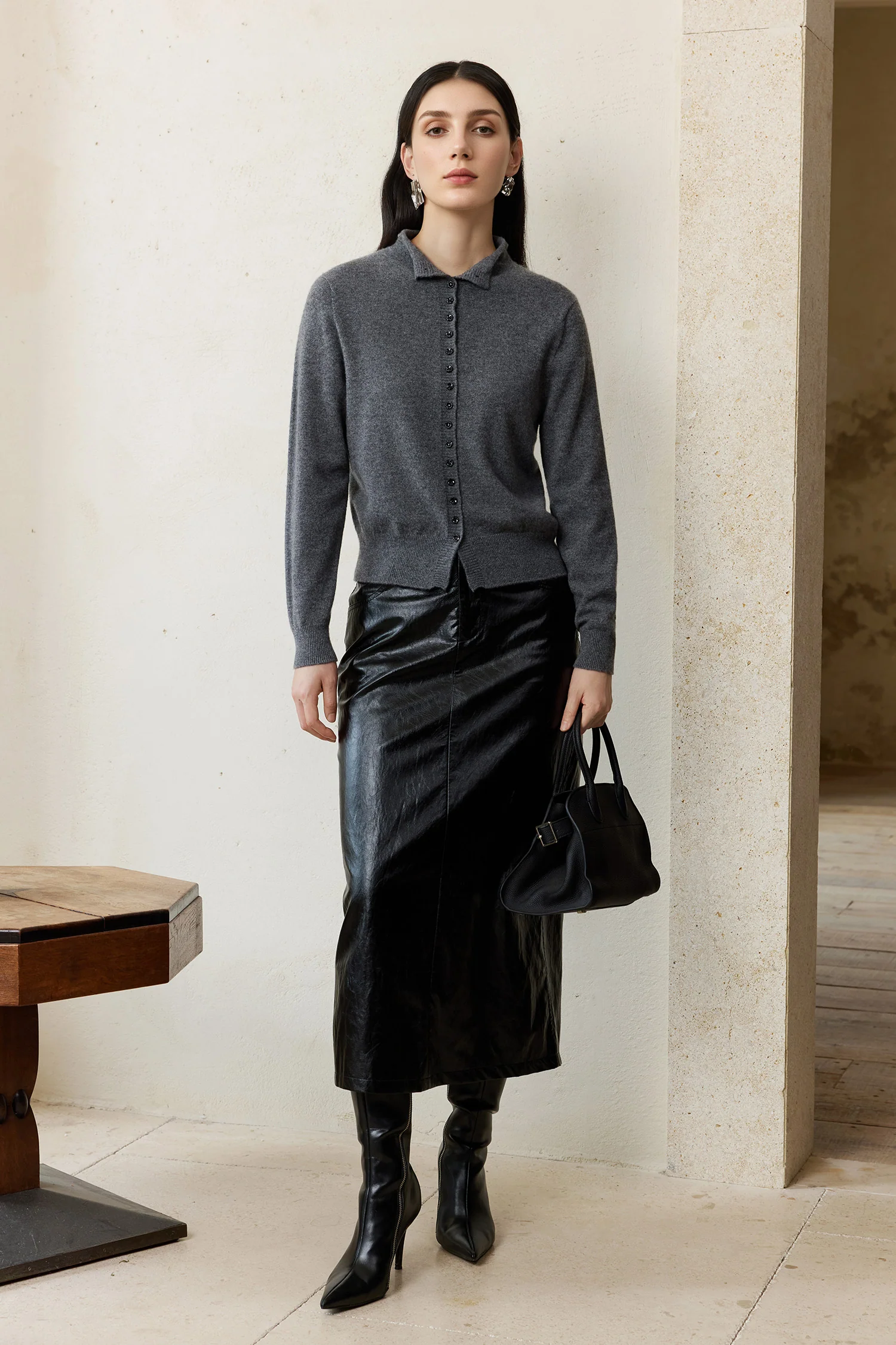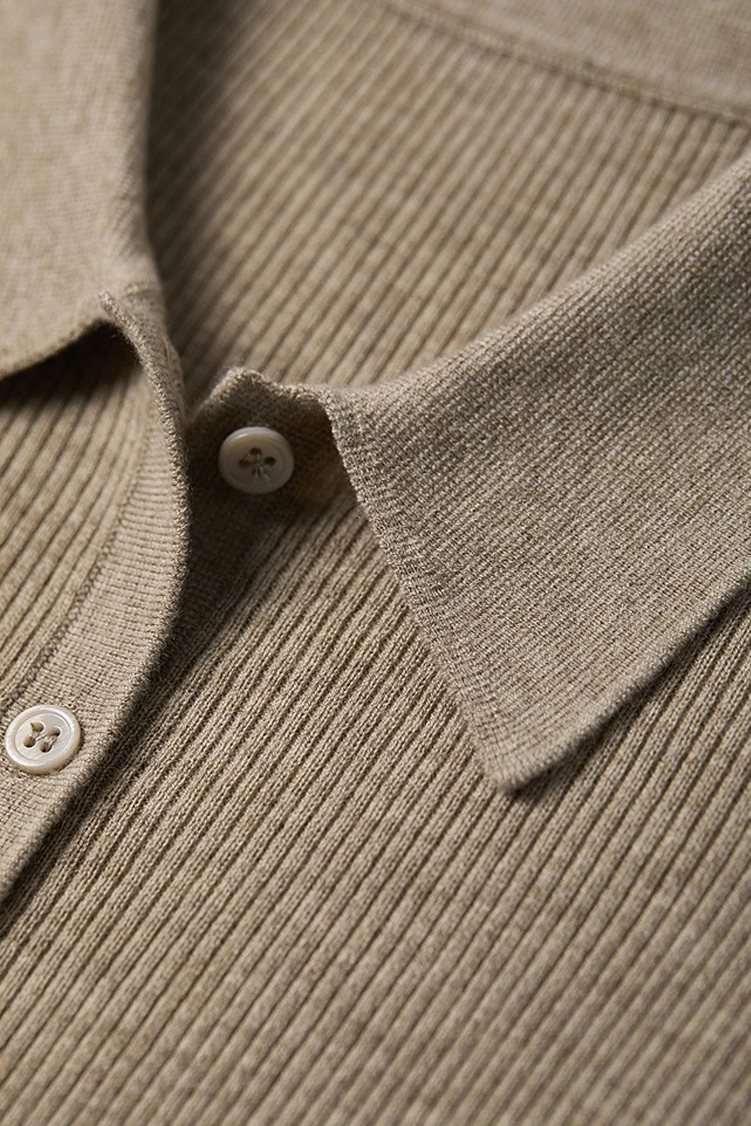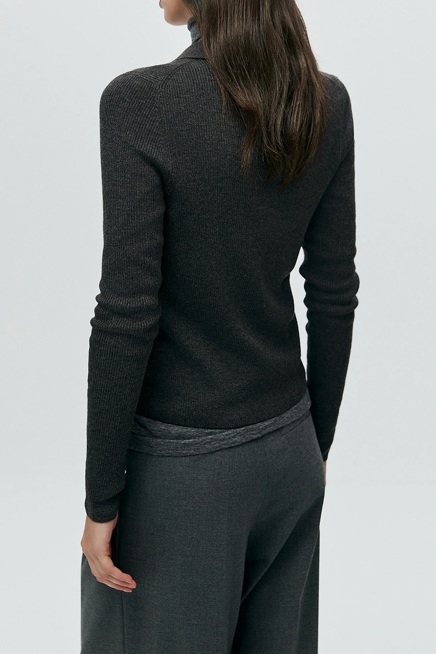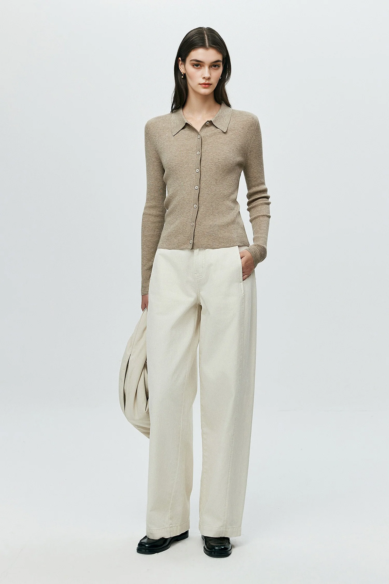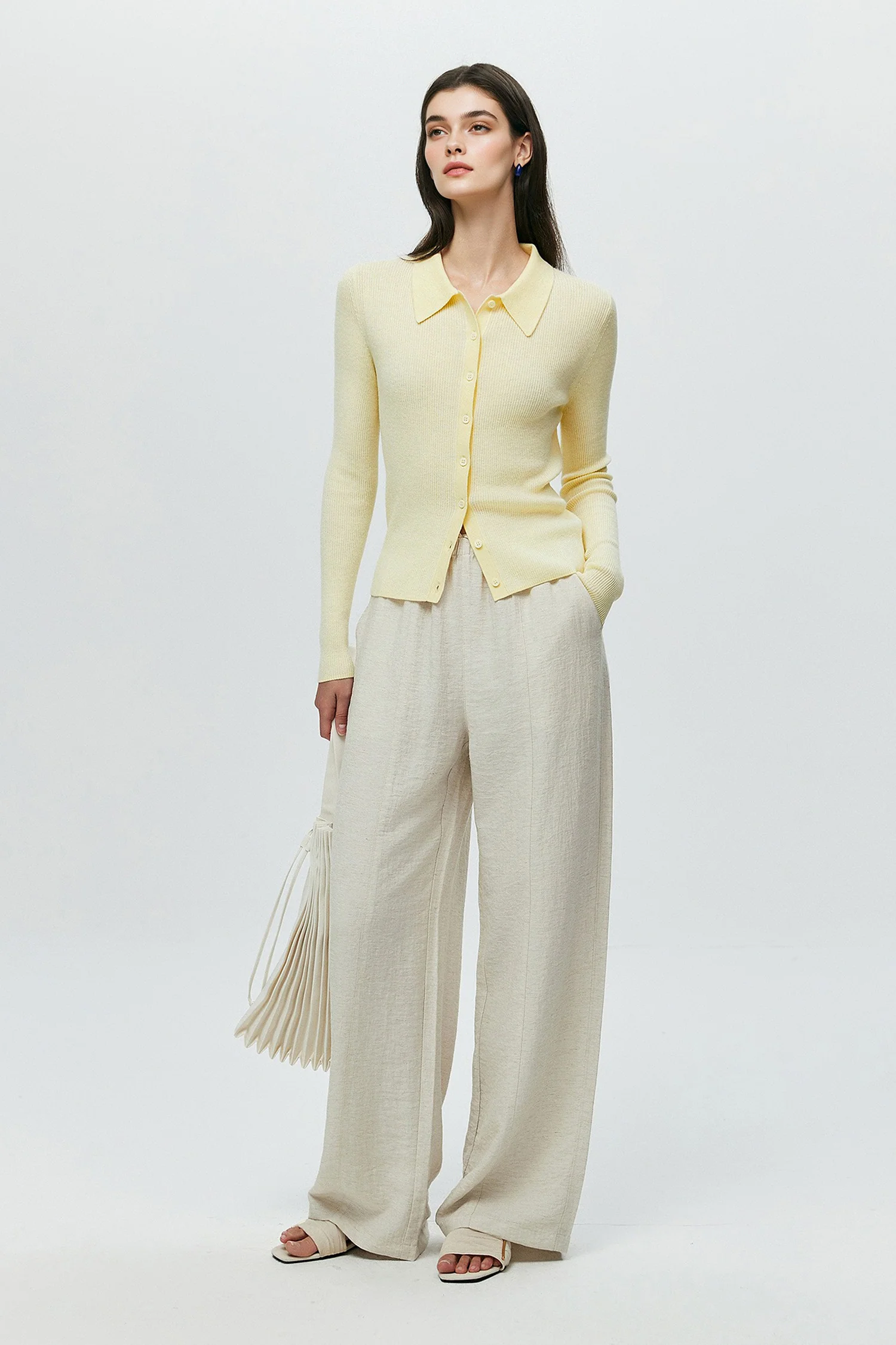 Lightweight Wool-Blend Fitted Polo Cardigan Sweater