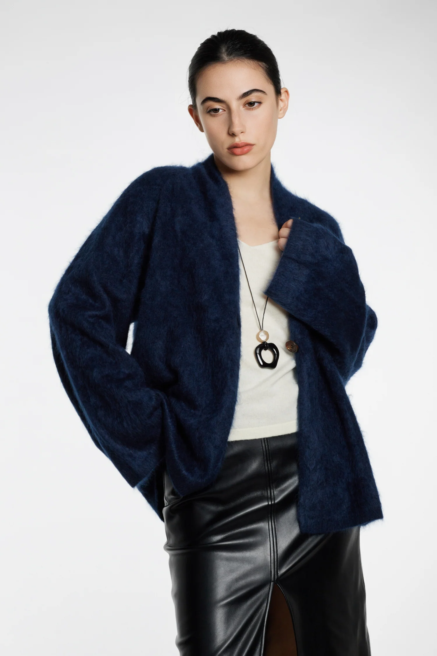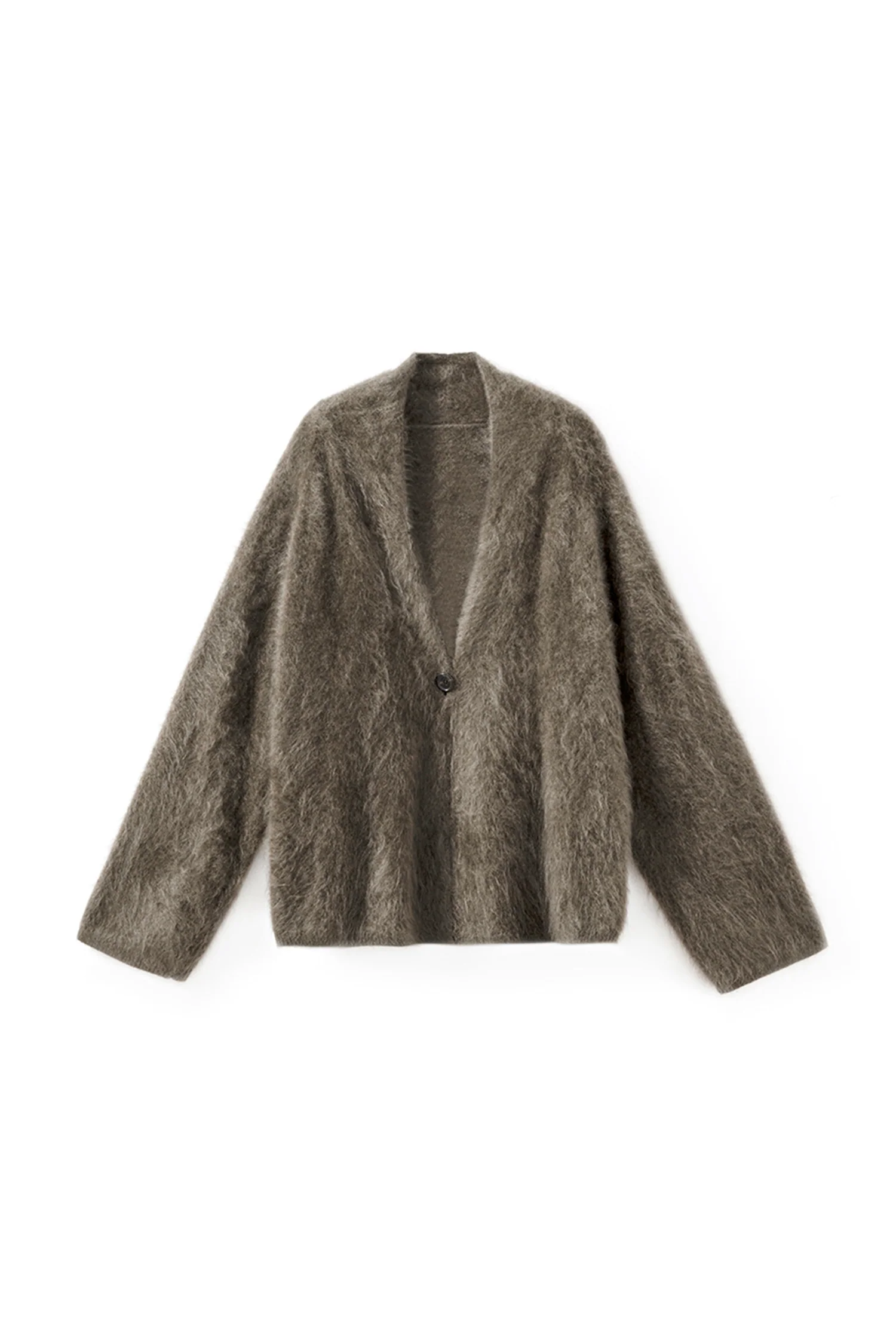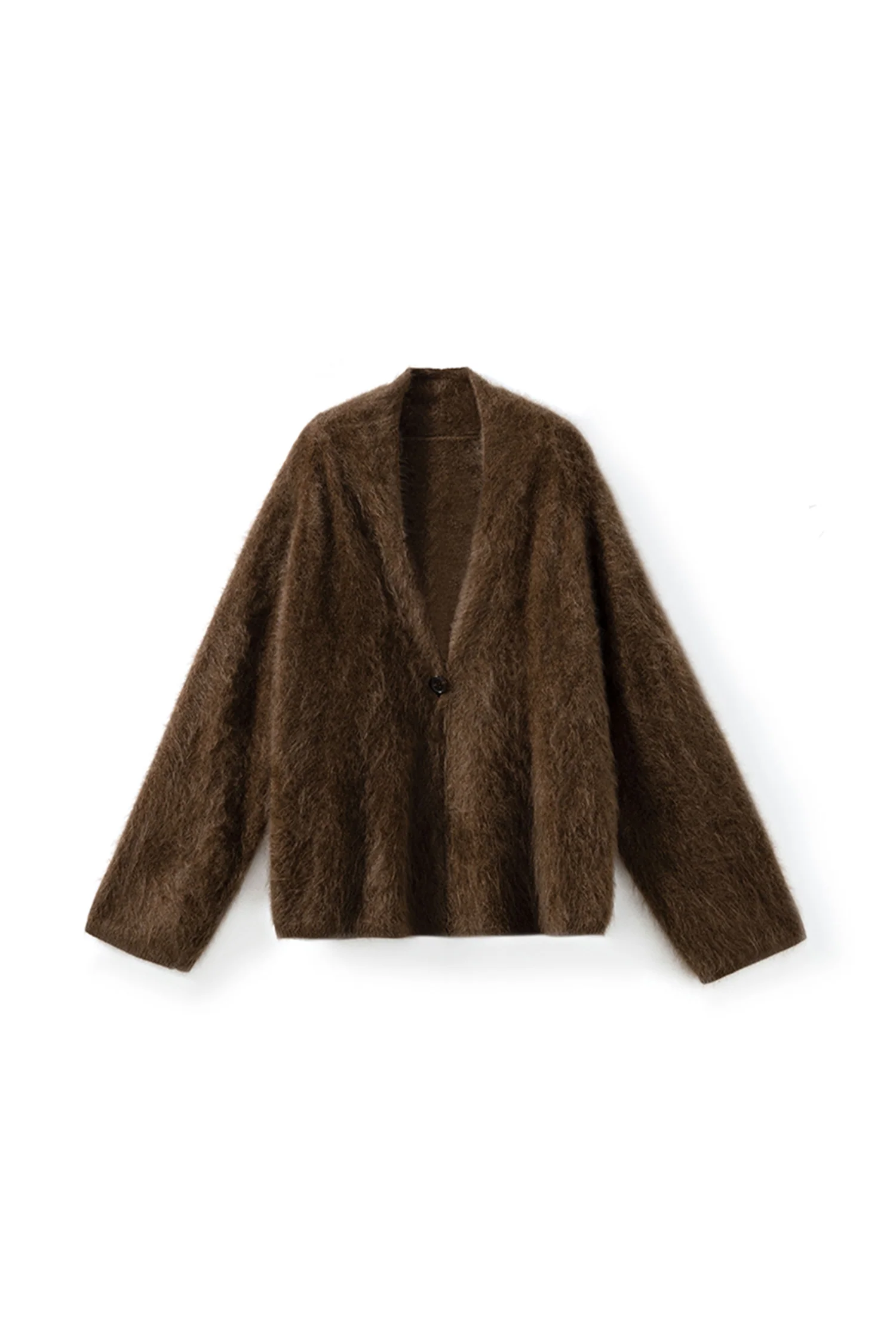 Relaxed Brushed Cashmere One-Button Cardigan Blazer