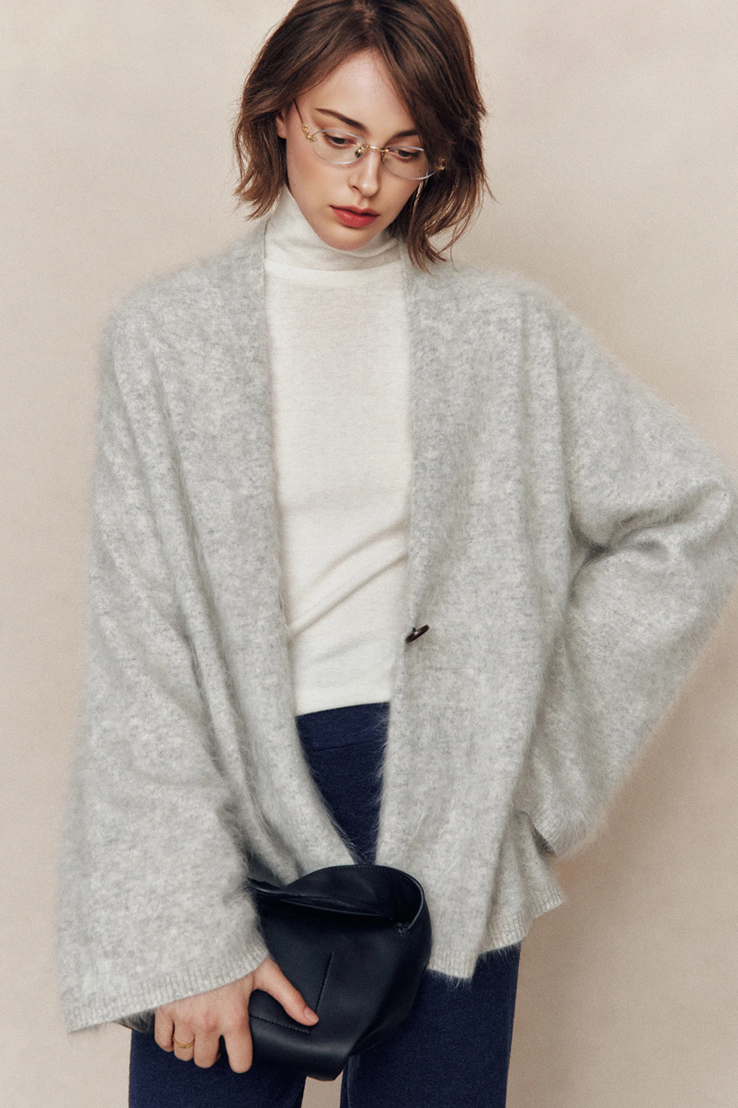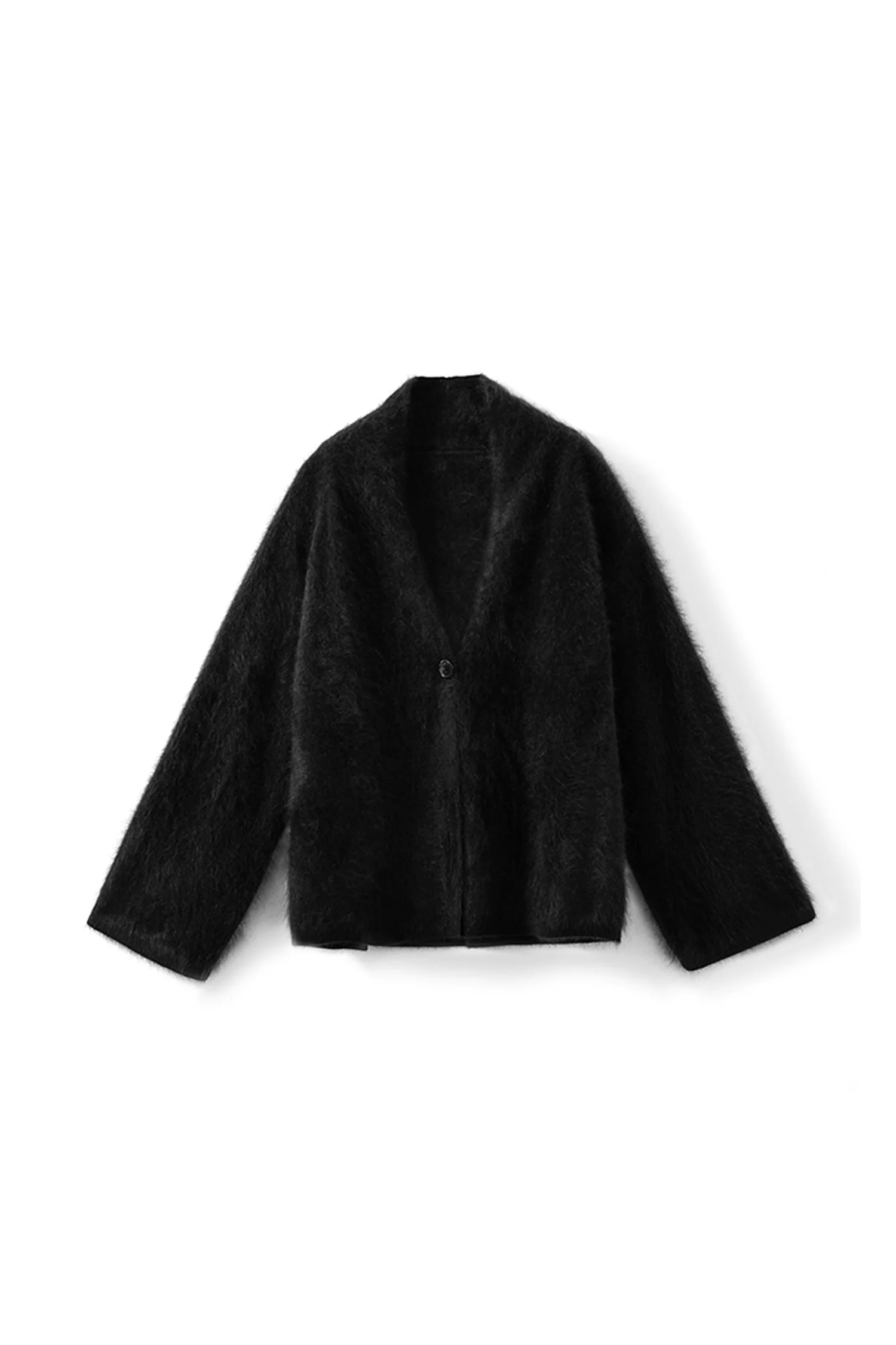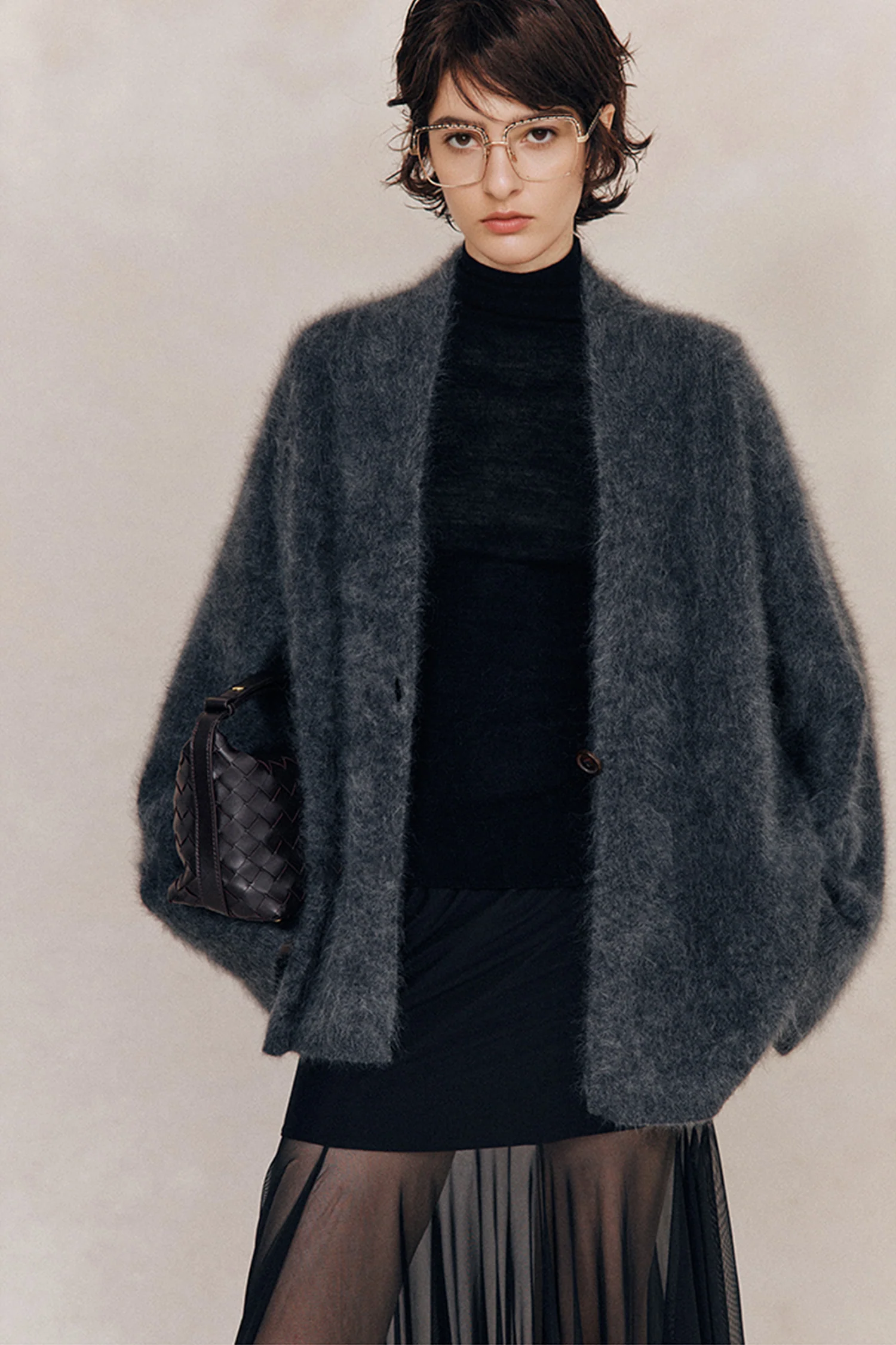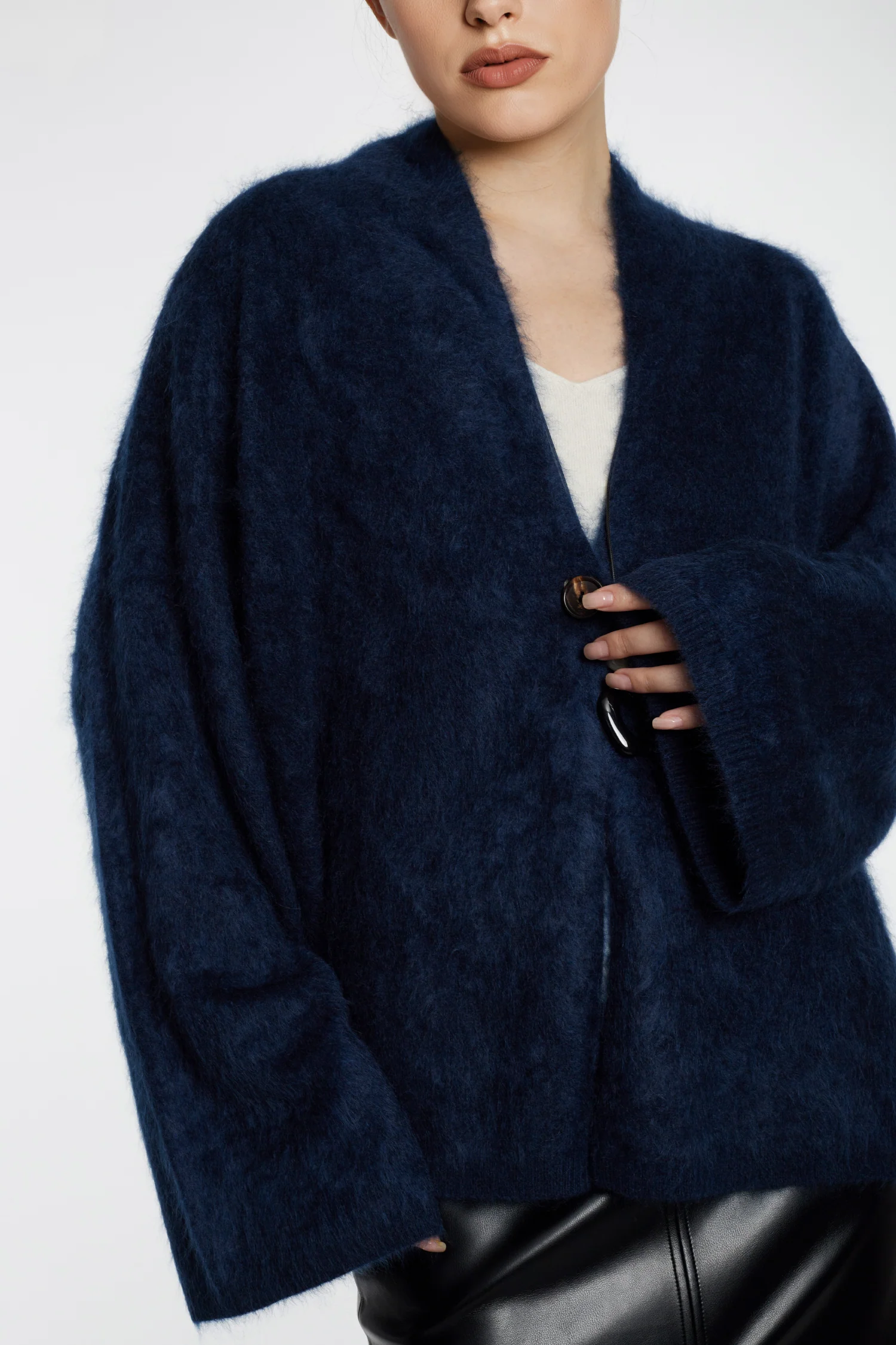 Relaxed Brushed Cashmere One-Button Cardigan Blazer