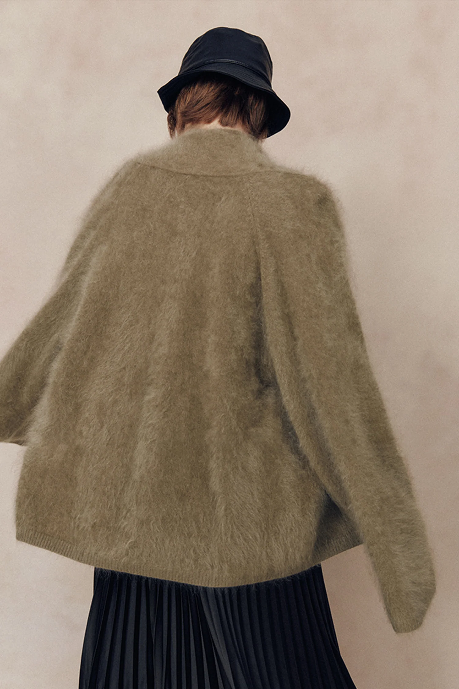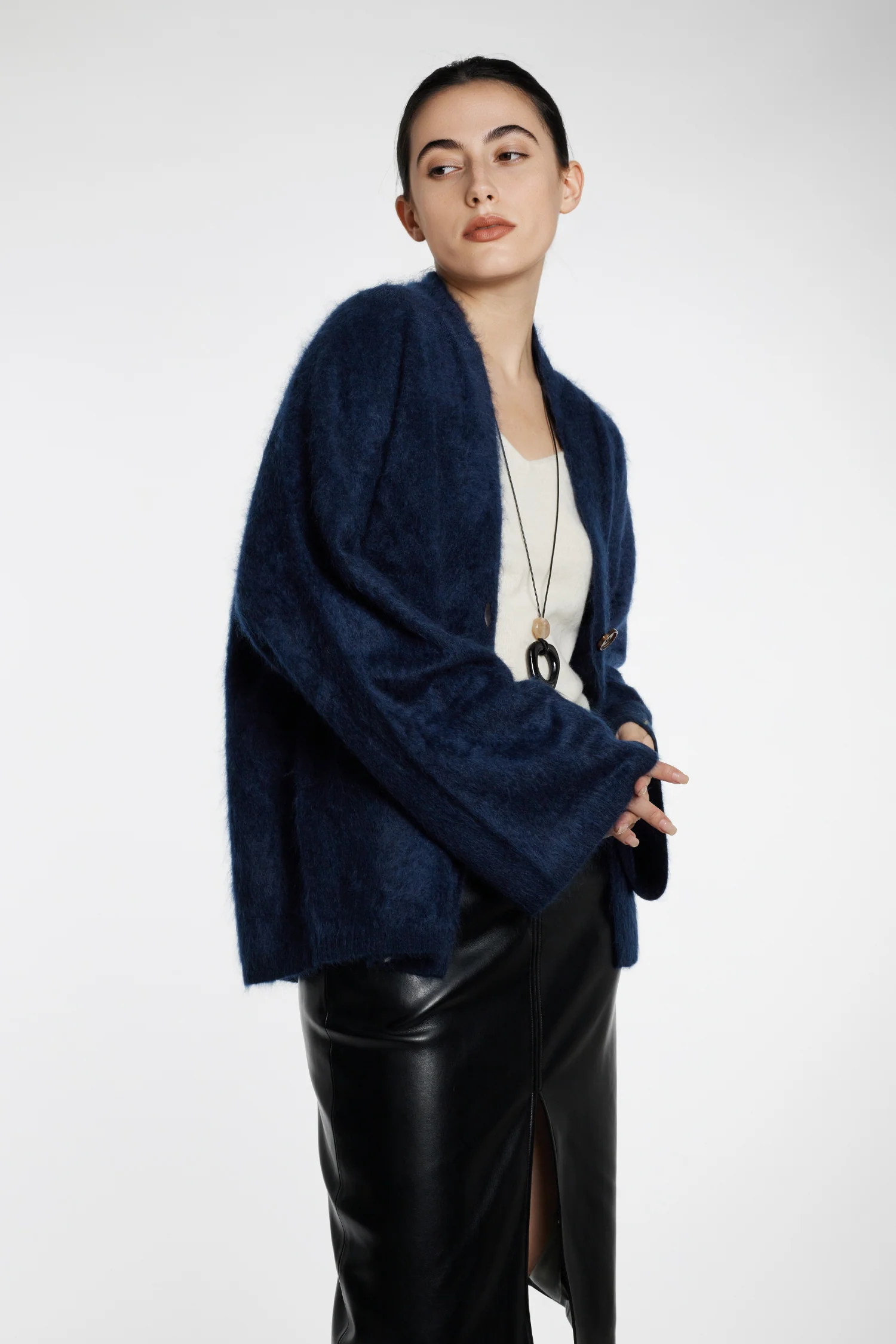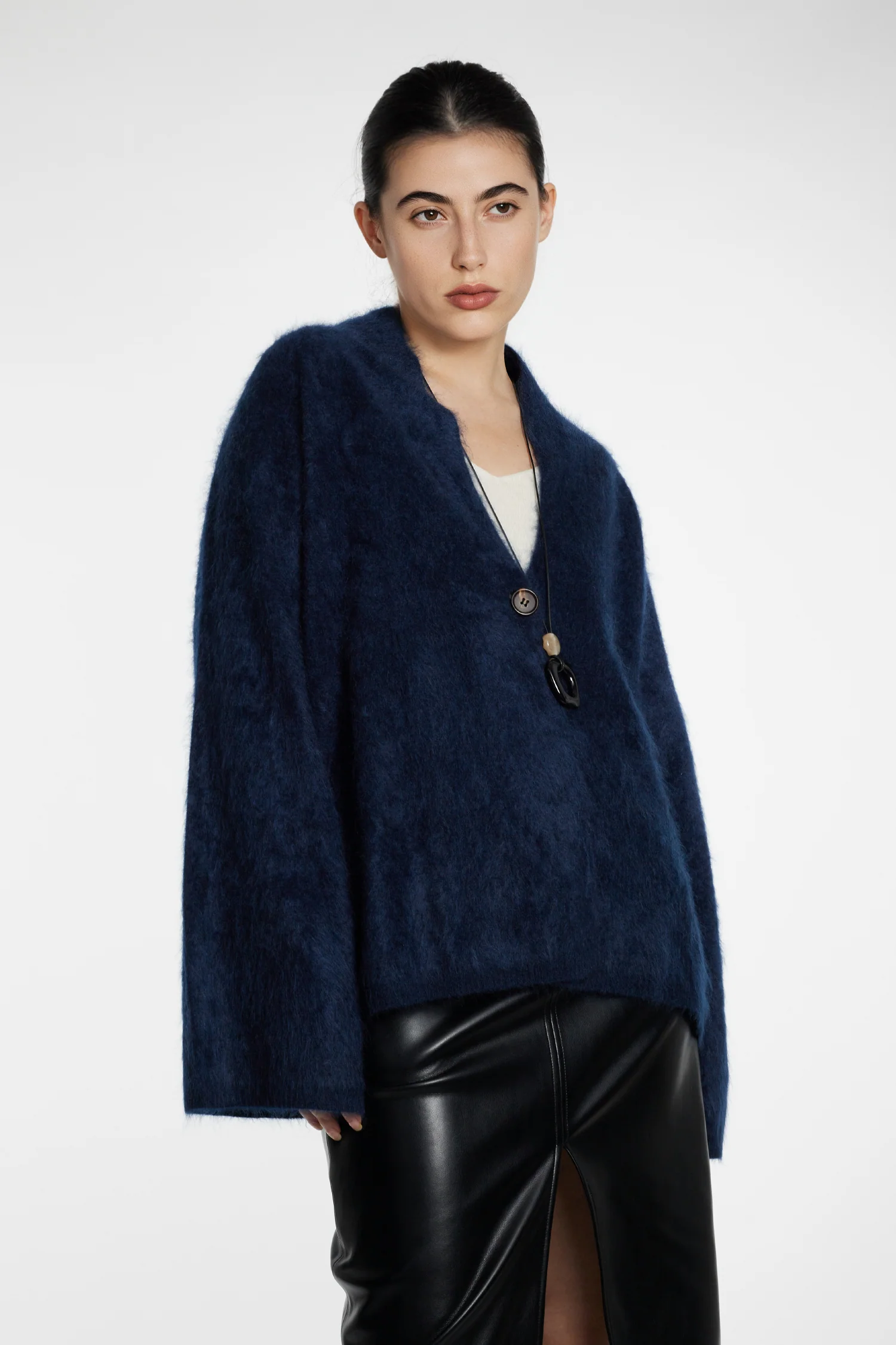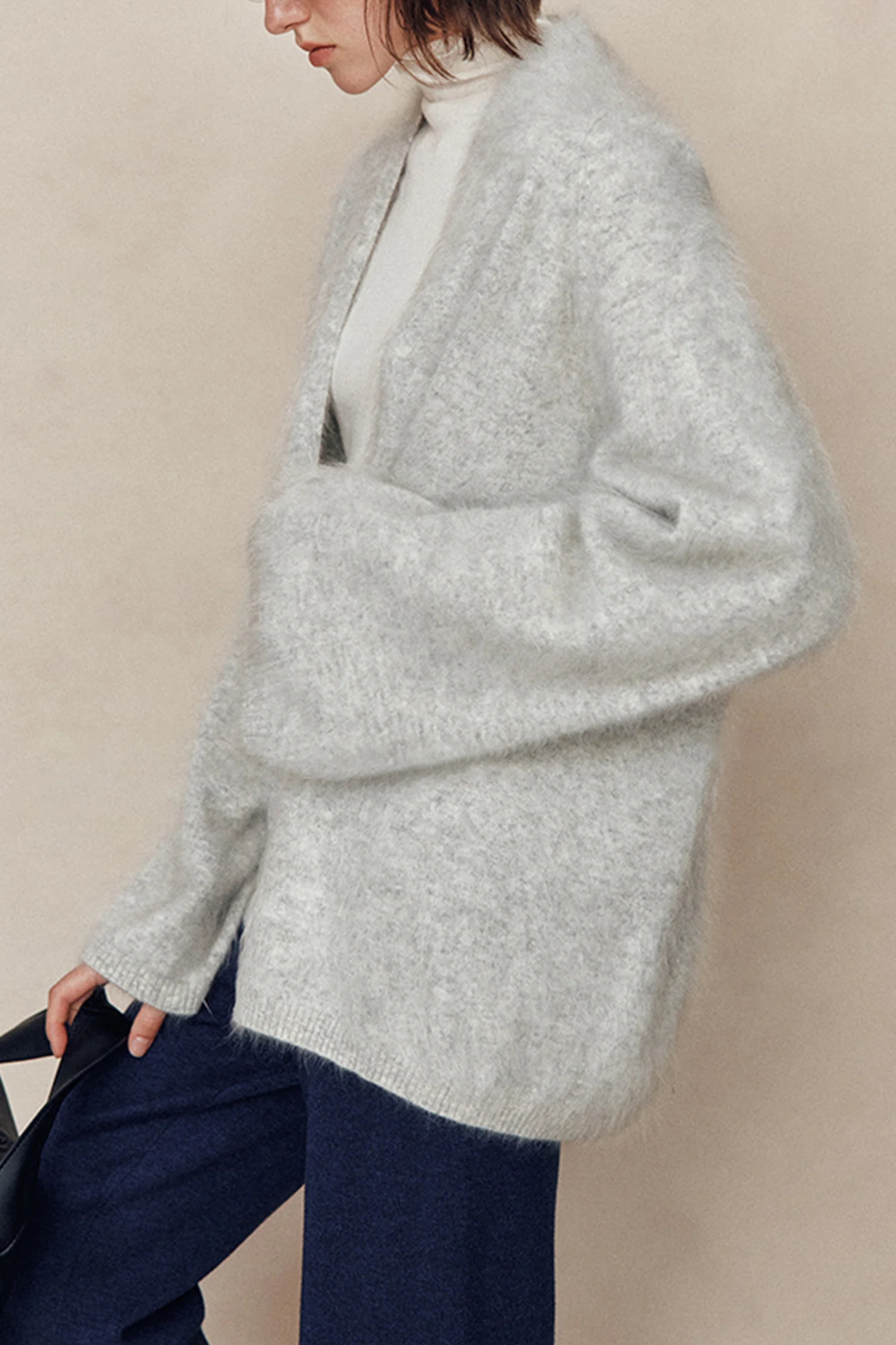 Oversized Chunky Brushed Cashmere V-Neck Cardigan