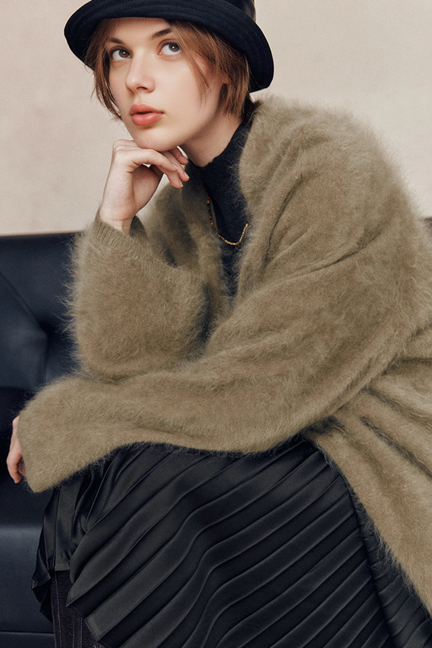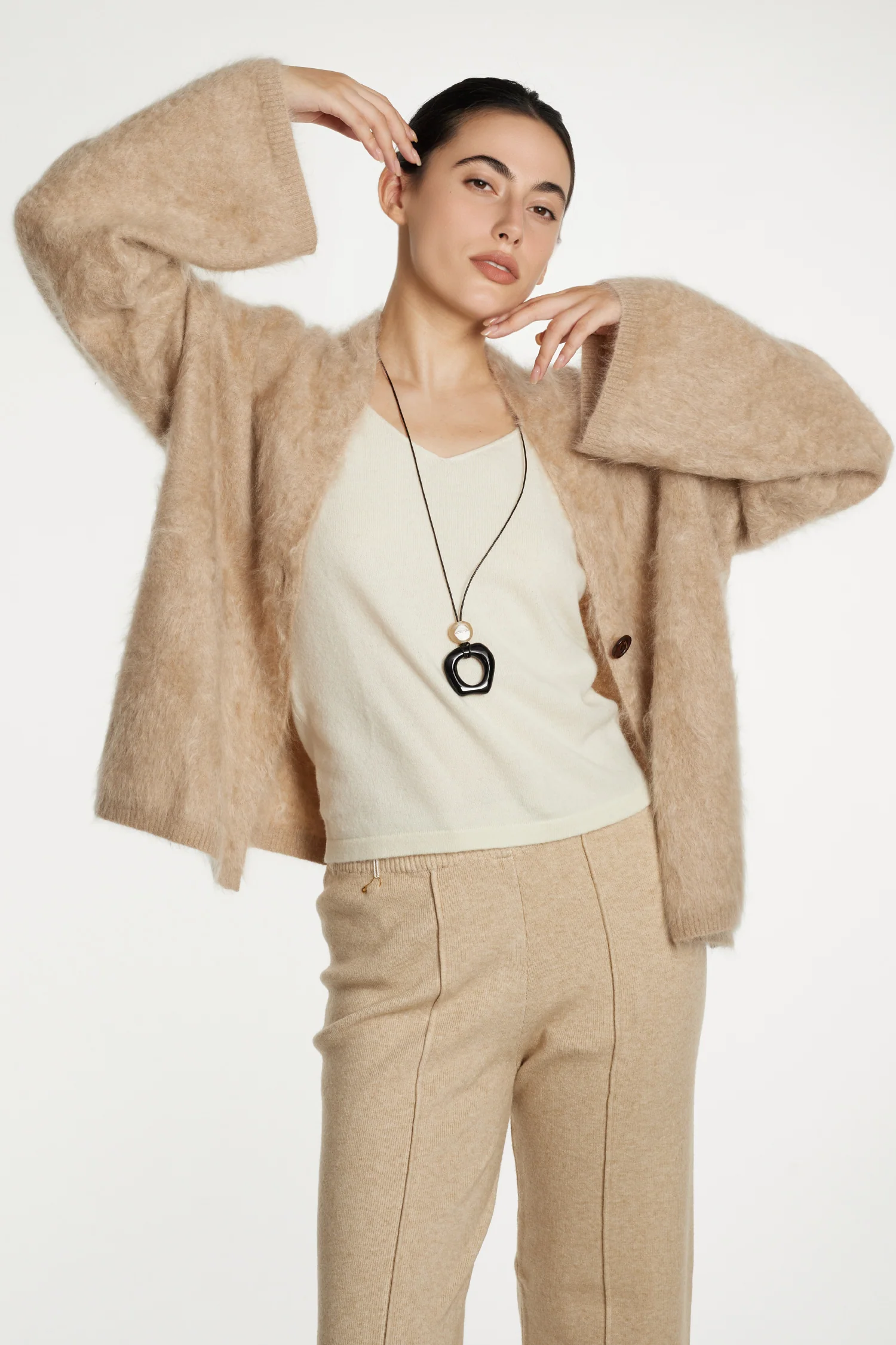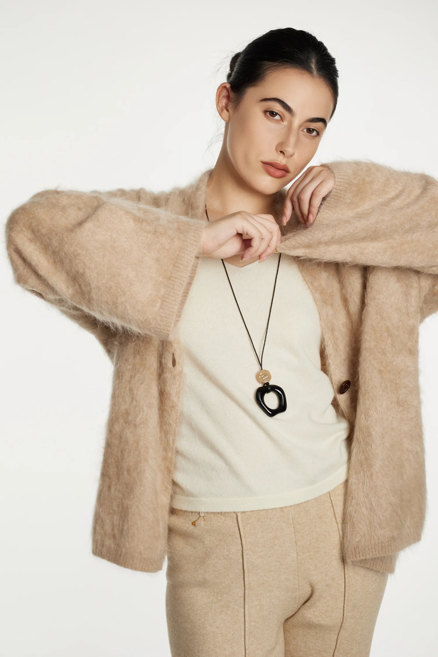 Oversized Chunky Brushed Cashmere V-Neck Cardigan