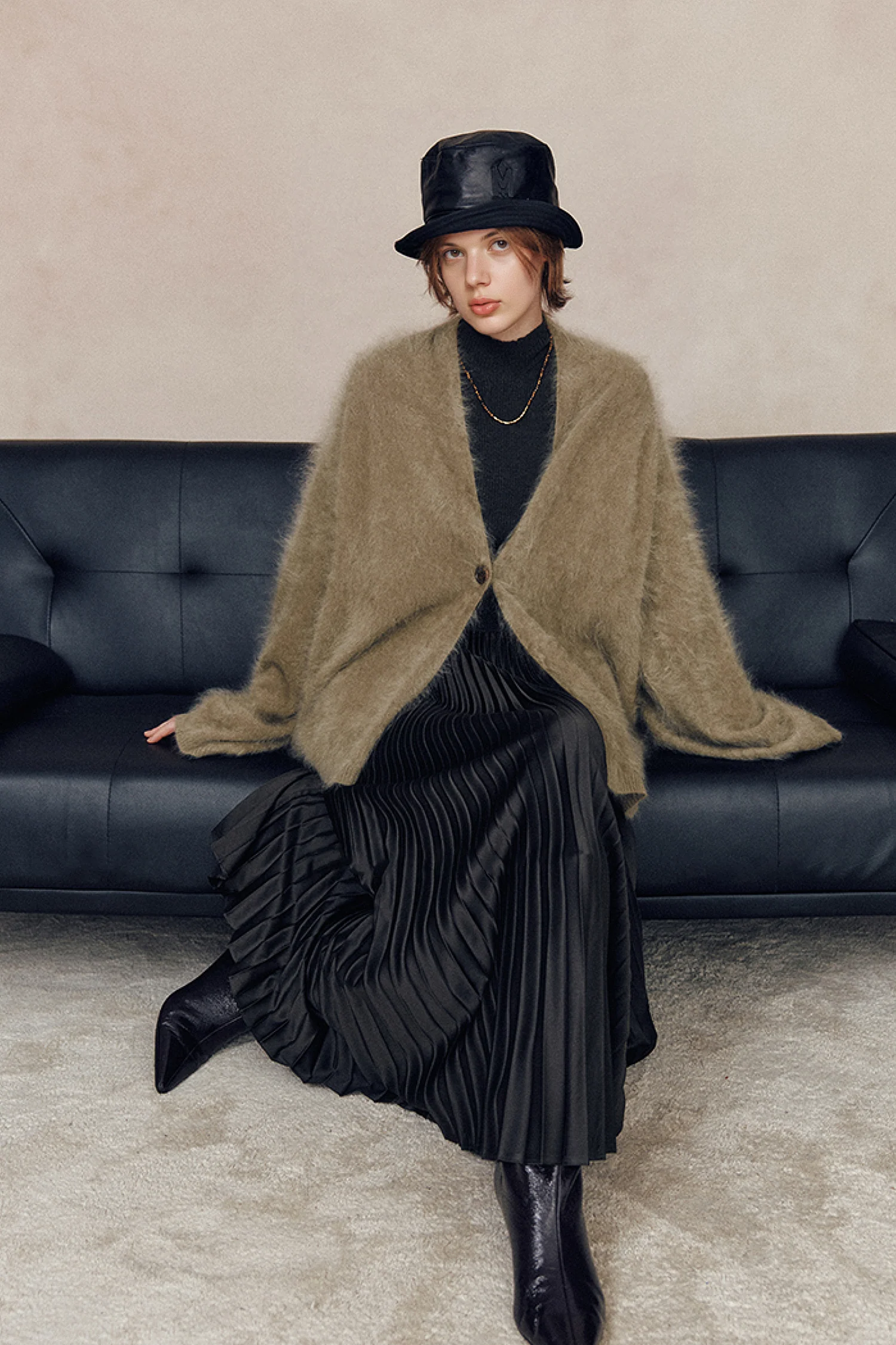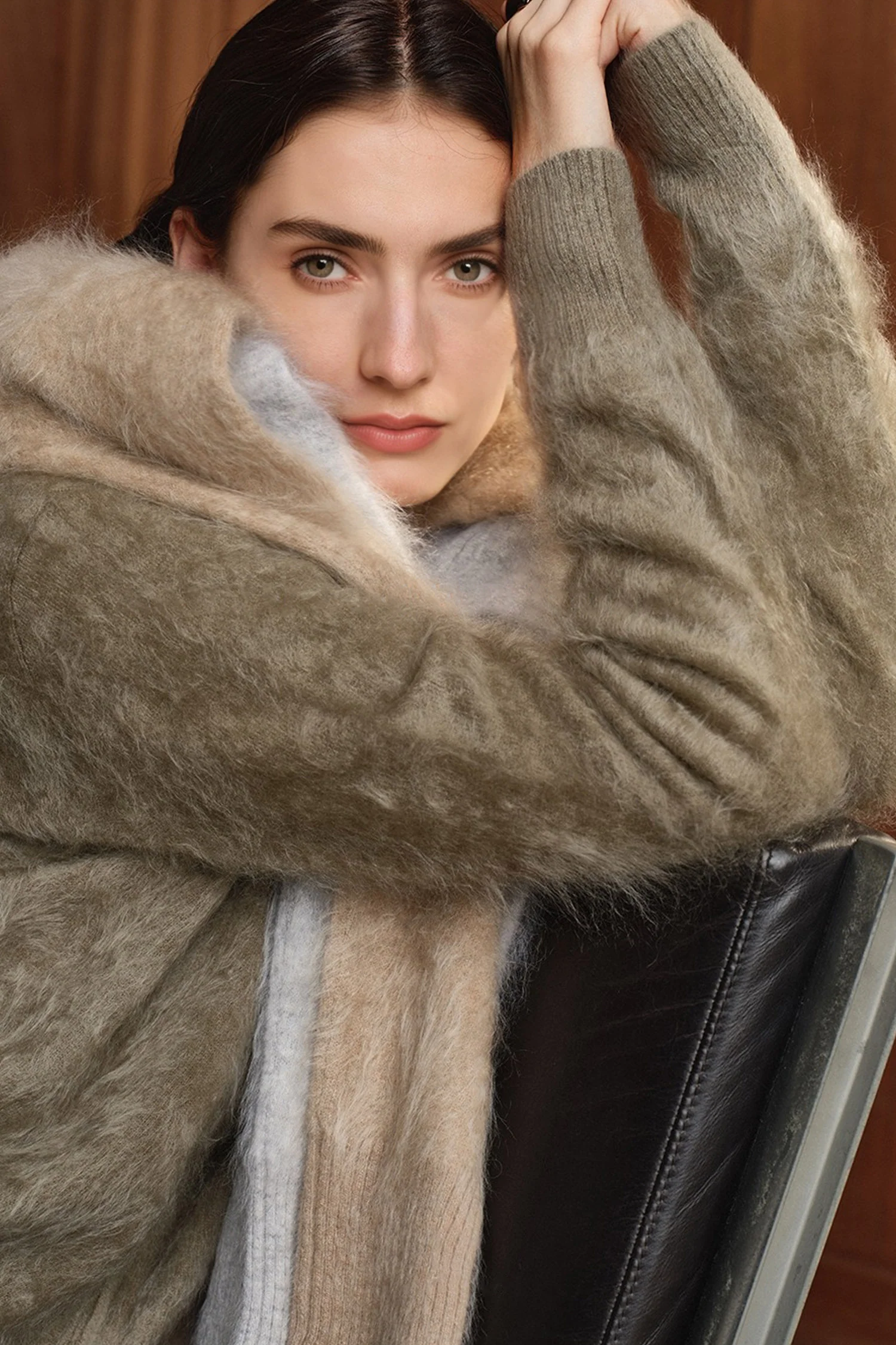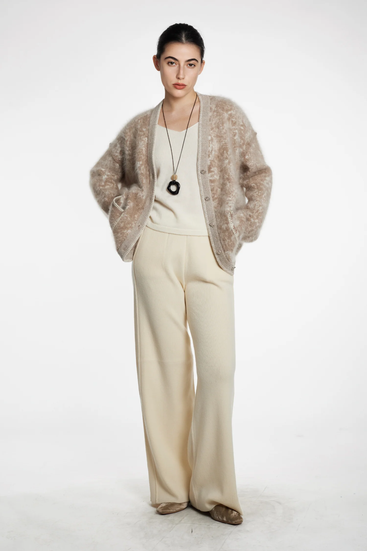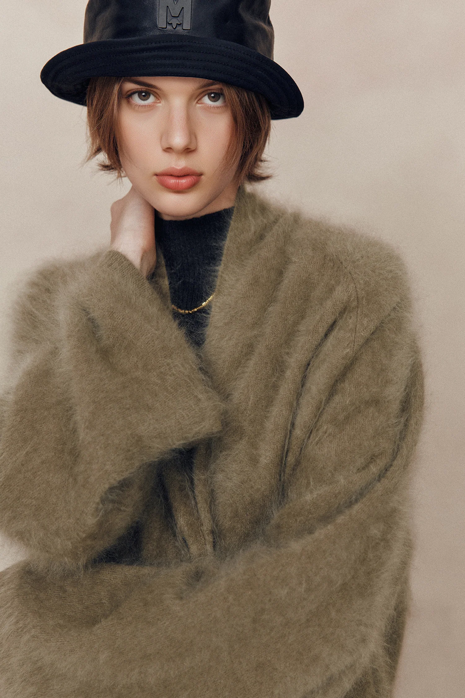 Oversized Chunky Brushed Cashmere V-Neck Cardigan