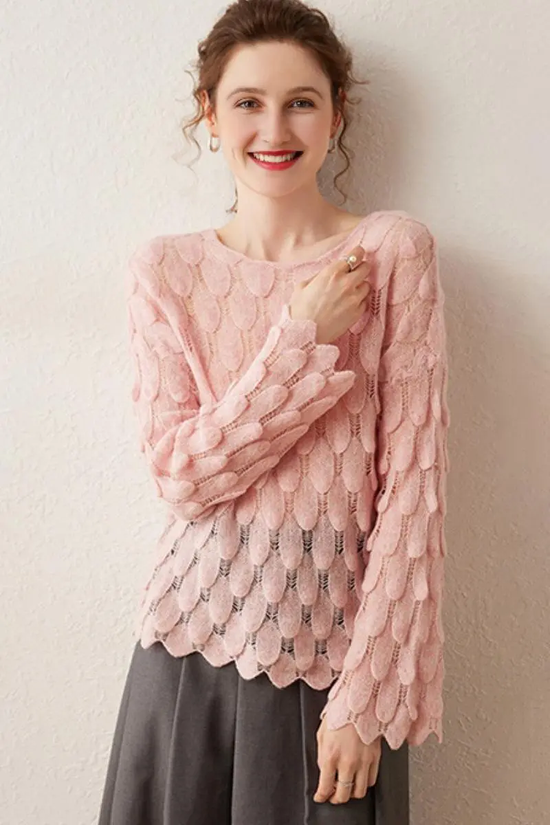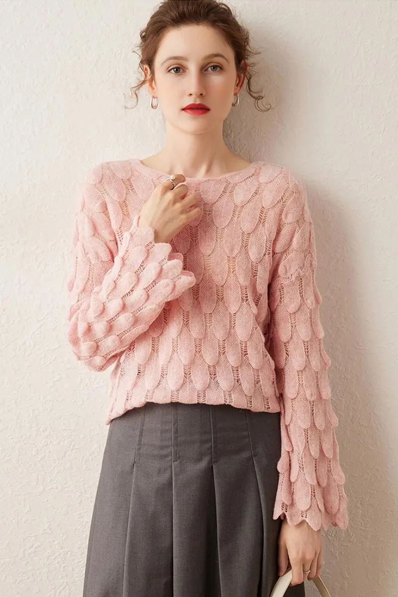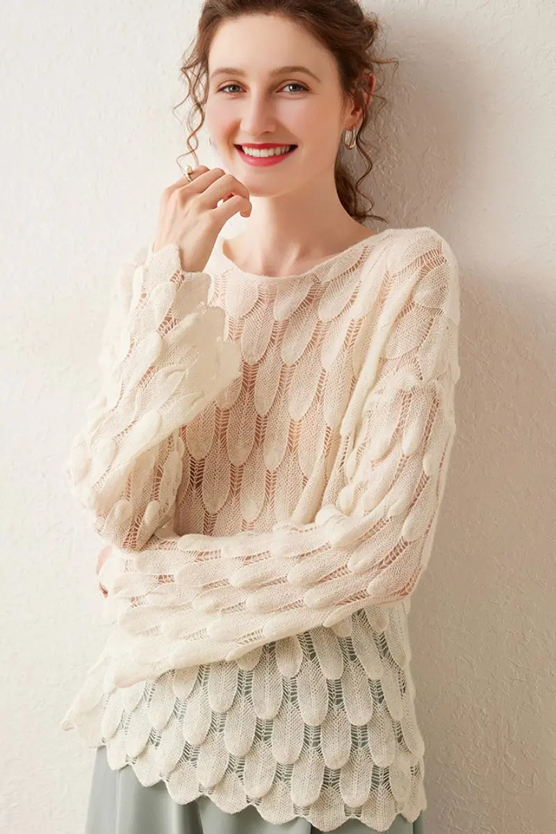 Ultra-Light 100 Cashmere Leaf-Knit Sweater