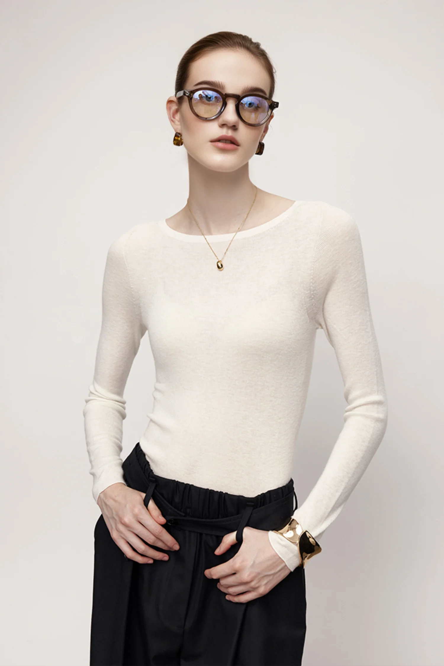 Washable Cashmere-Silk Fine-Knit Boatneck Sweater