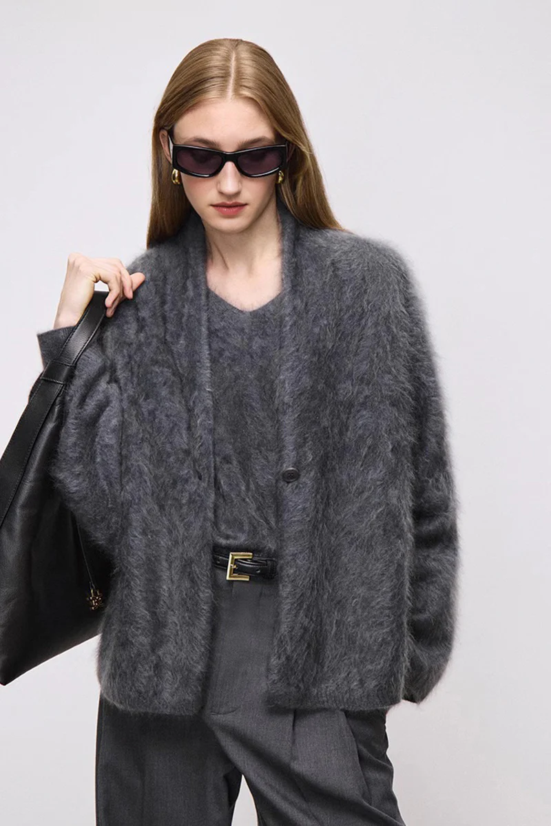 Ultrafine One-Button Brushed Cashmere Cardigan