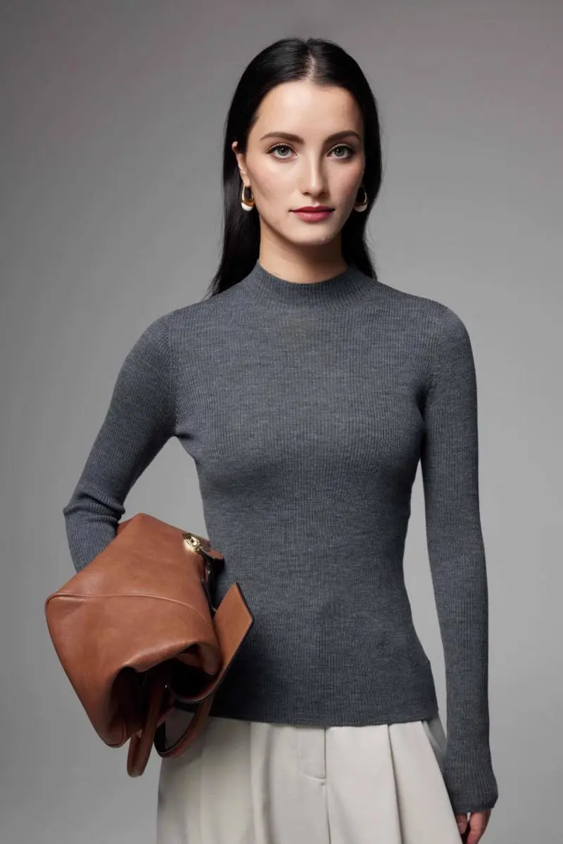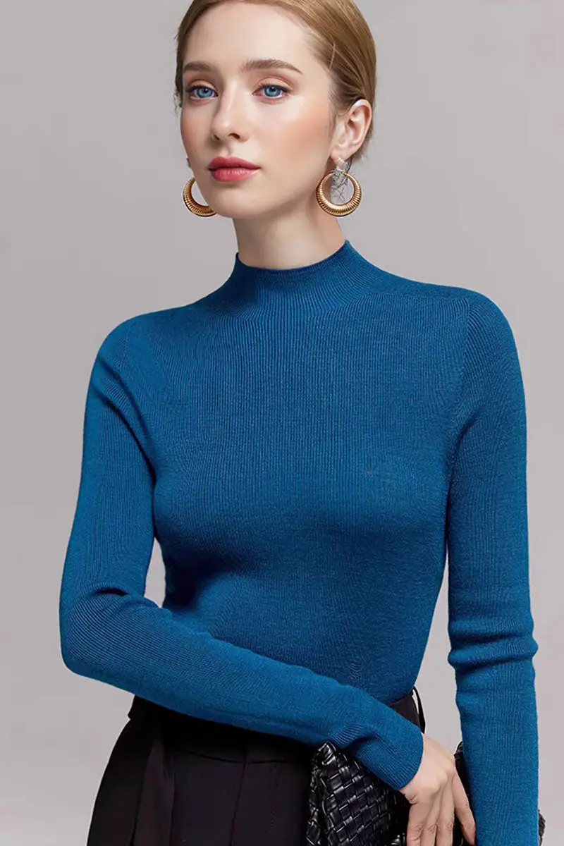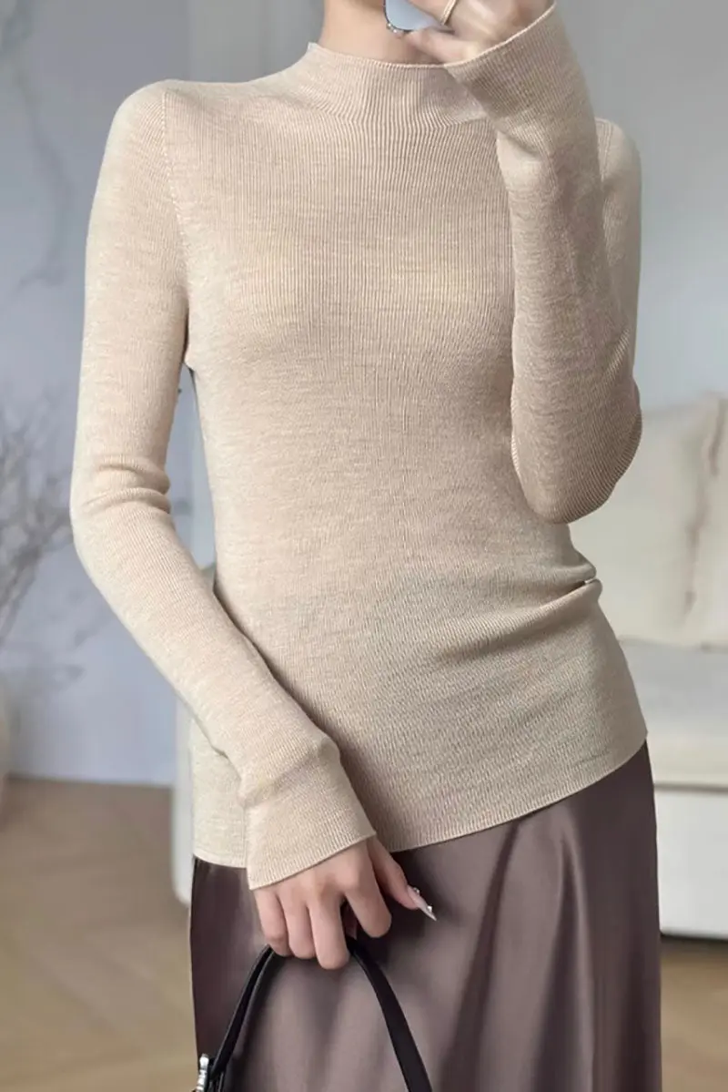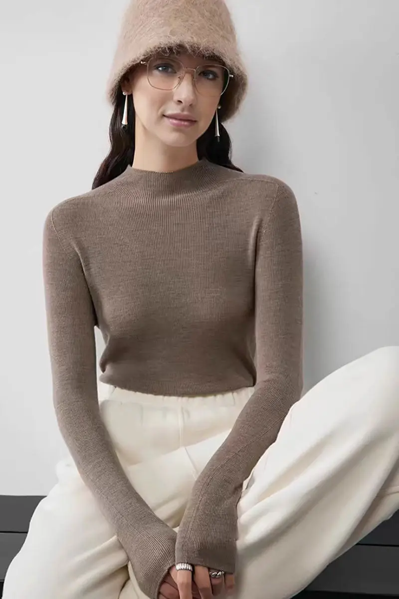100 Merino Wool Seamless Mock Neck Sweater