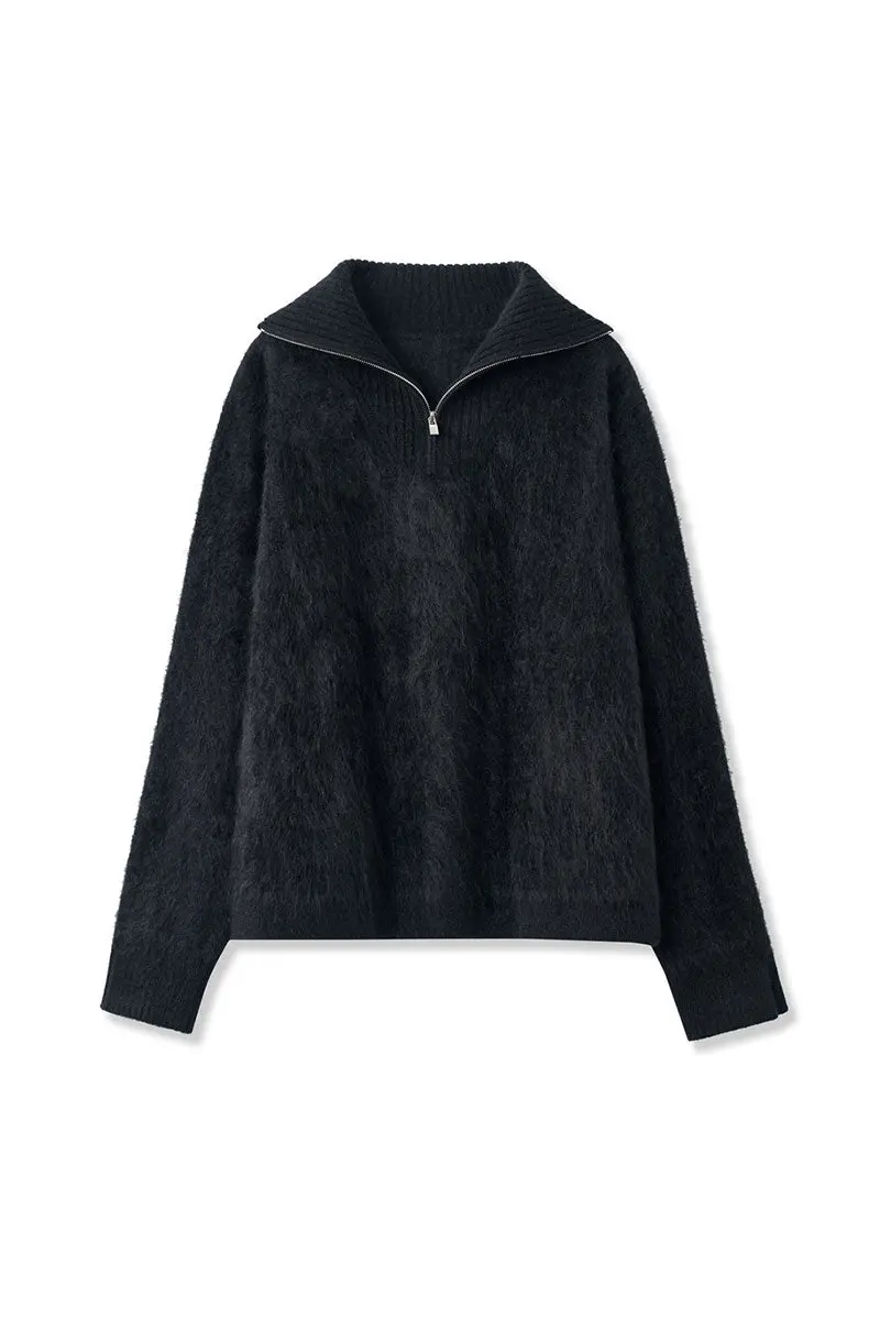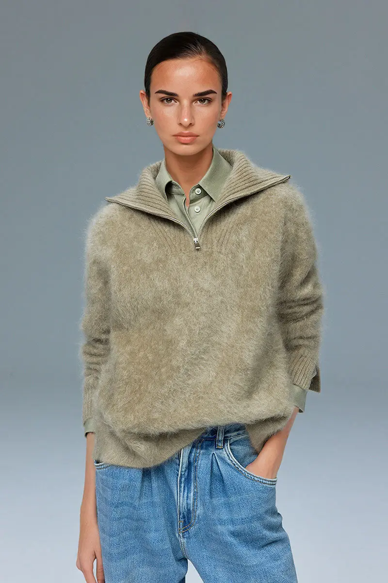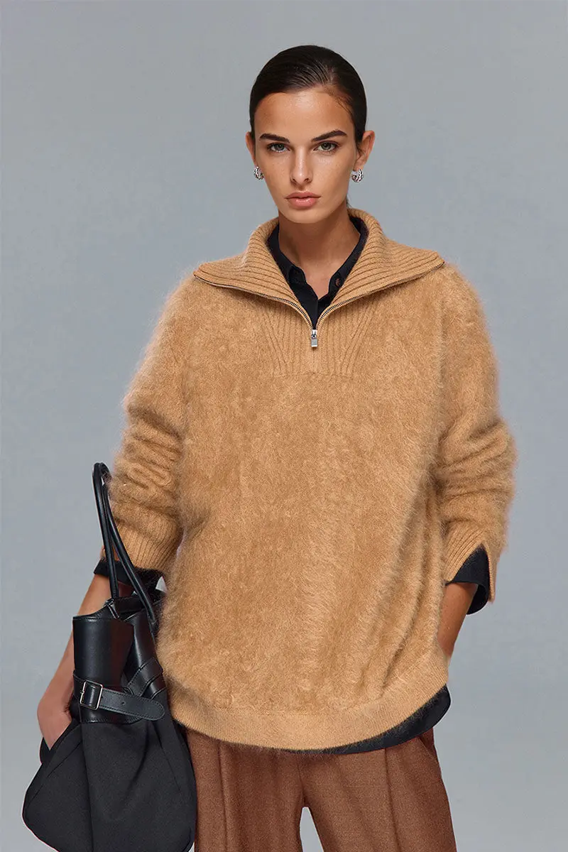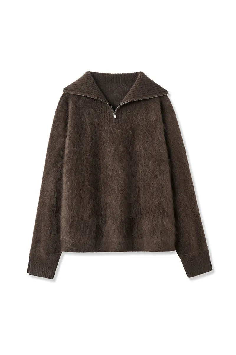 Luxe Brushed Cashmere Quarter Zip Sweater