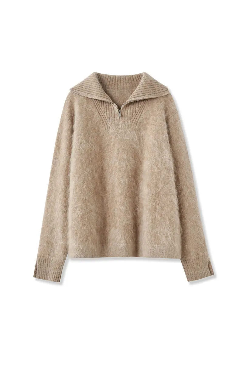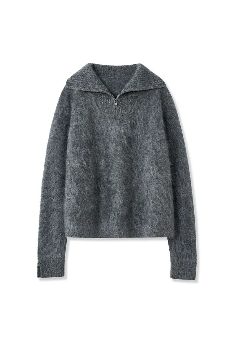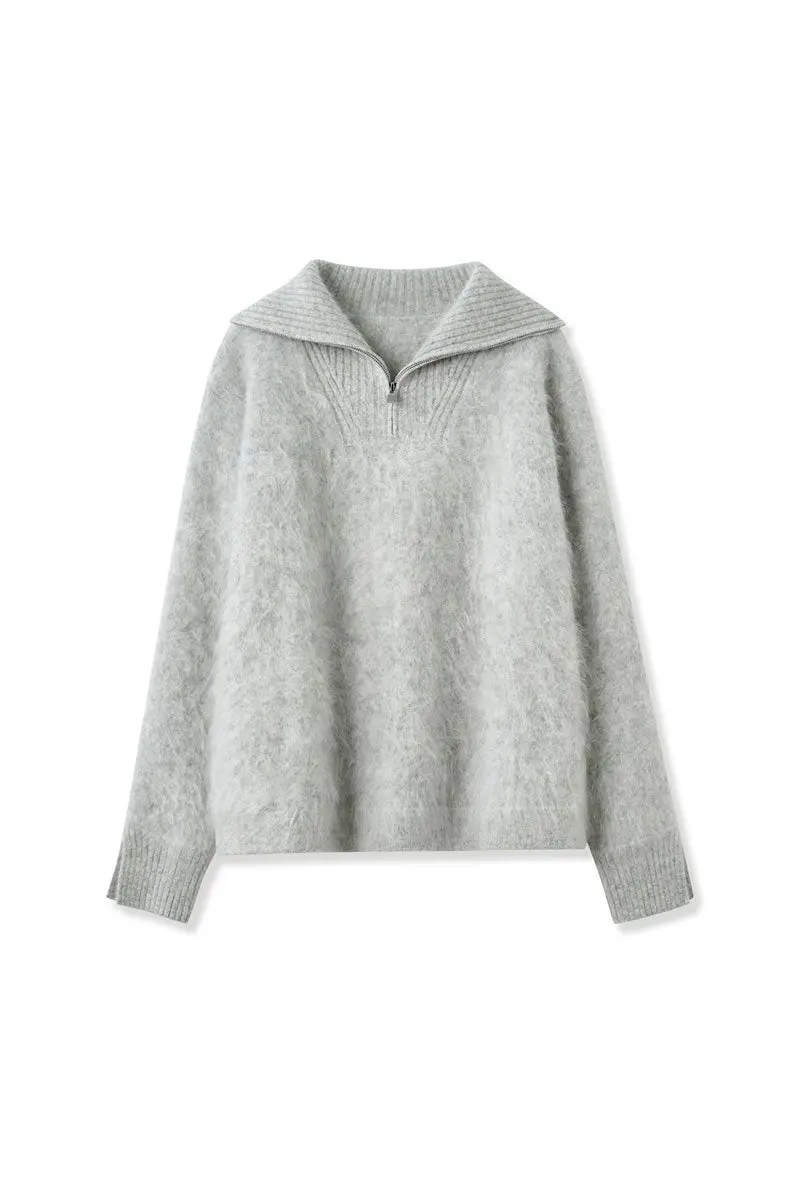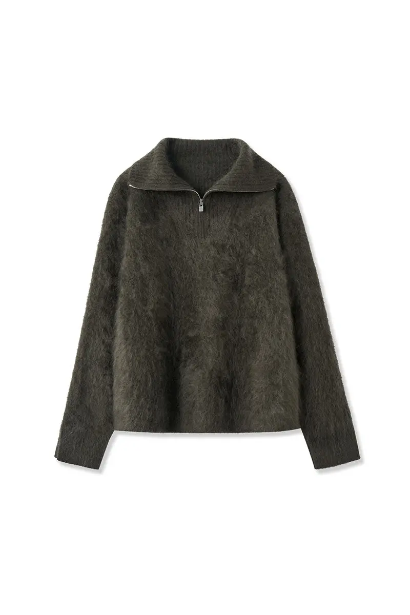 Luxe Brushed Cashmere Quarter Zip Sweater