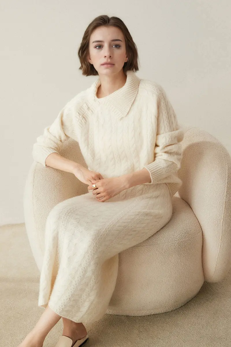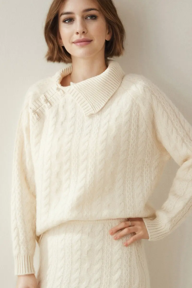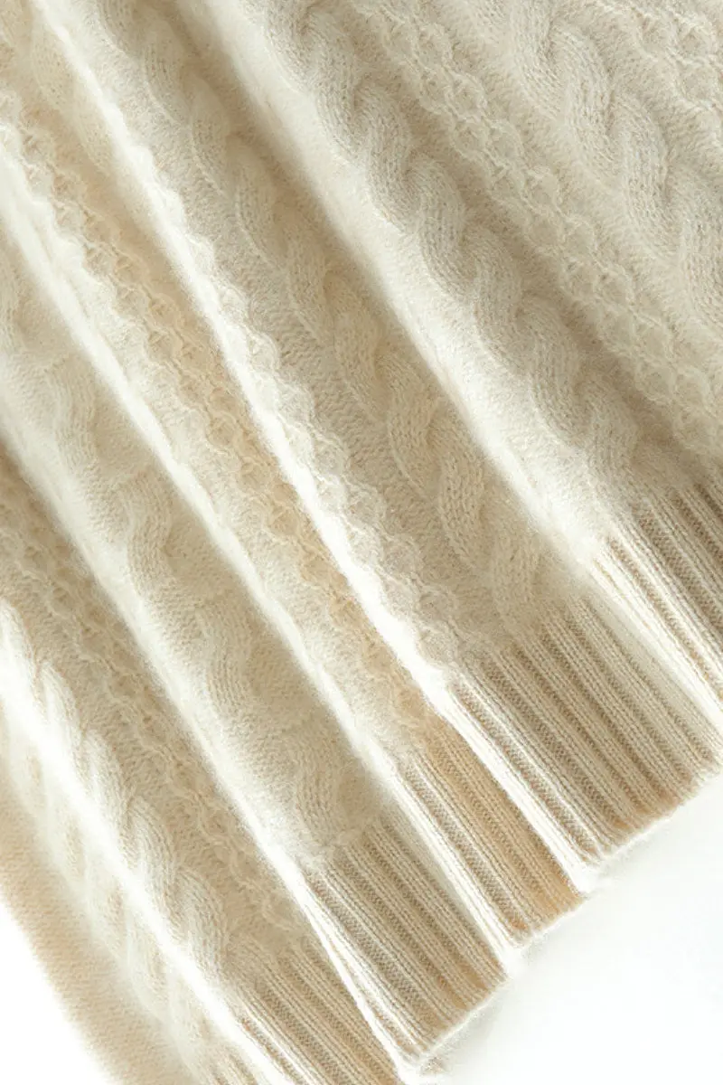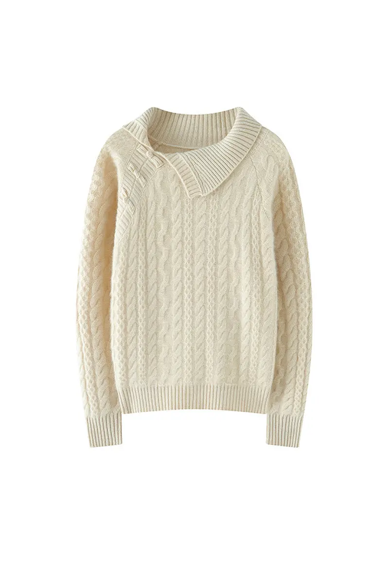 Chunky Cashmere Cable Knit Sweater with Asymmetrical Collar