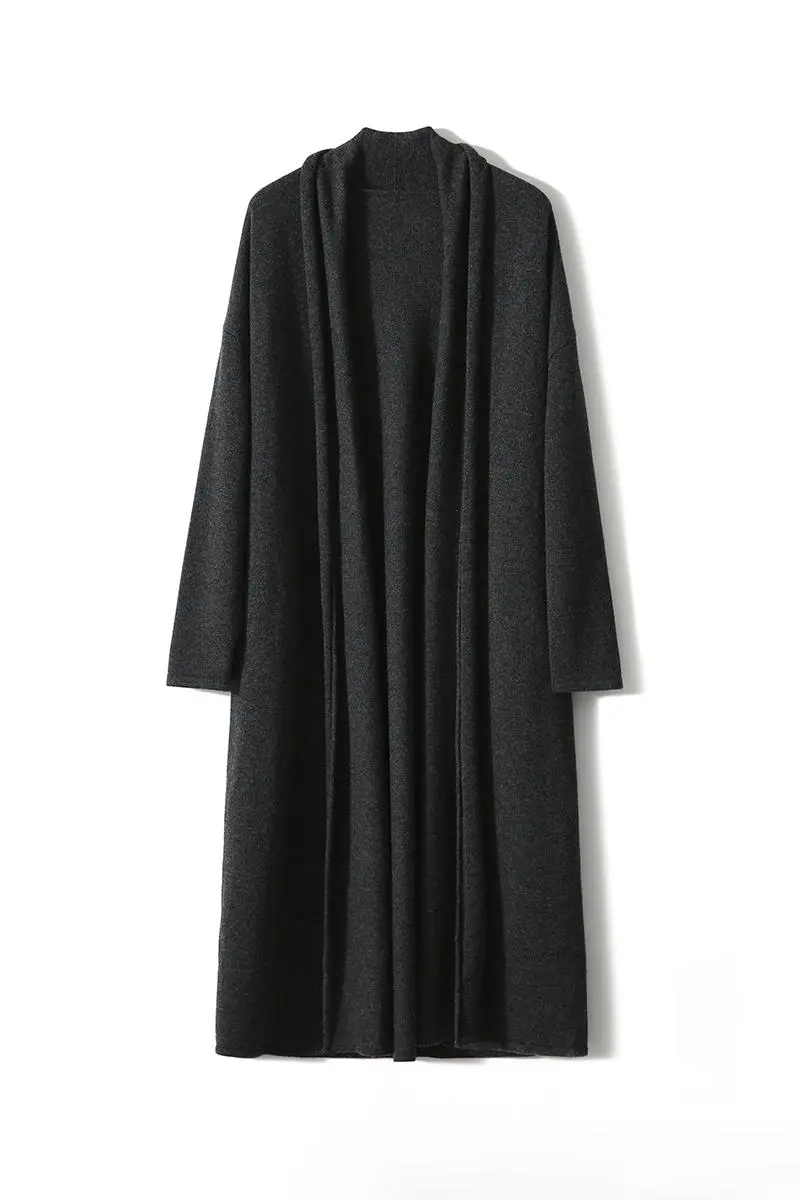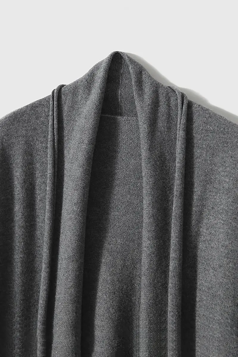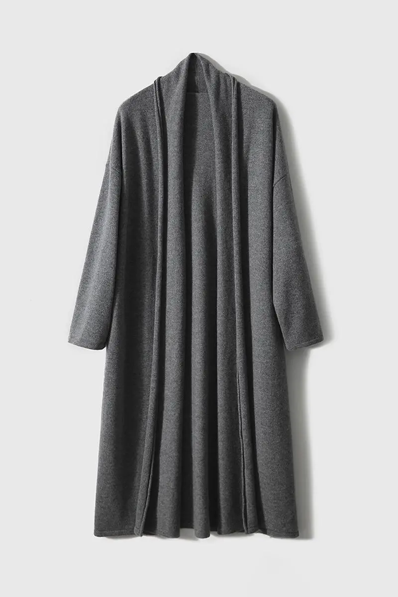 Open-Front Shawl Collar Cashmere Duster Cardigan With Rolled Hem