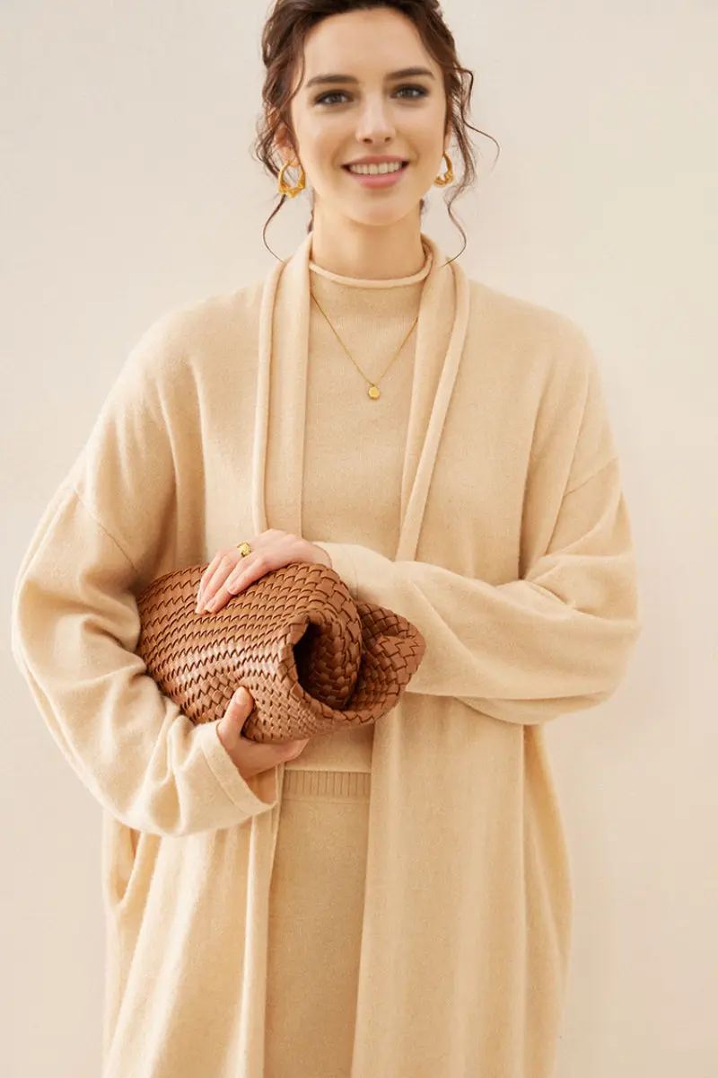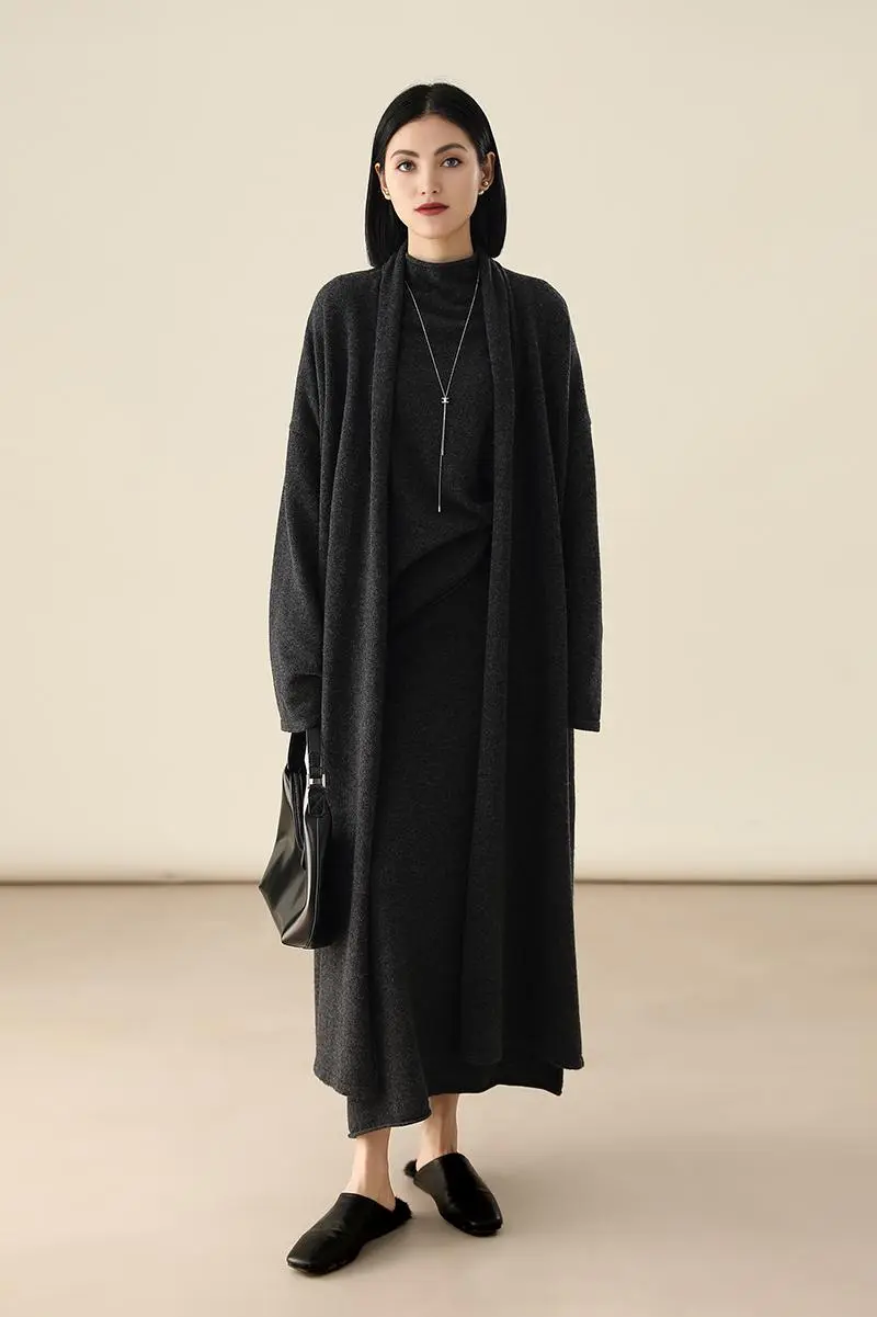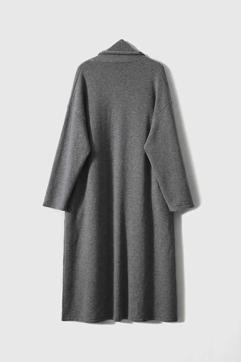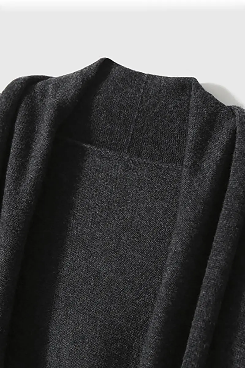 Open-Front Shawl Collar Cashmere Duster Cardigan With Rolled Hem