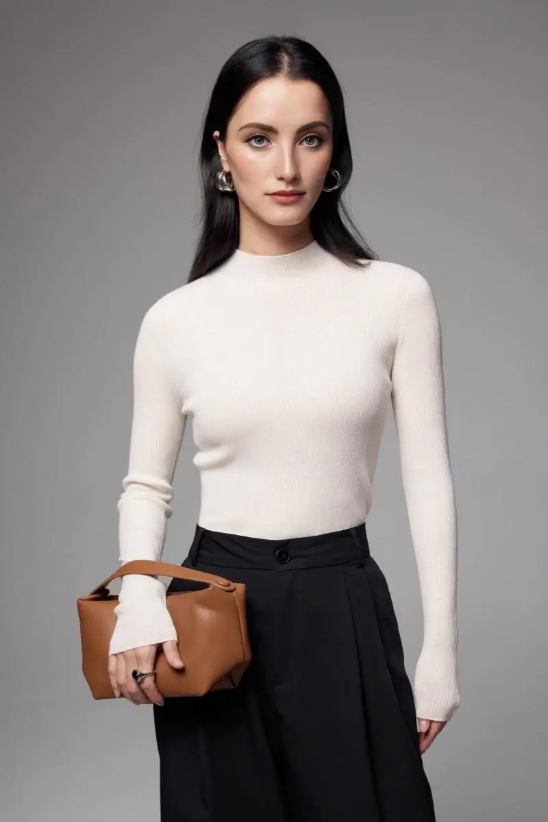 Merino Wool Mock Neck Sweater