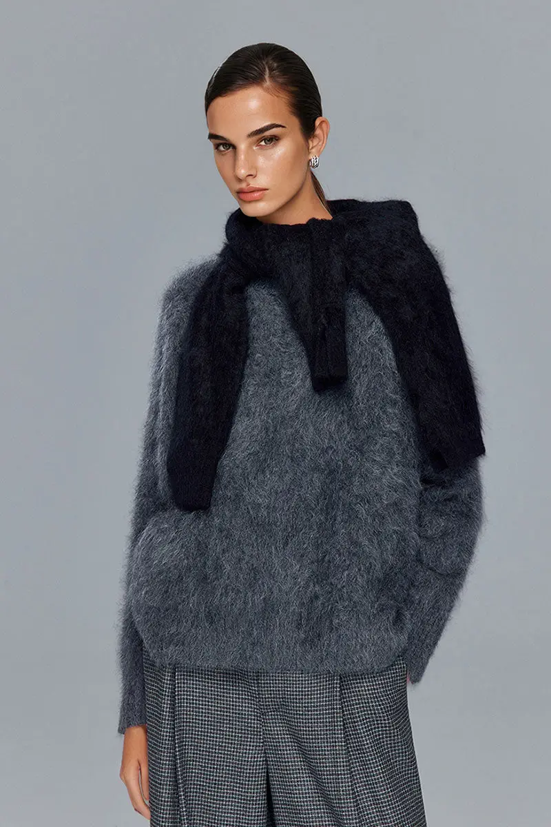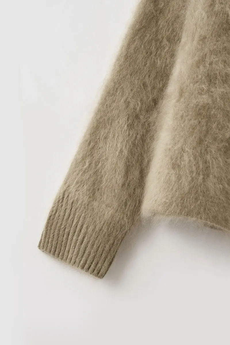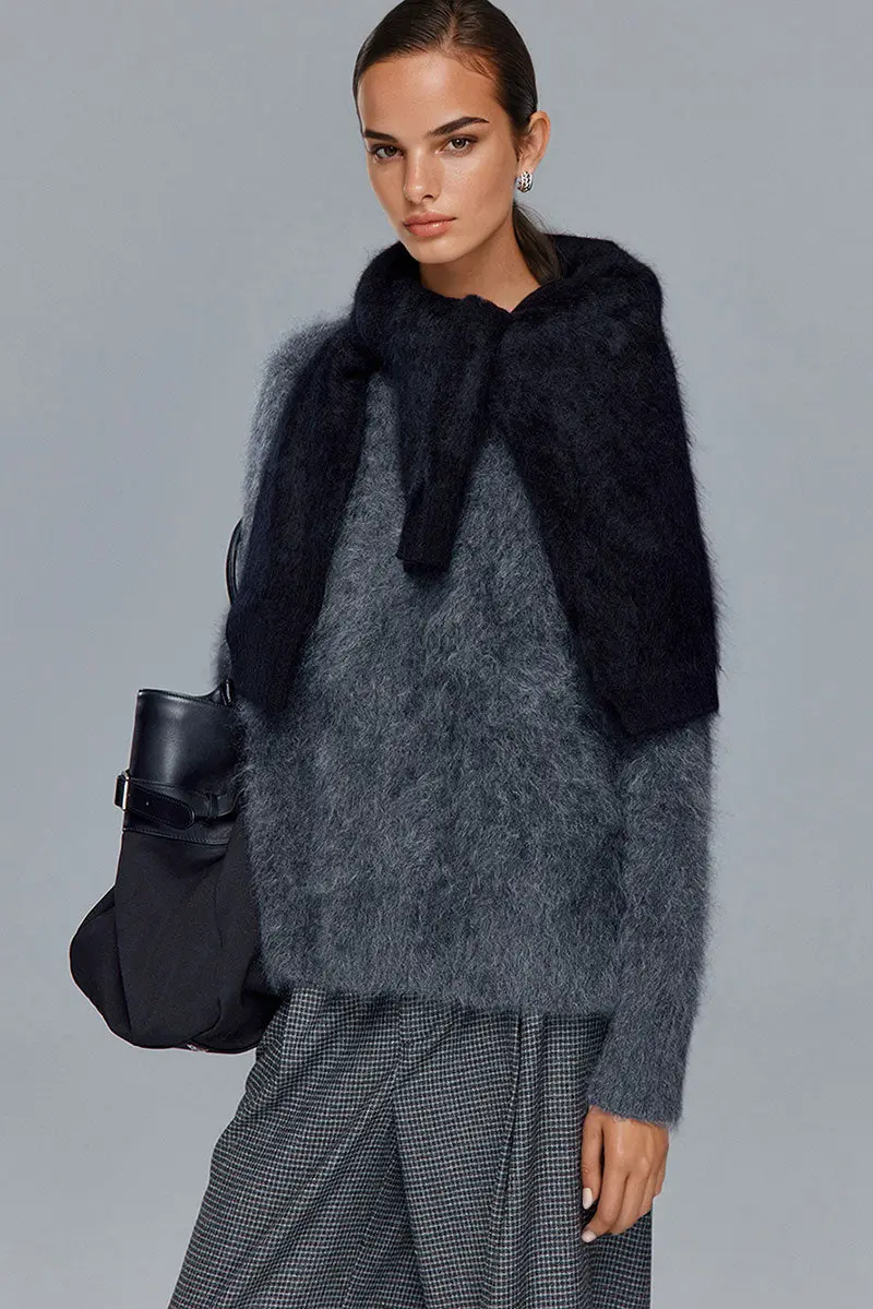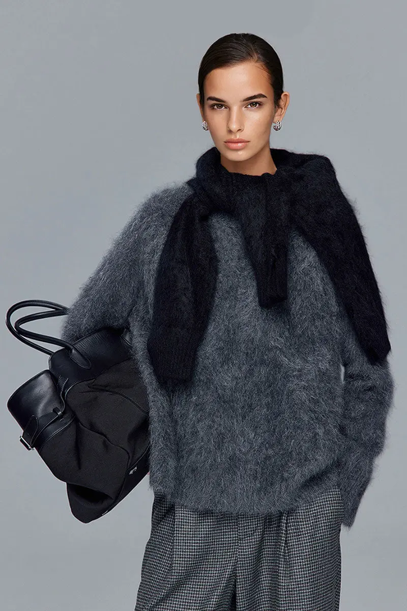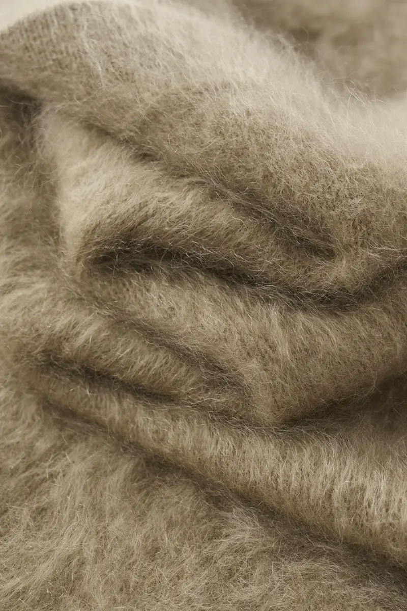 Cable Knit Brushed Alpaca Crewneck Sweater