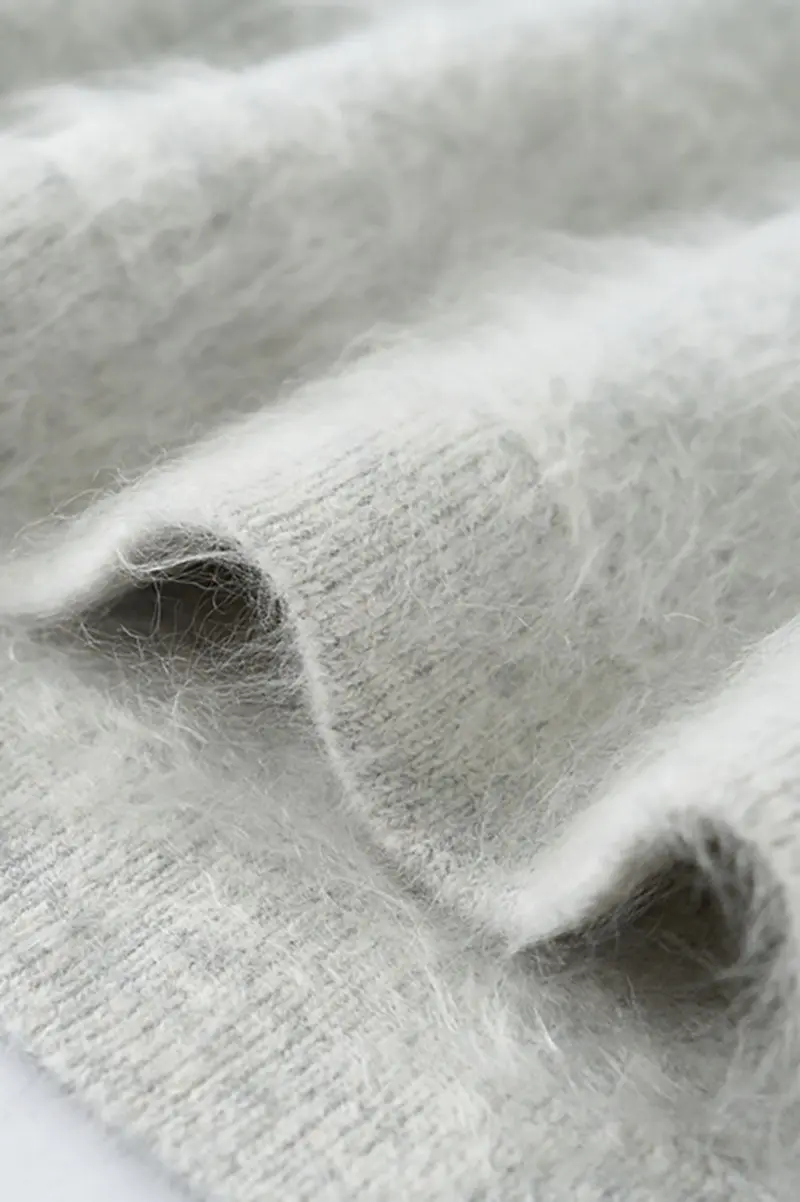 Wool Silk Seamless Knit U Neck Sweater