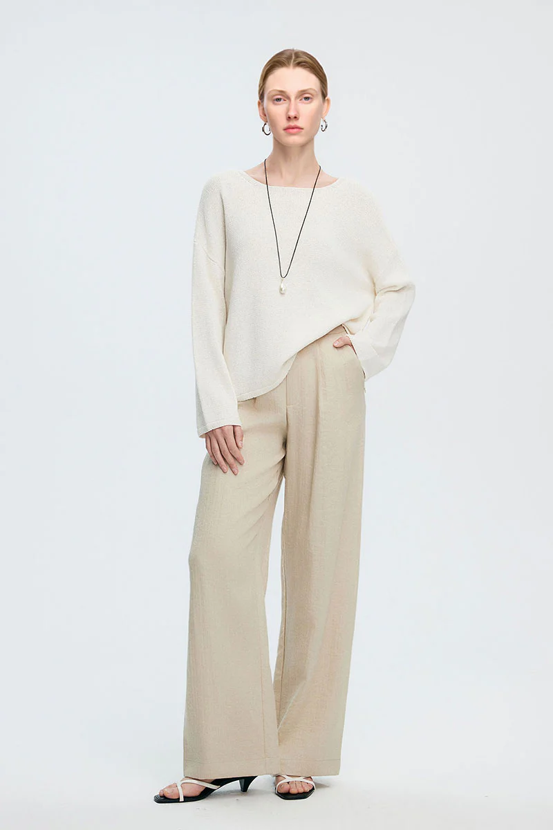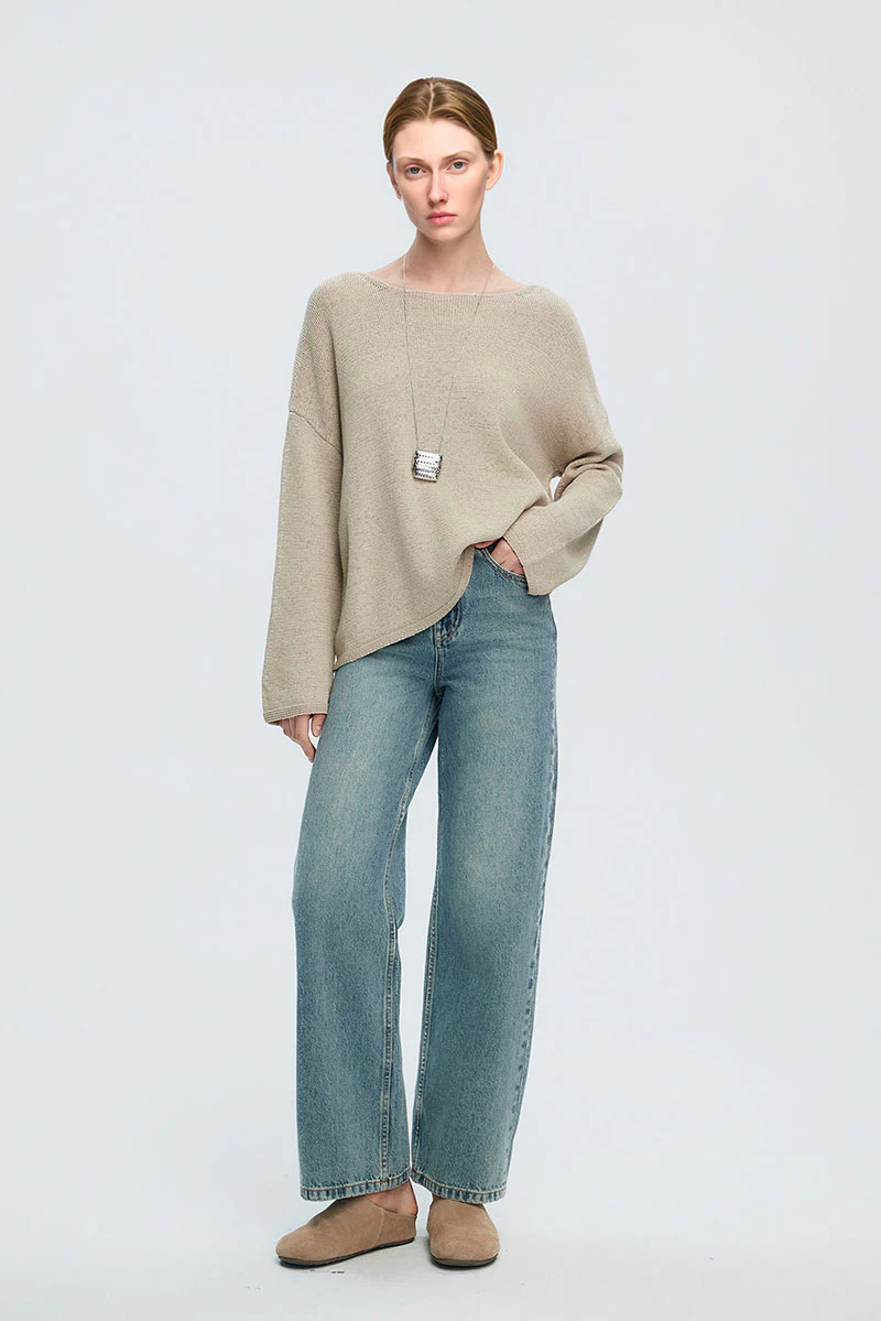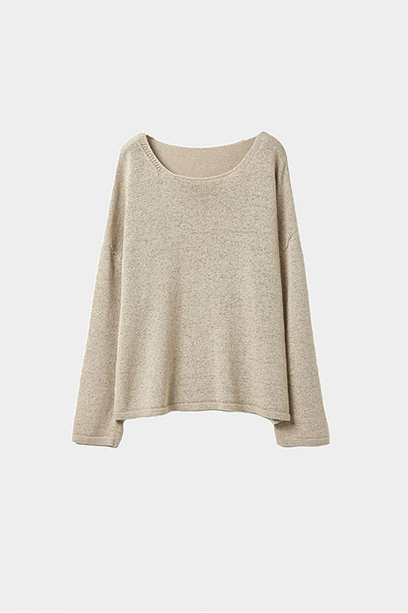 Oversized Linen-Cotton Knit Long-Sleeve Drop-Shoulder T-Shirt