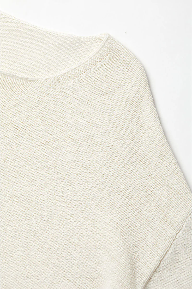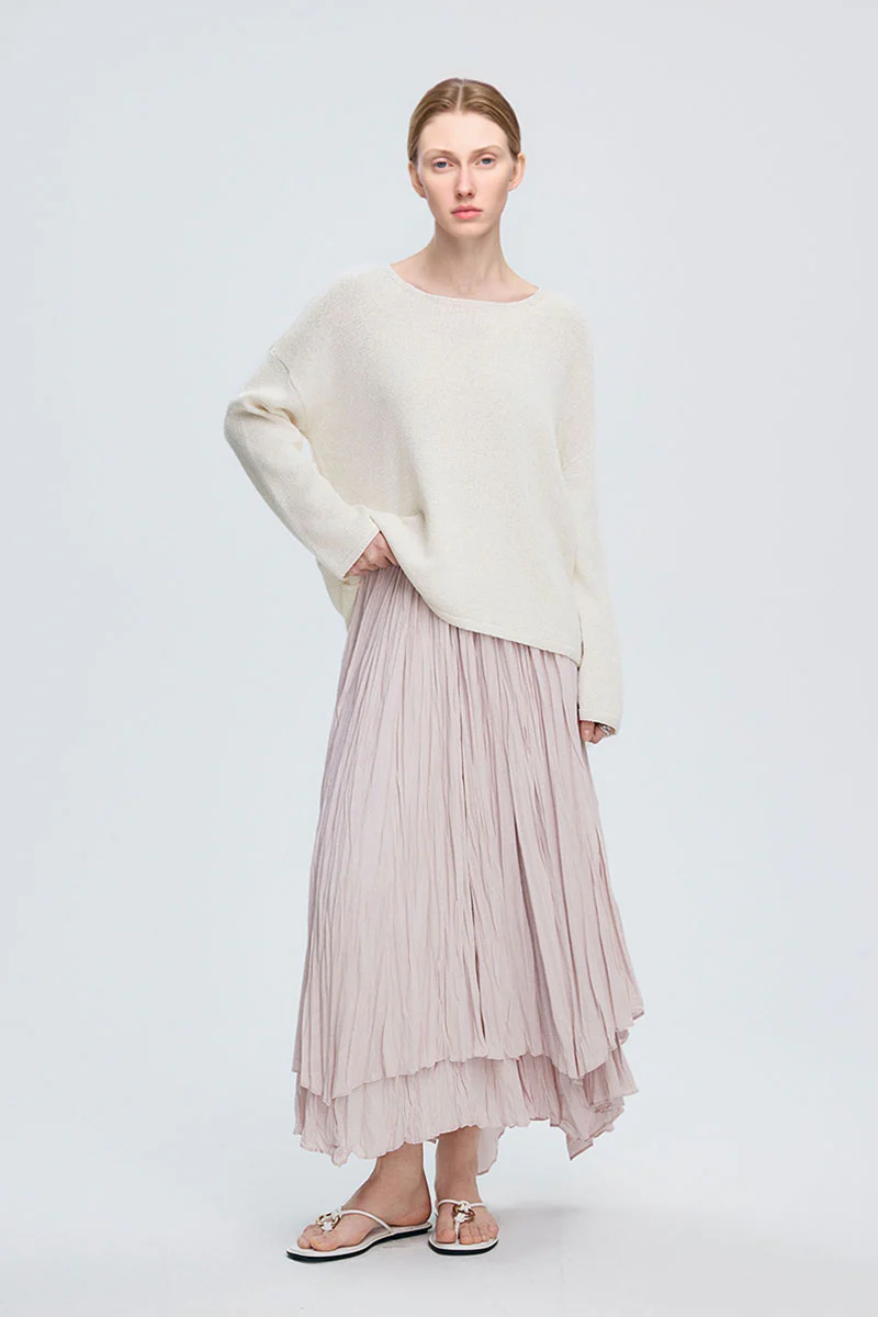 Oversized Cashmere-Silk Open Knit Crewneck Sweater