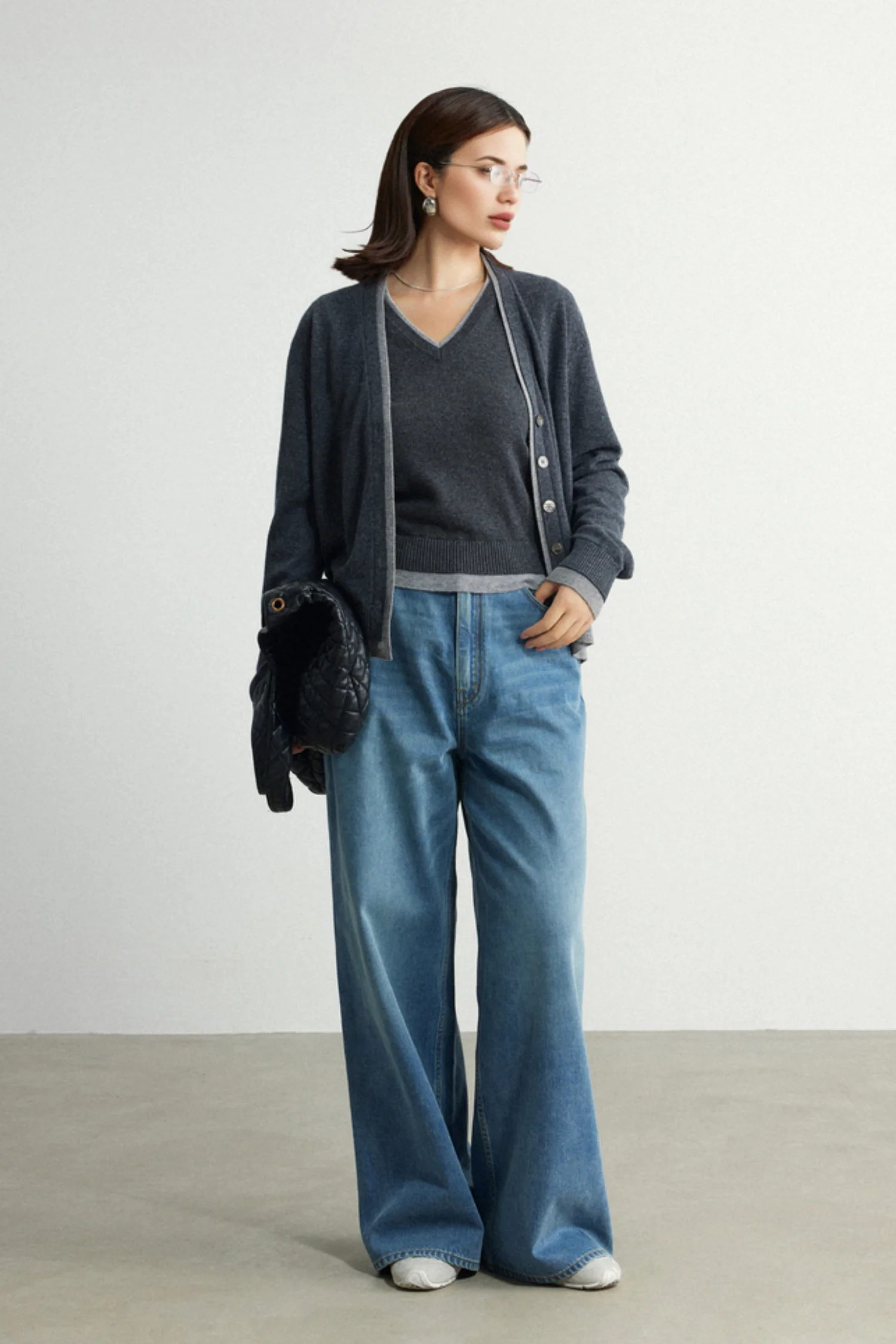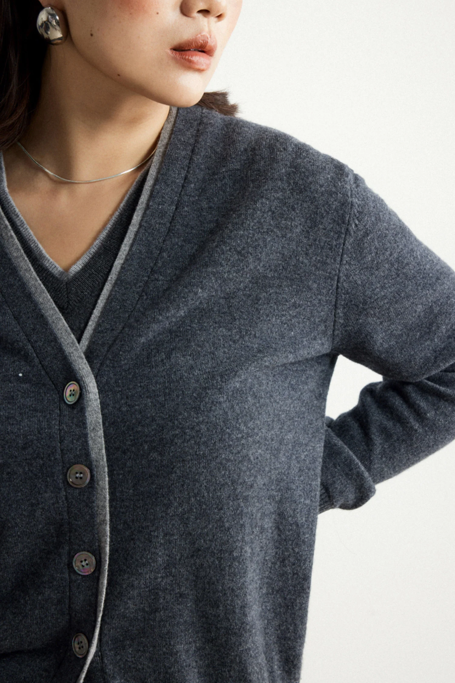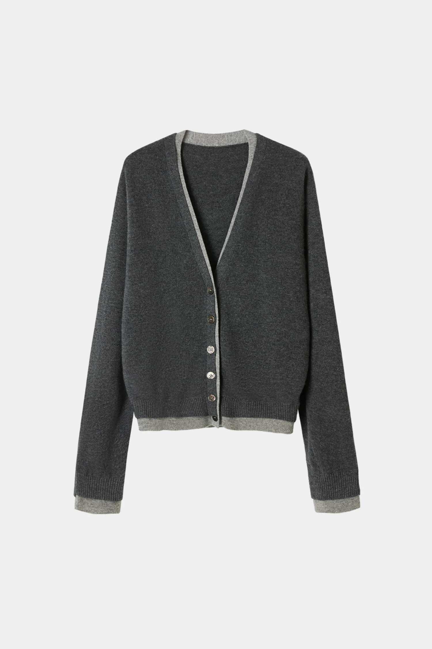 Ultrafine Wool V-Neck Double-Layer Trim Cardigan