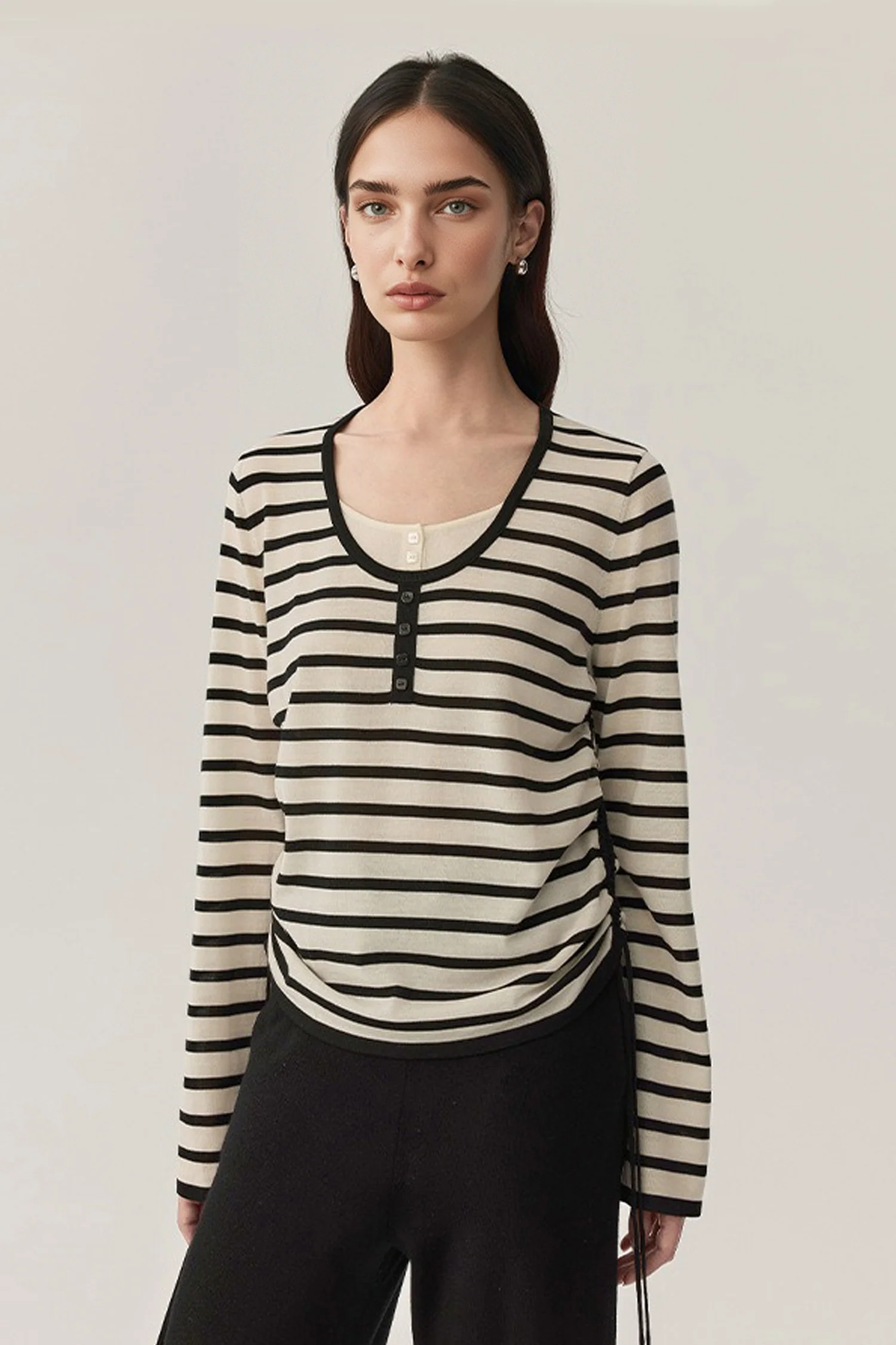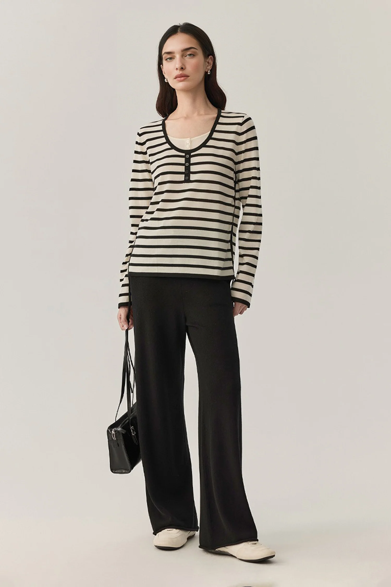 Ultra-Fine Merino Wool Striped Pullover Sweater