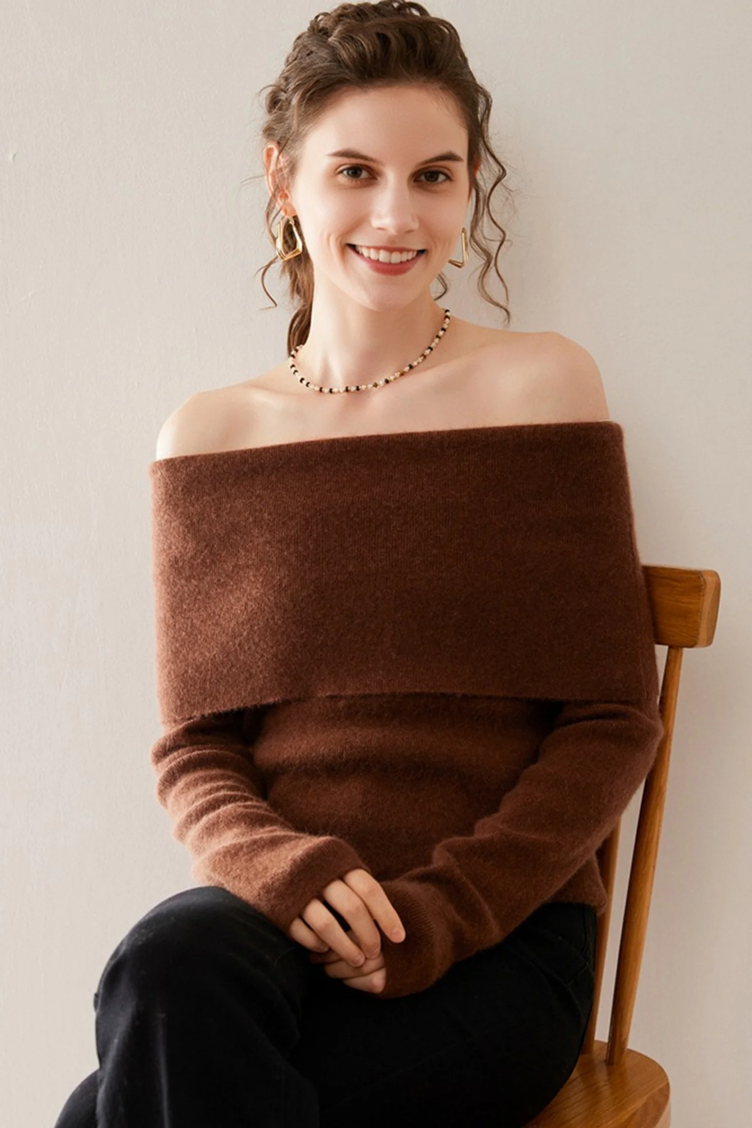 Elegant 100 Cashmere Off-the-Shoulder Sweater
