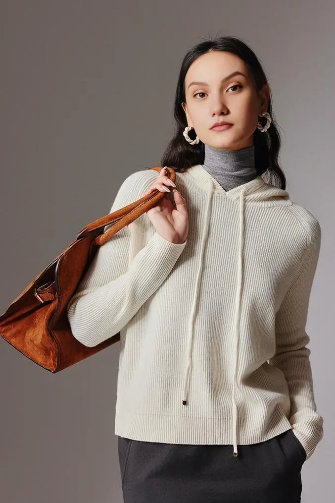 Washable Merino Wool Seamless Knit Sweater Hoodie