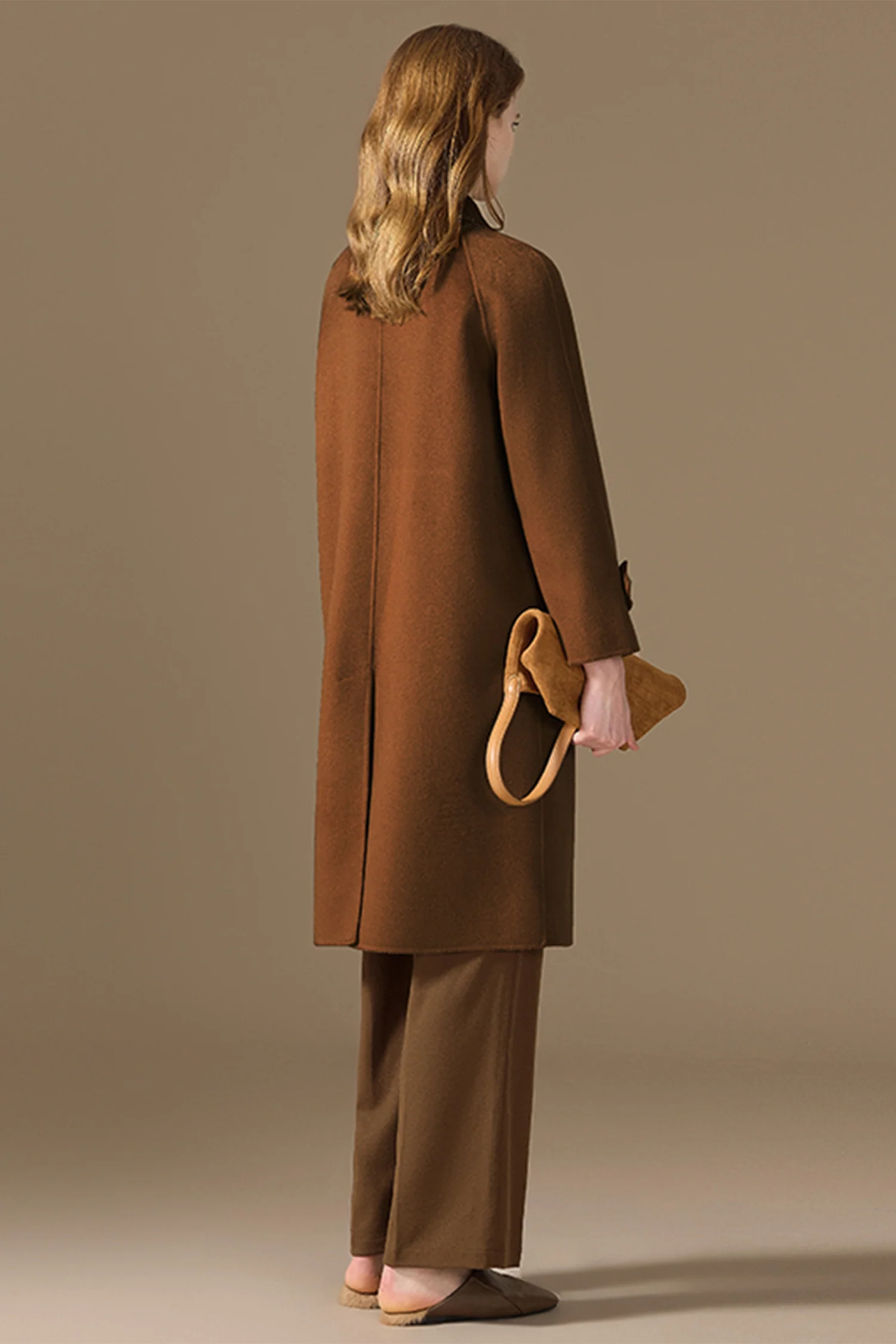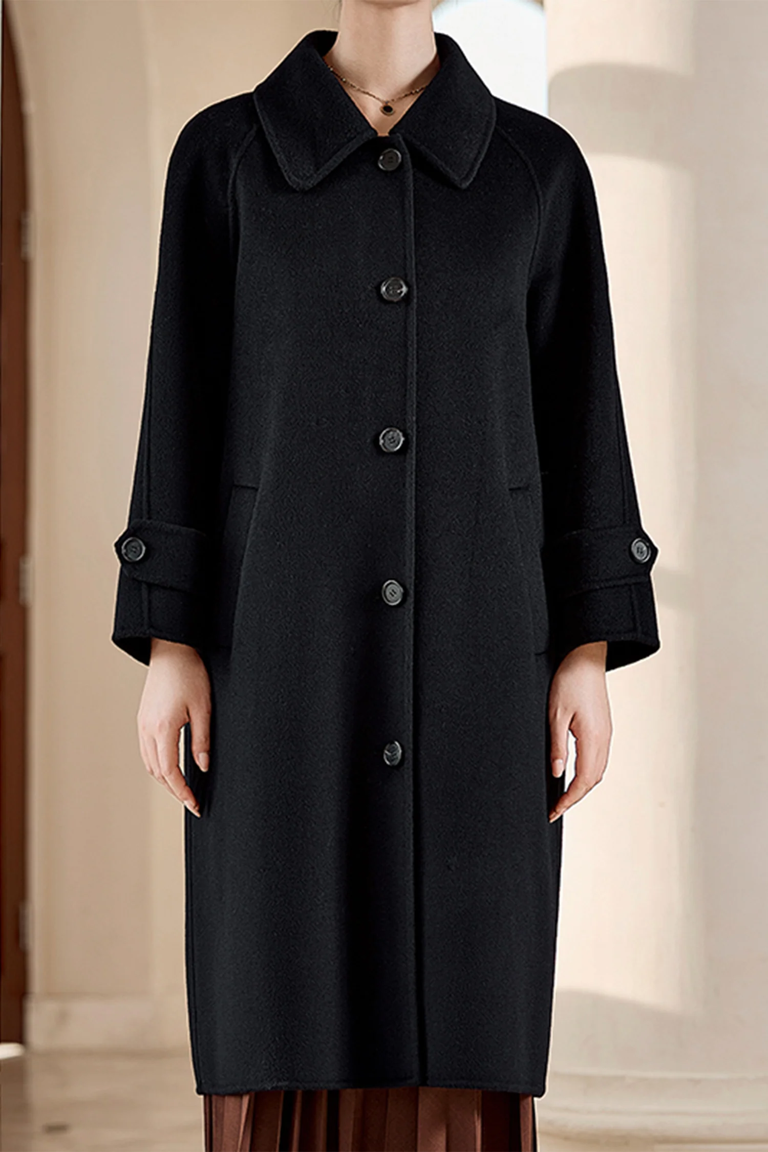 Hand-Finished Double-Faced Long Wool-Cashmere Wrap Coat
