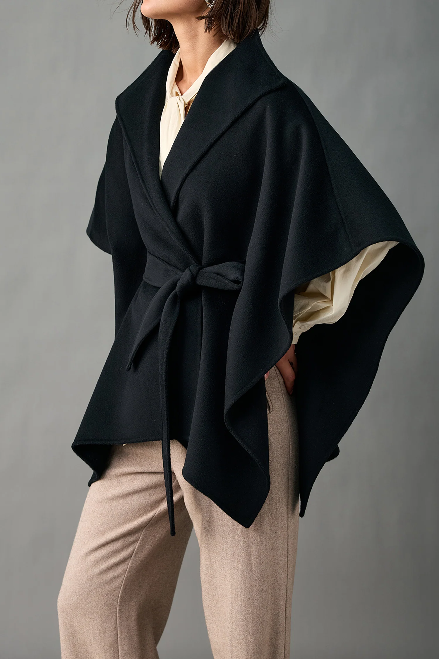 Handcrafted Pure Cashmere Robe-Style Cape Coat