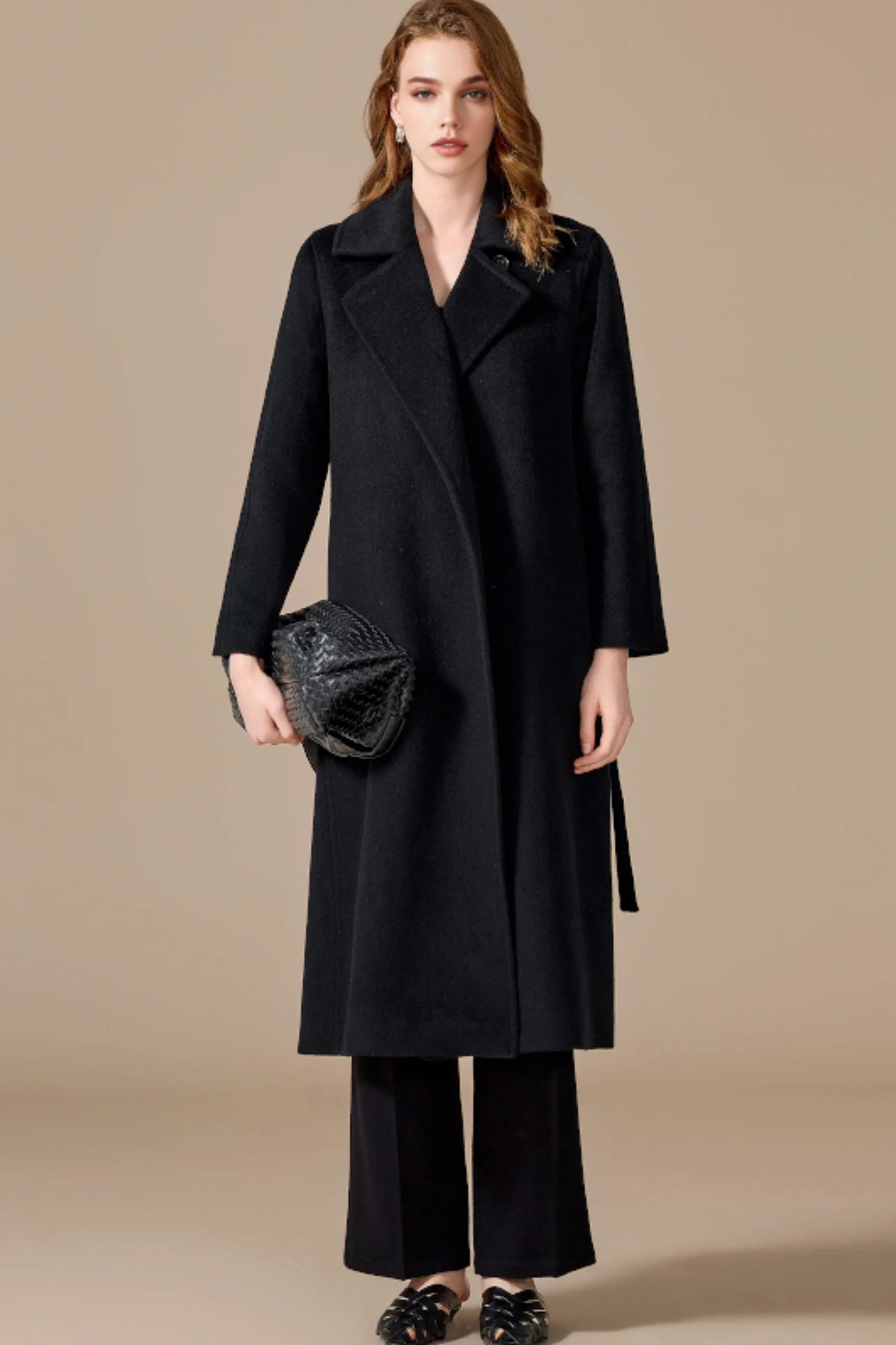 Classic Handcrafted Cashmere Belted Wrap Maxi Coat