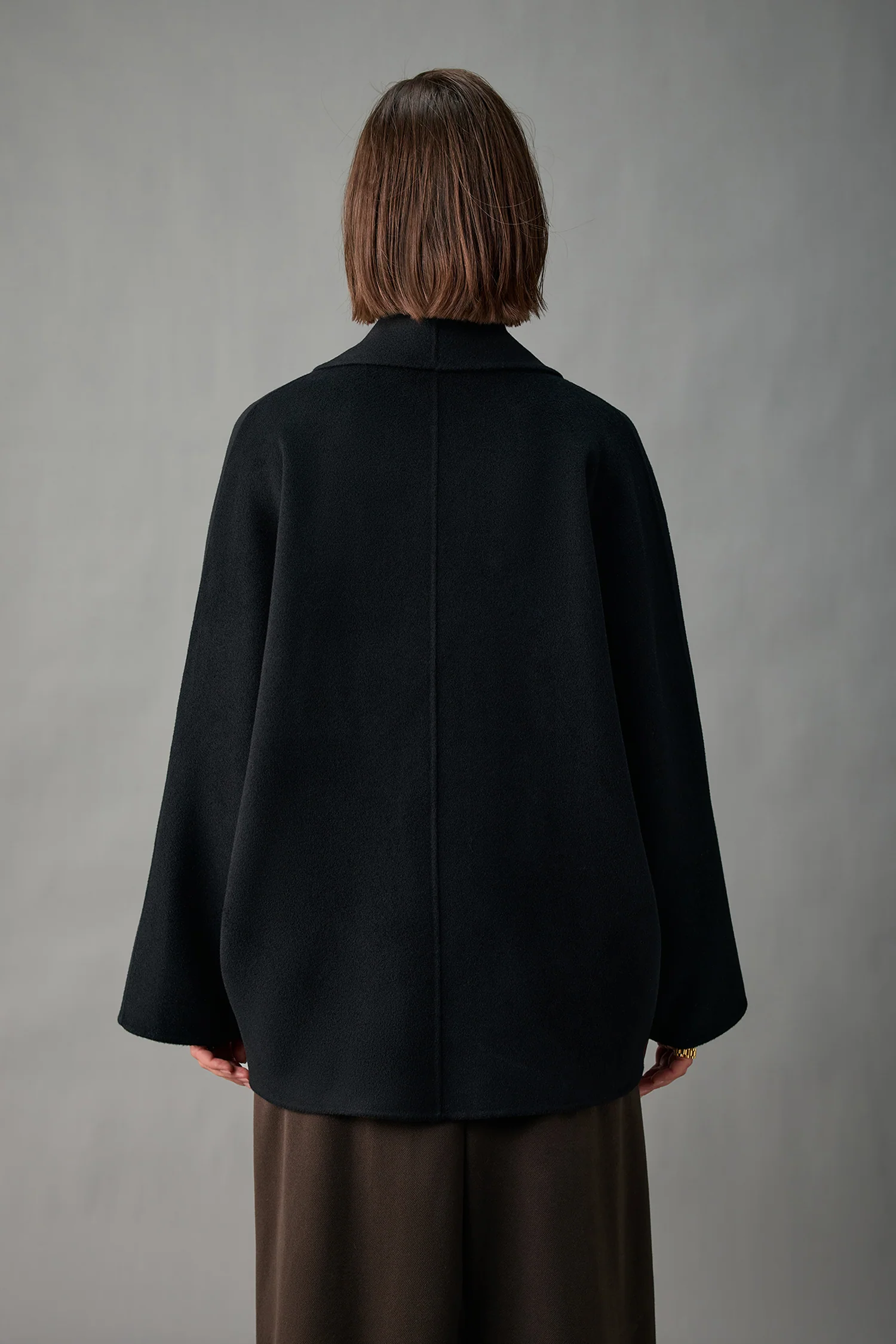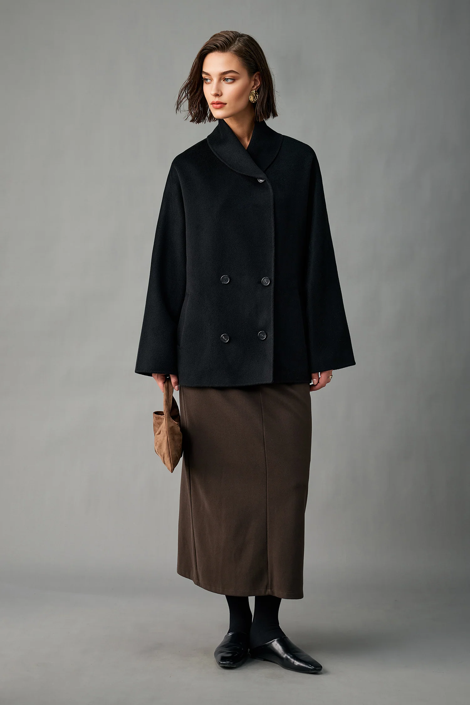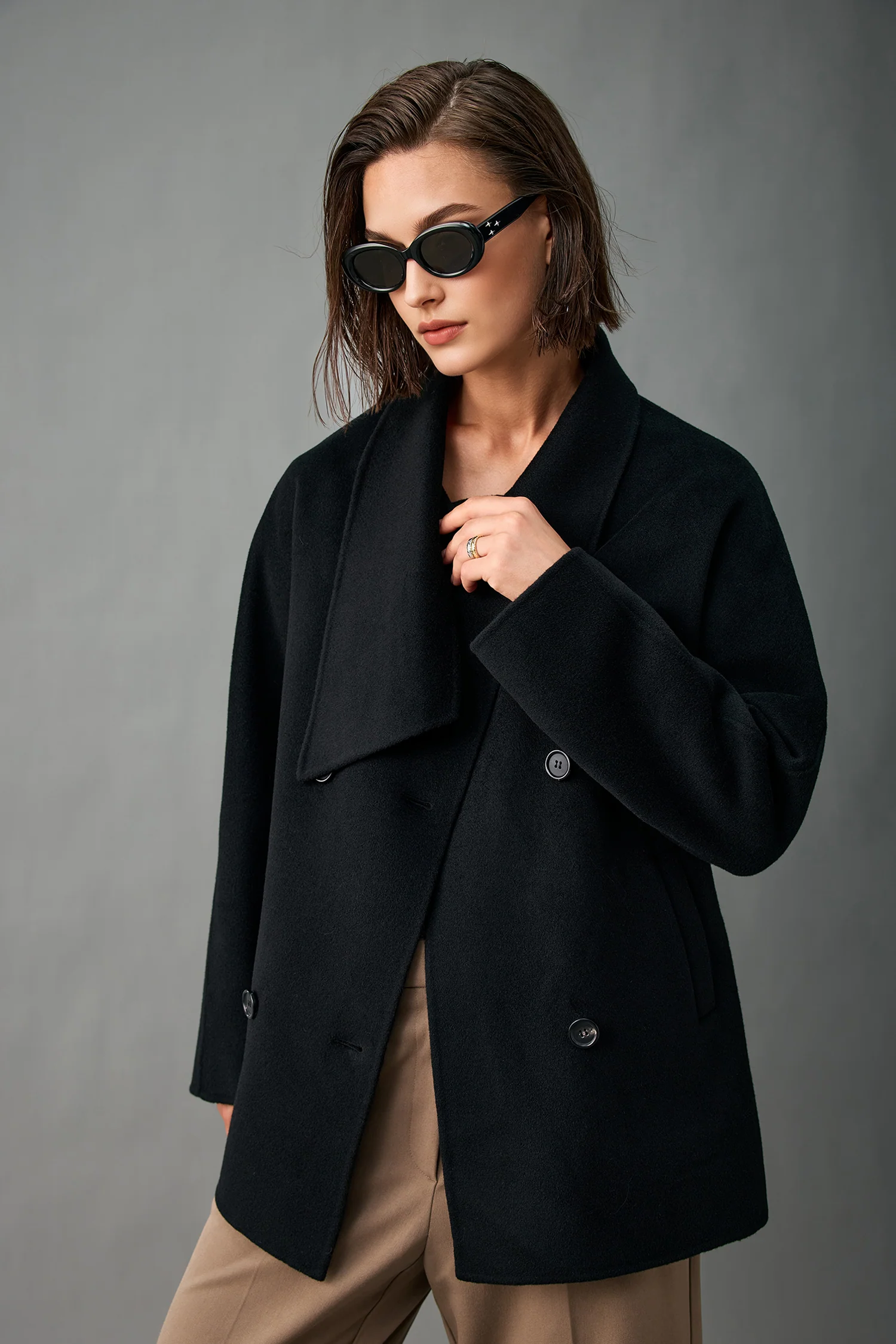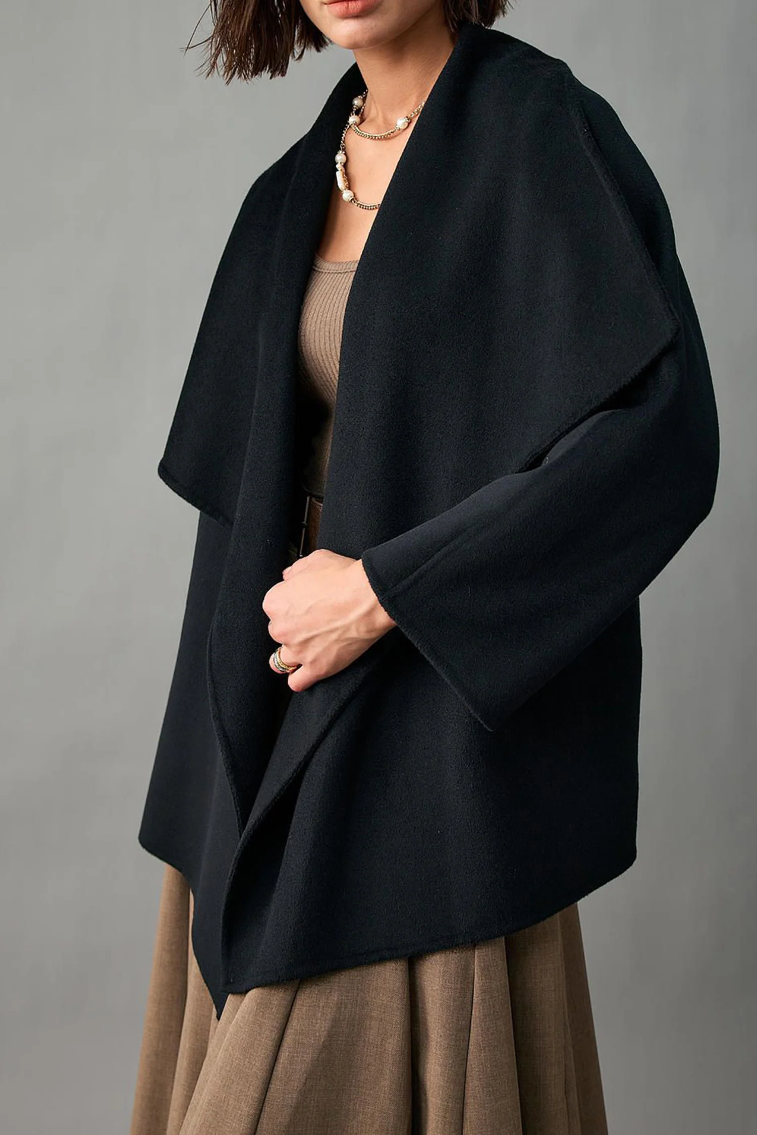 Handcrafted Double-Faced Cashmere Draped Collar Short Wrap Coat