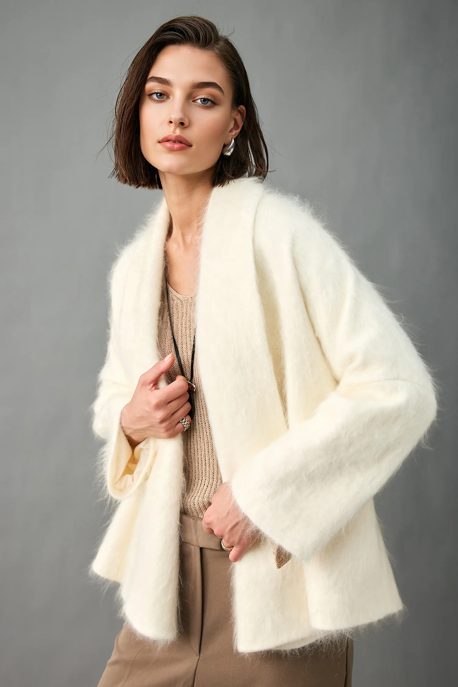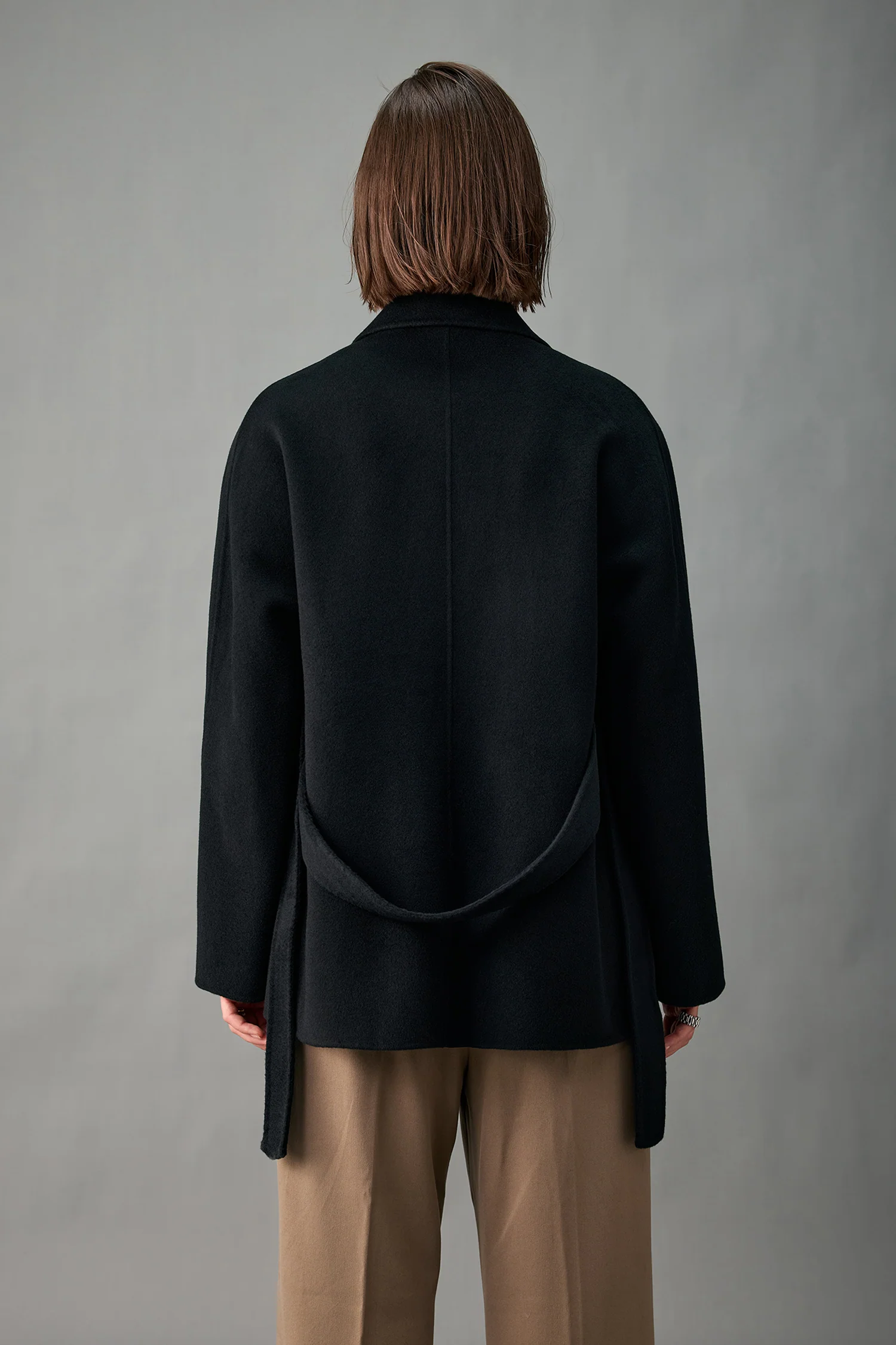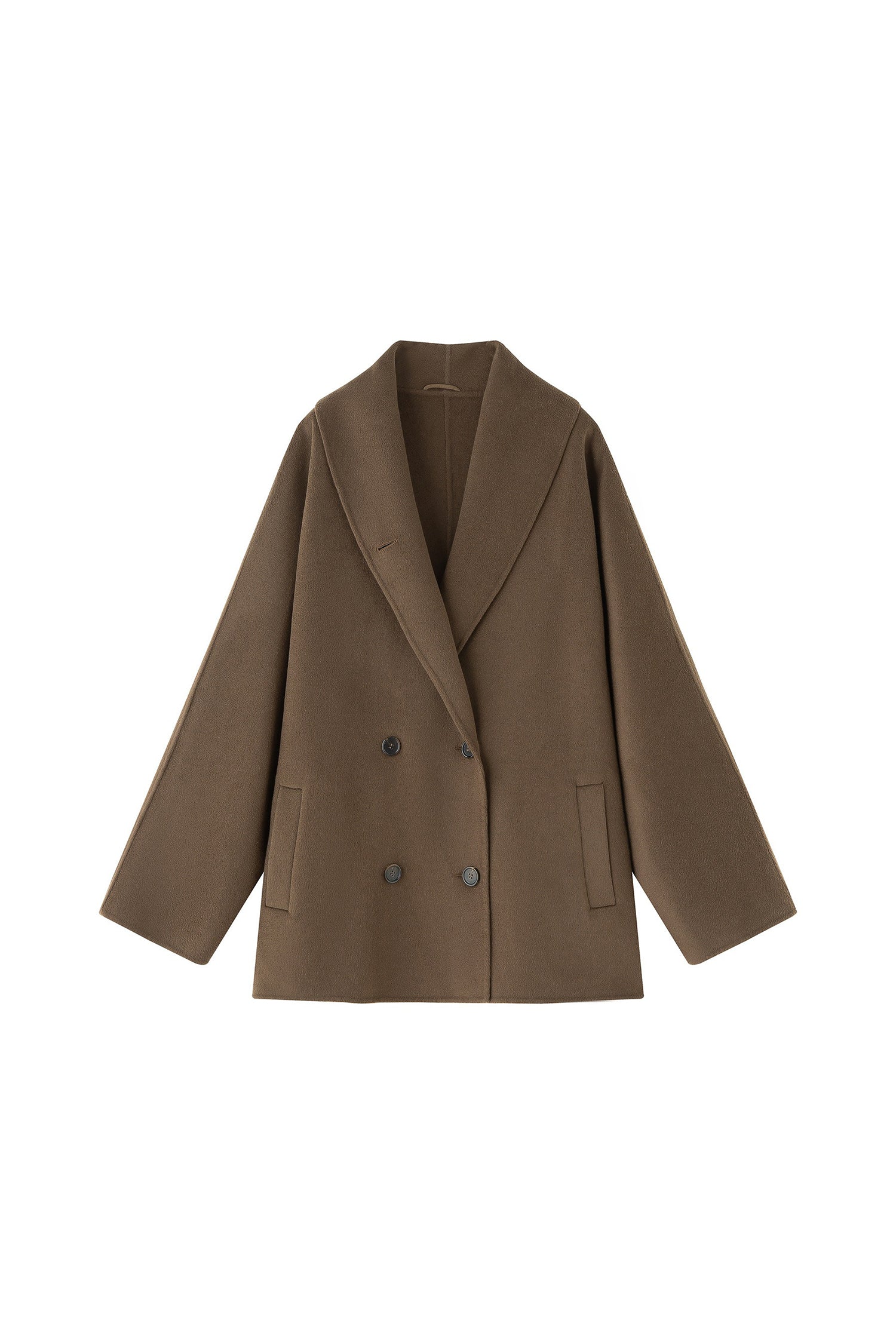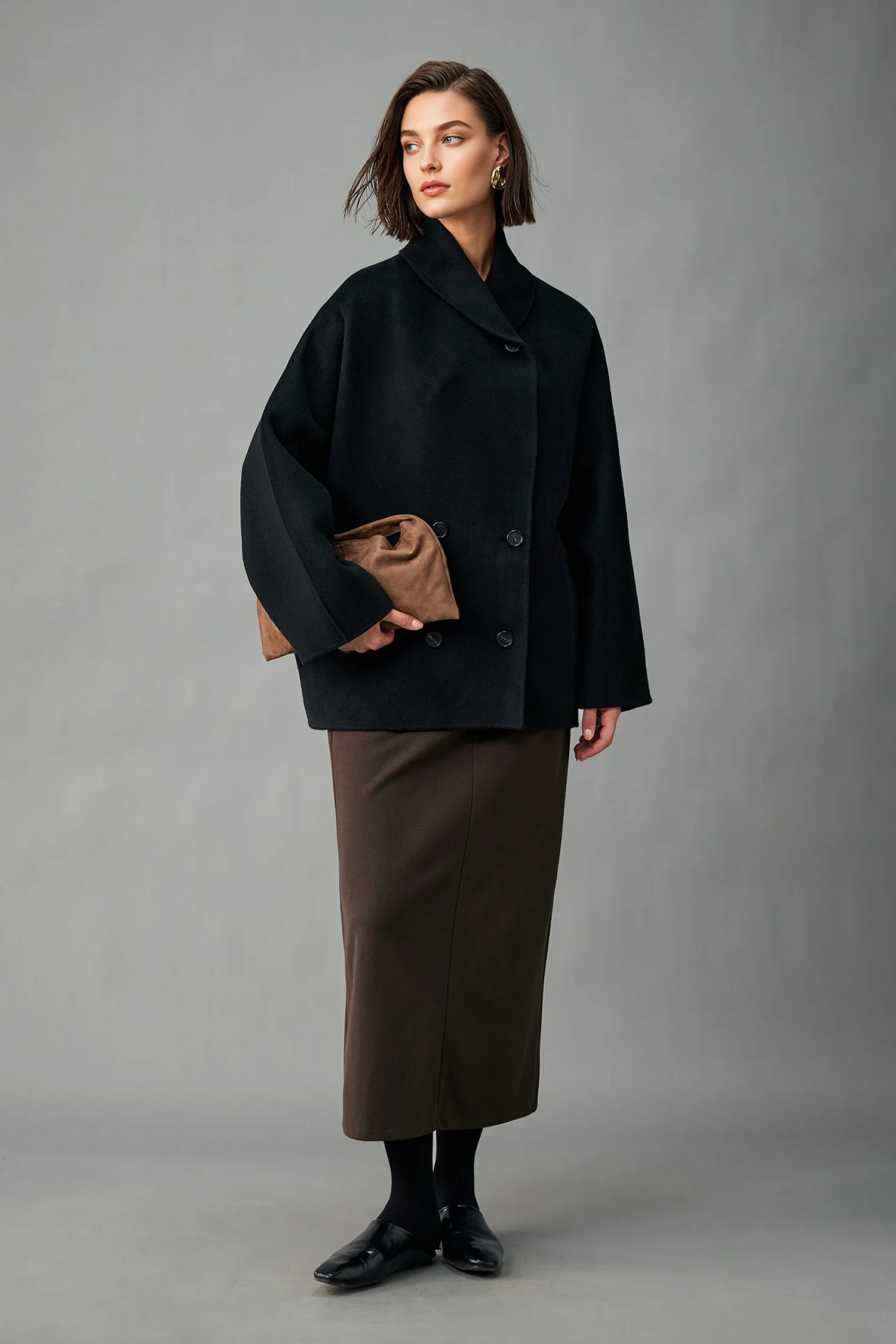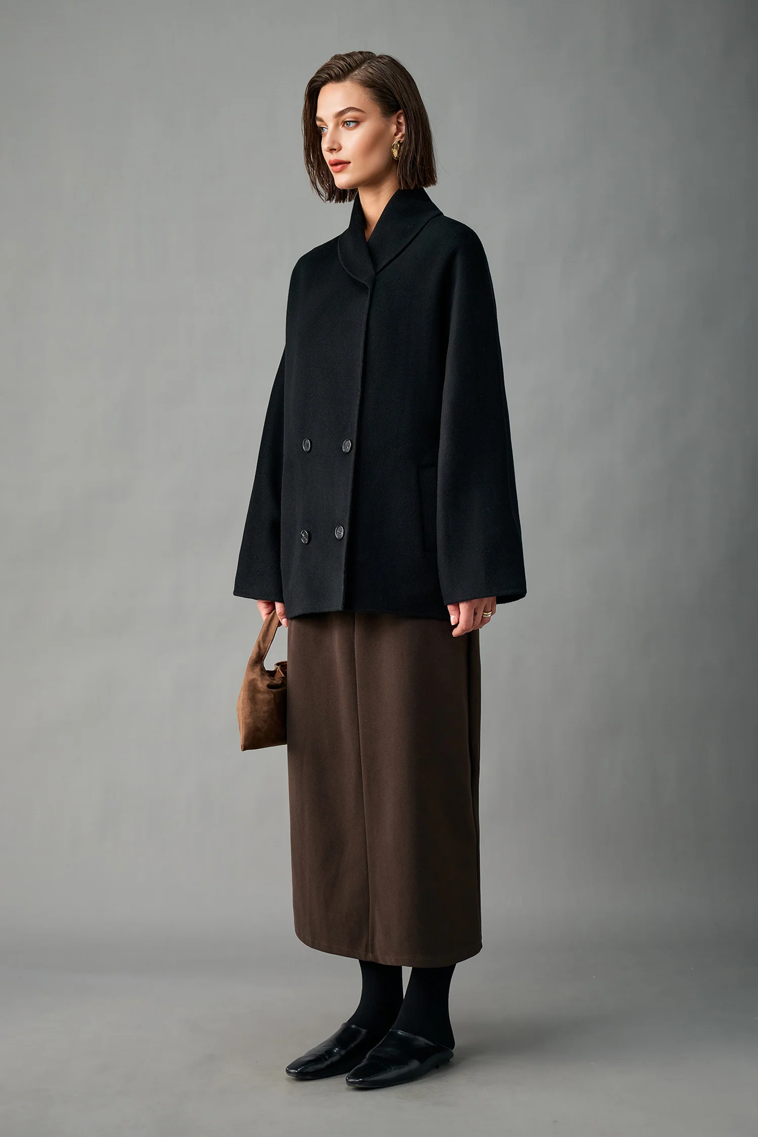 Handcrafted Double-Faced Cashmere Draped Collar Short Wrap Coat
