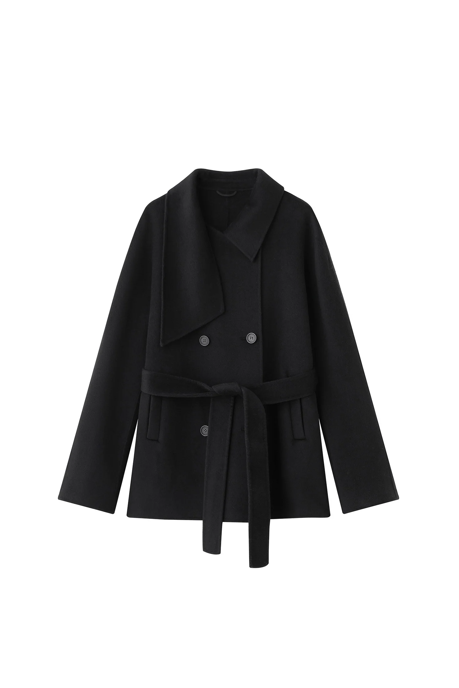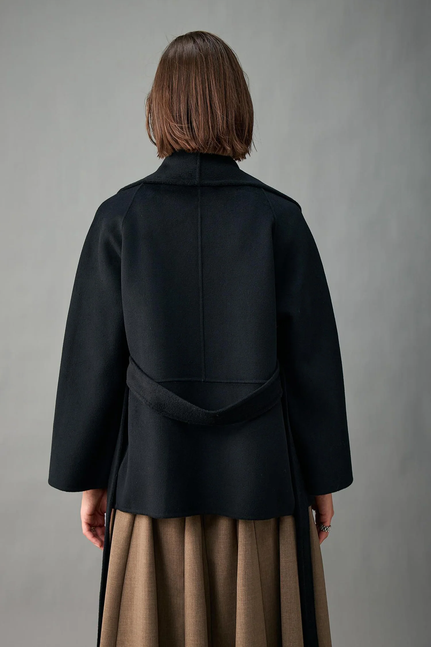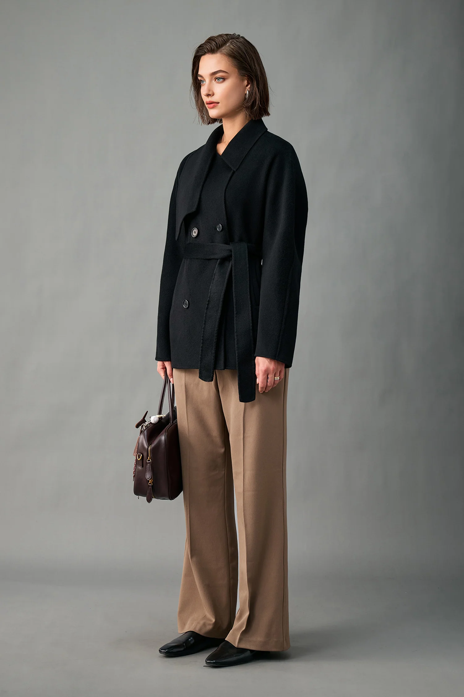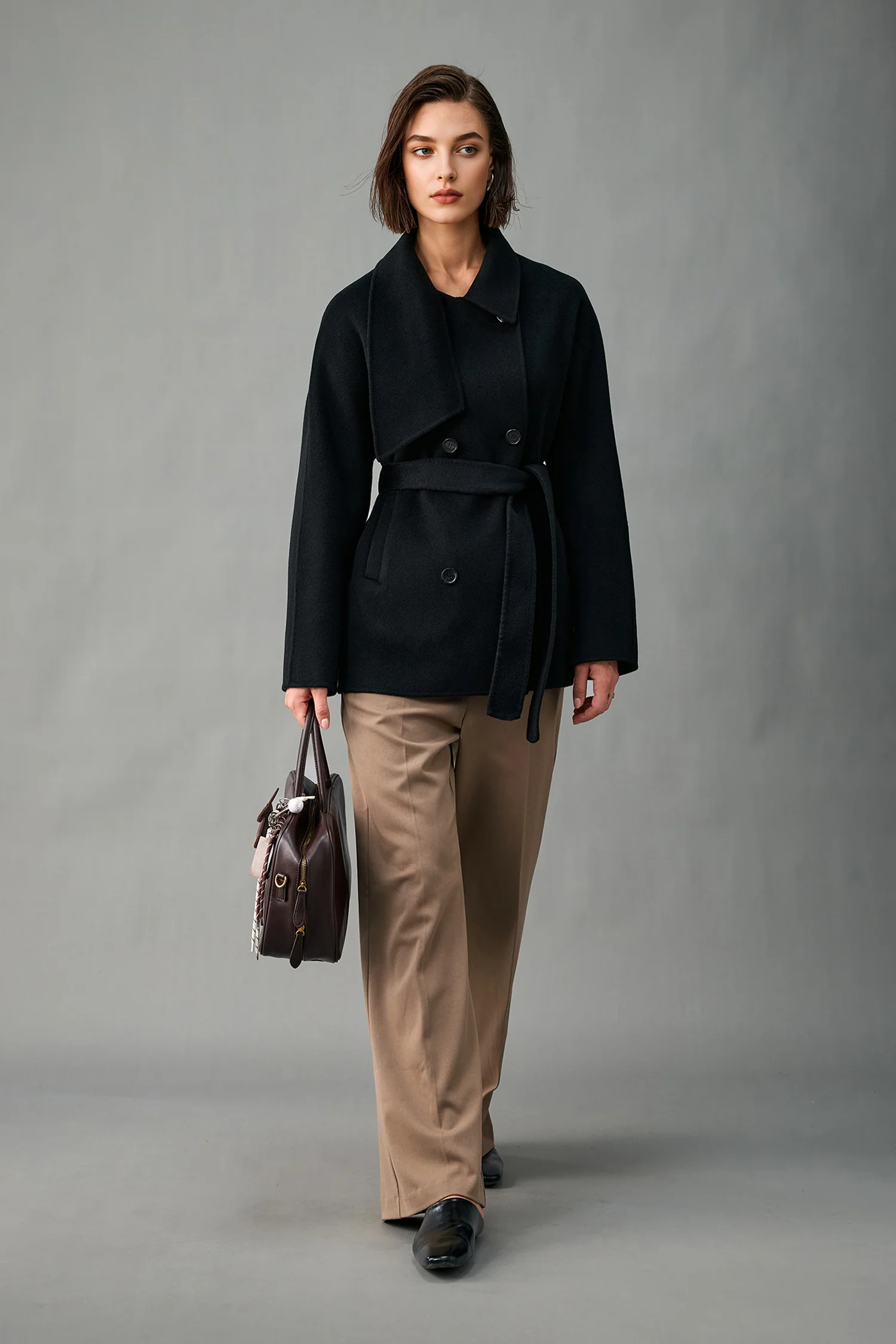 Handcrafted Cashmere Double-Breasted Short Belted Coat