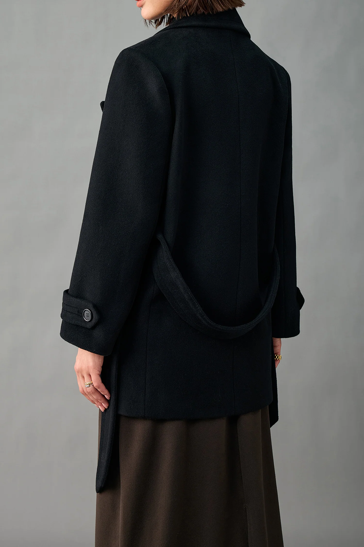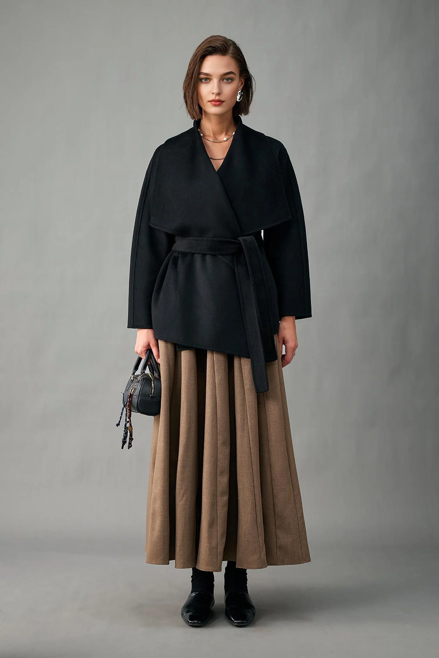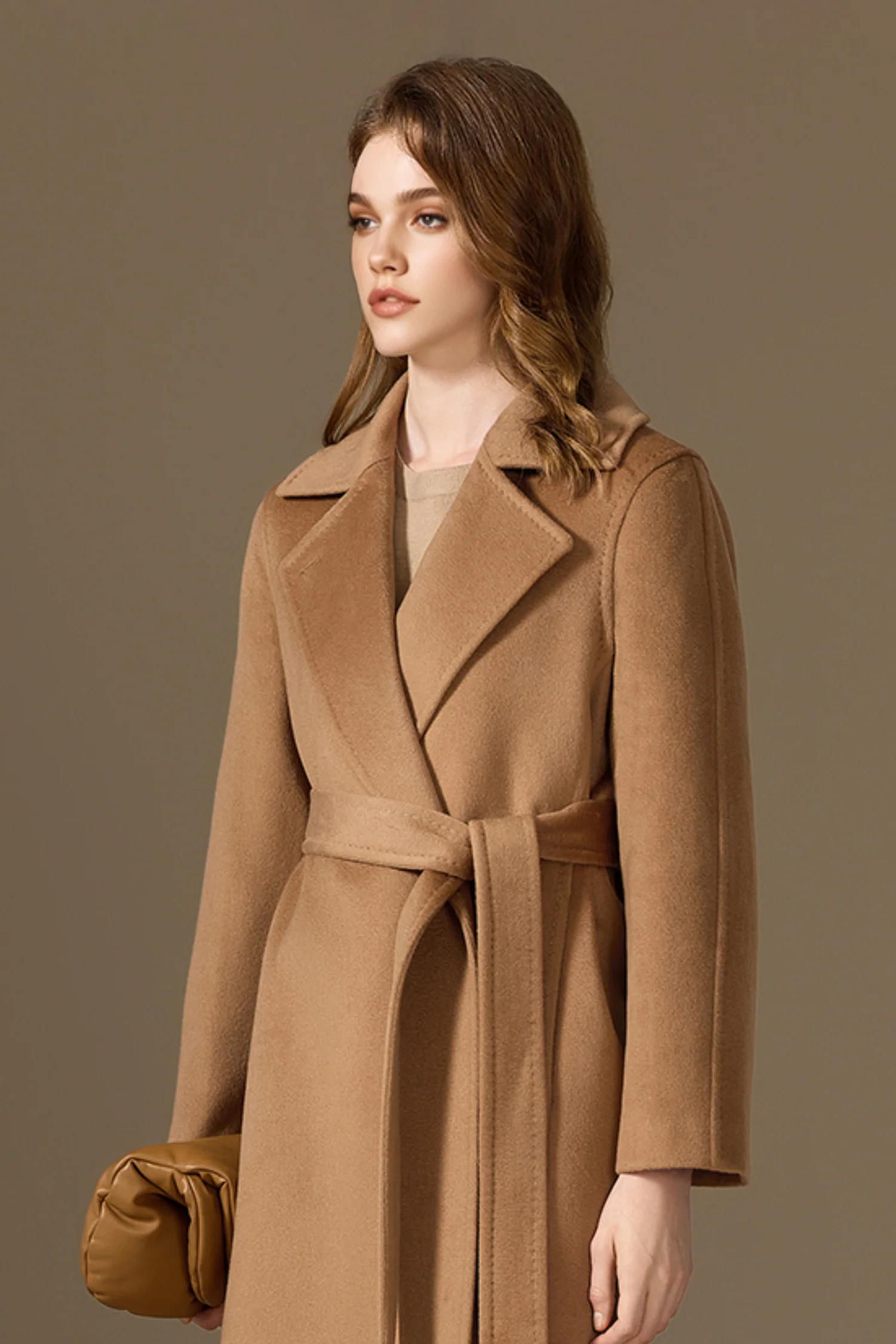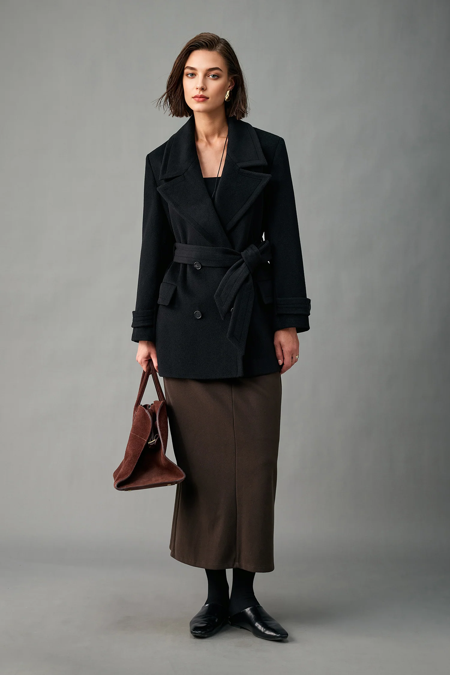 Handcrafted Cashmere Double-Breasted Short Belted Coat