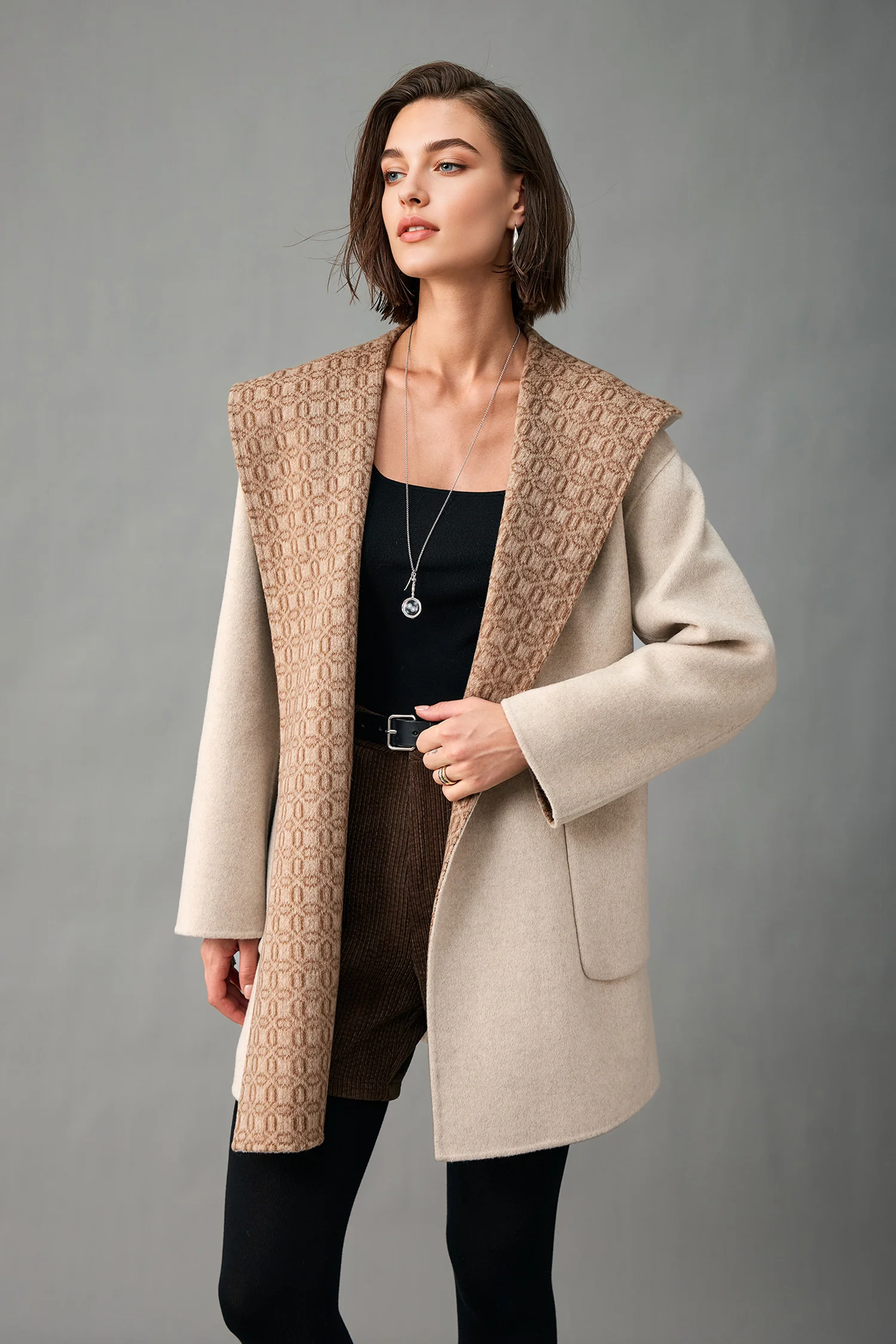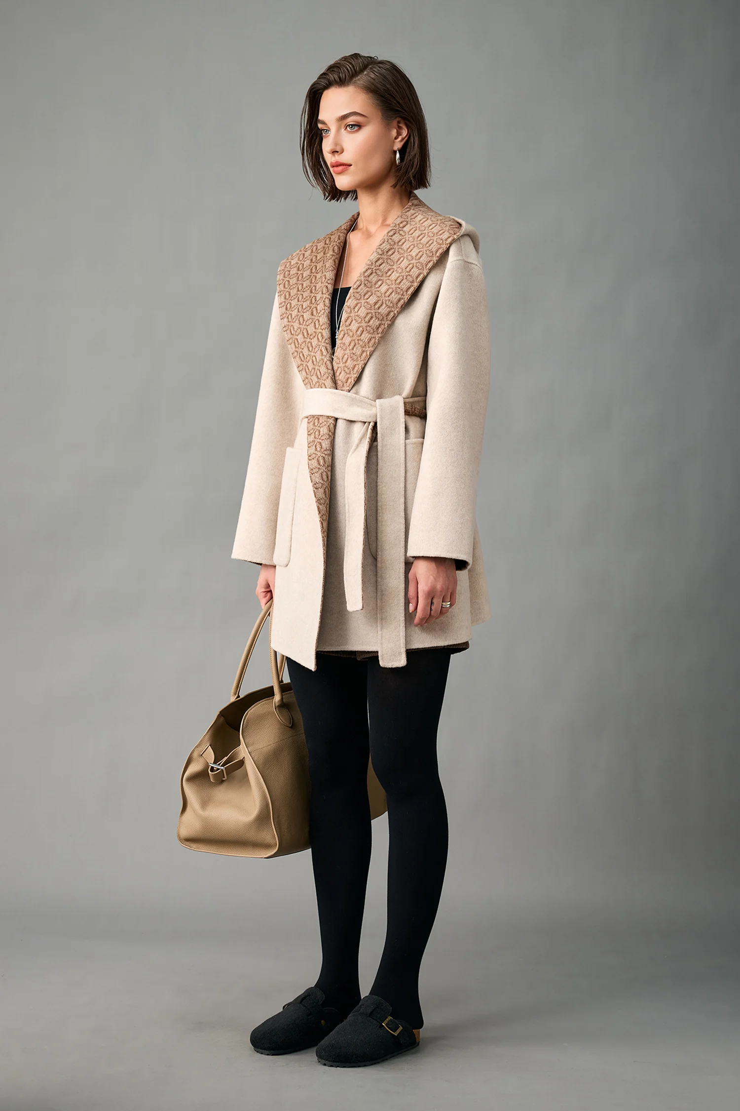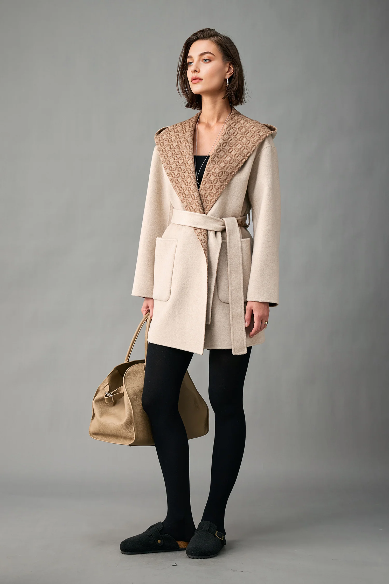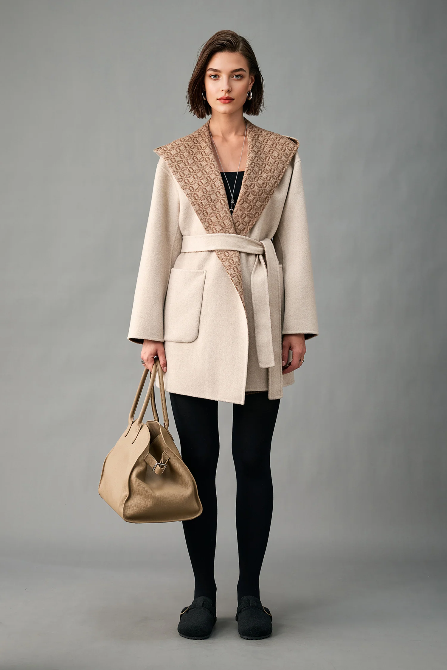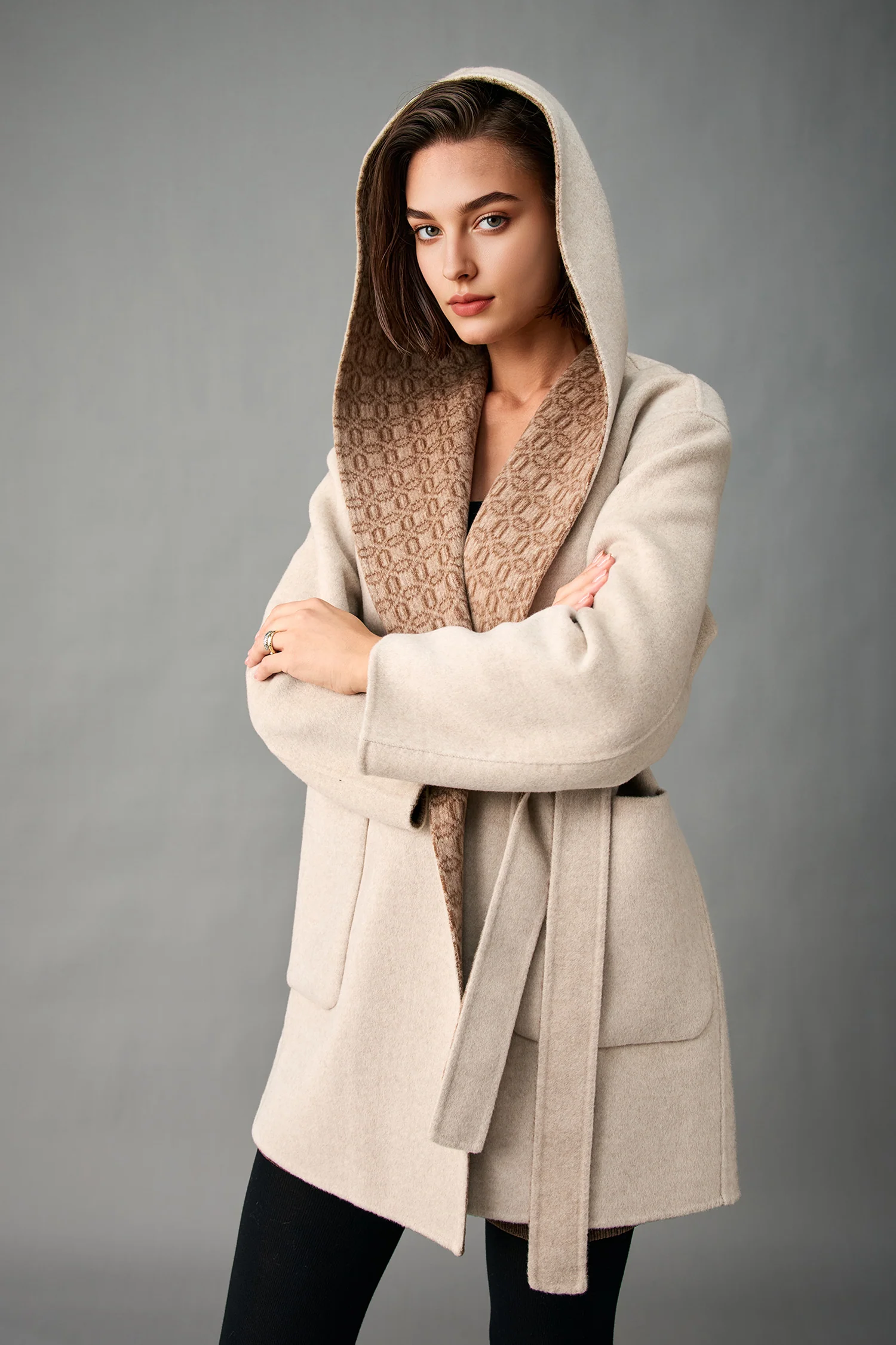 Handcrafted Double-Faced Cashmere Hooded Wrap Coat