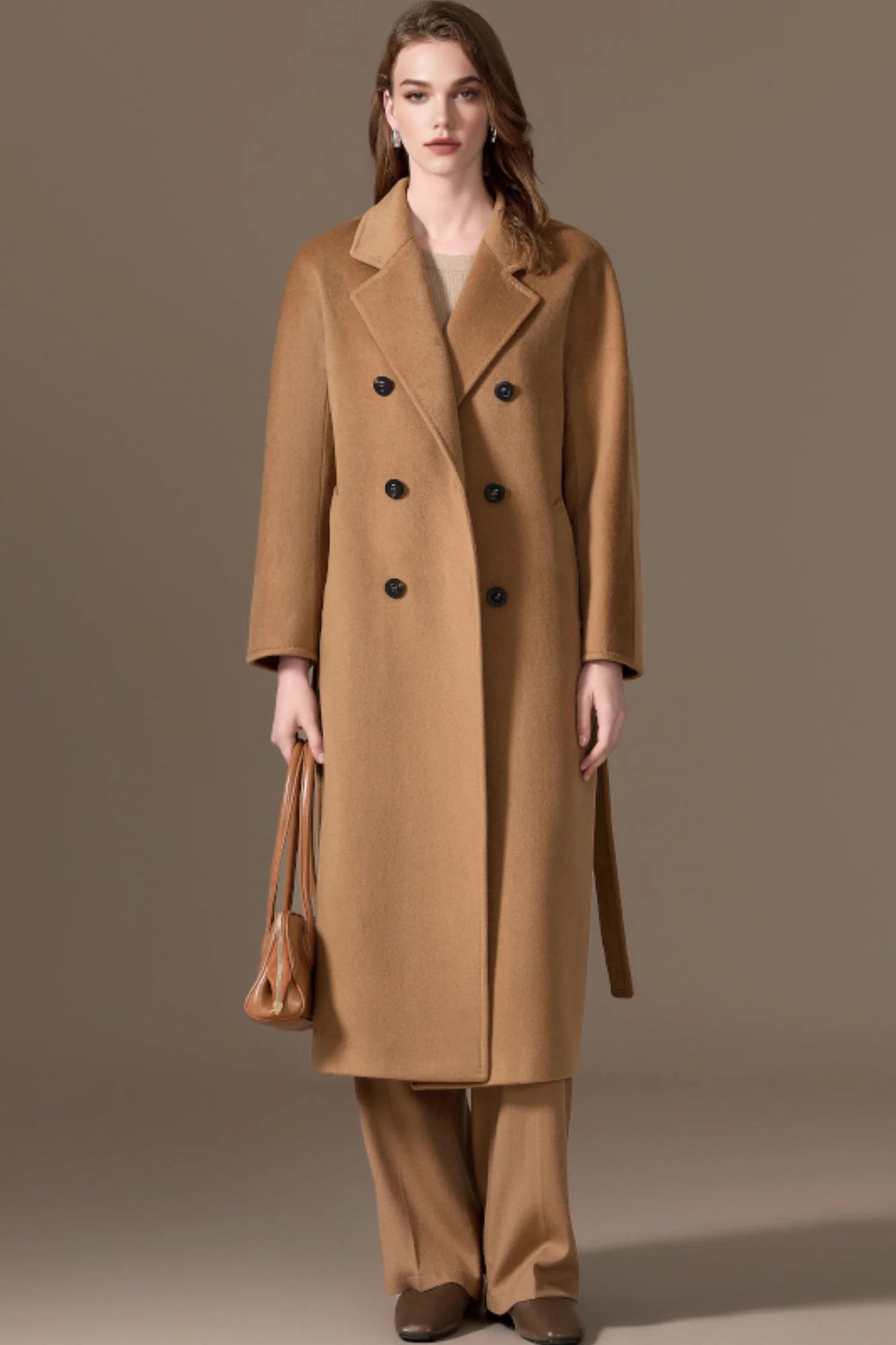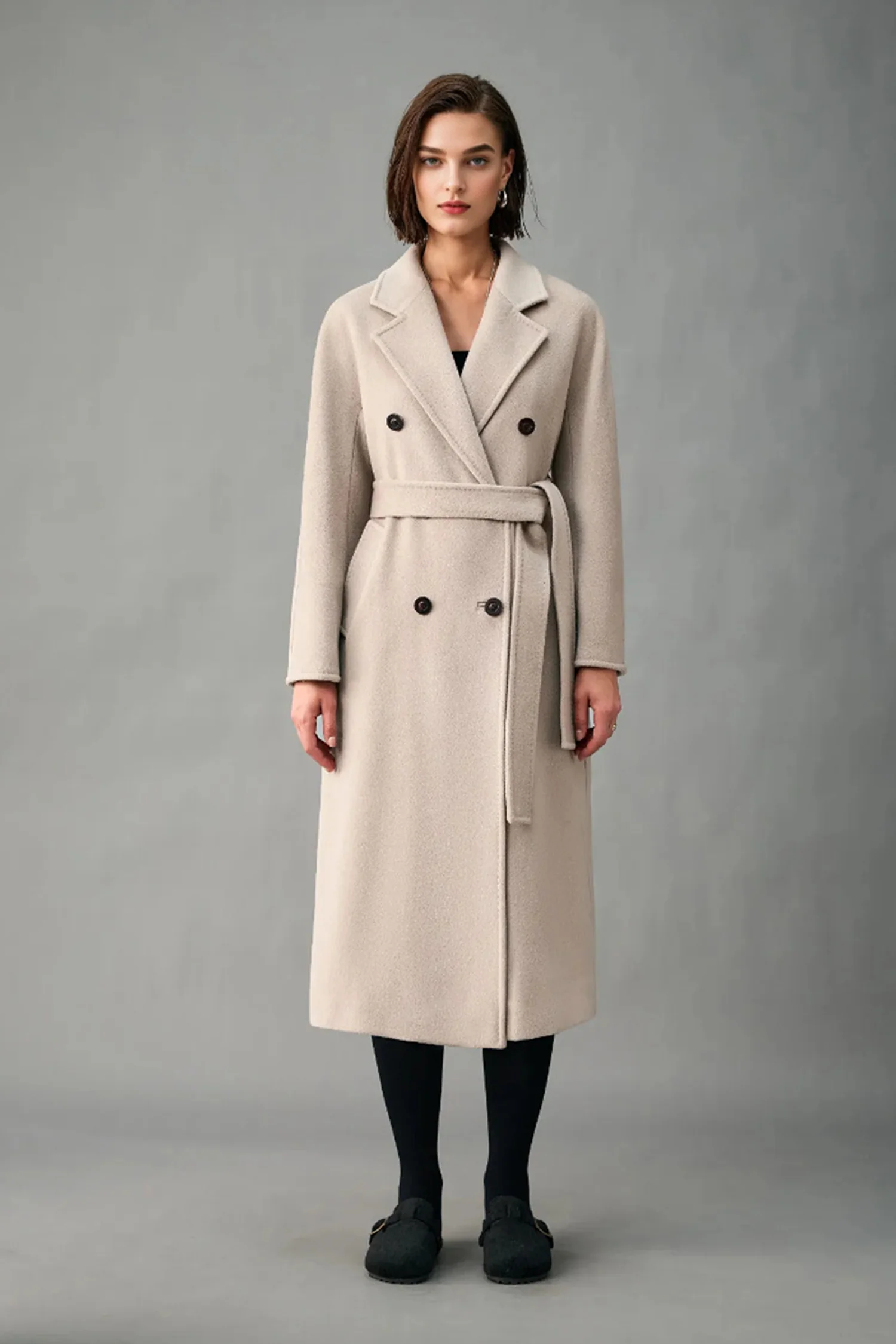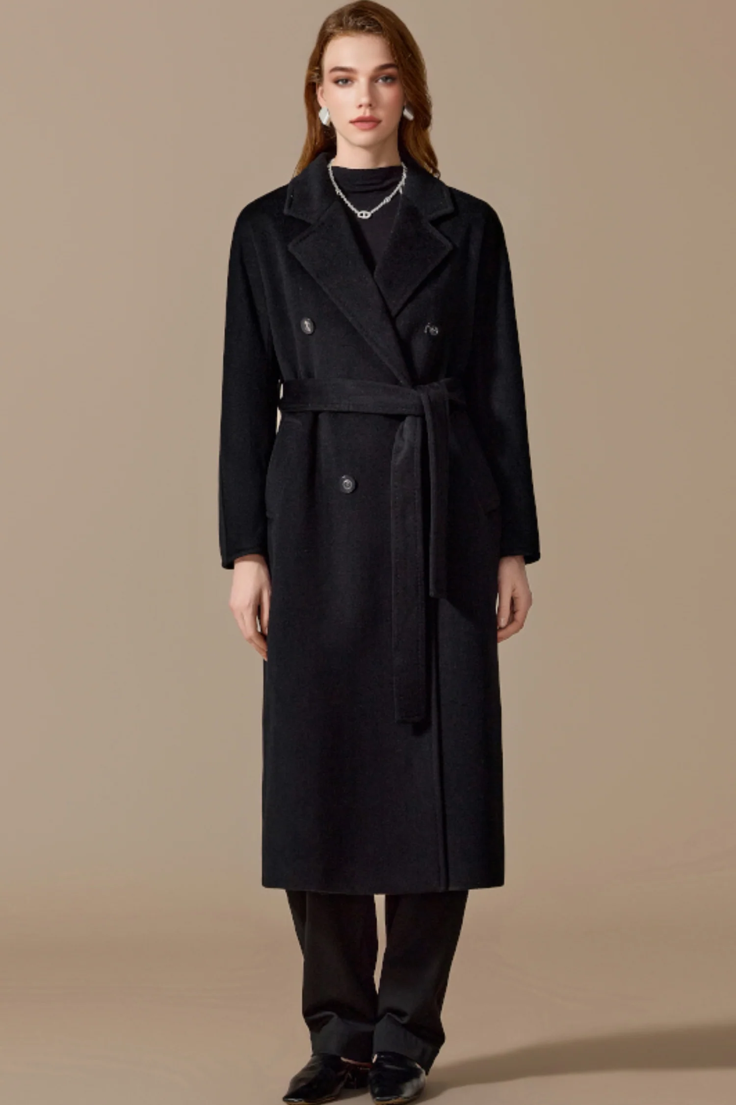 Classic Handcrafted Cashmere Double-Breasted Belted Maxi Coat