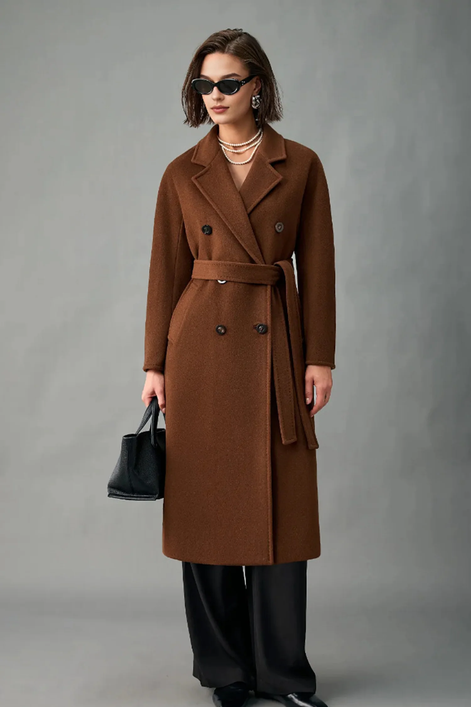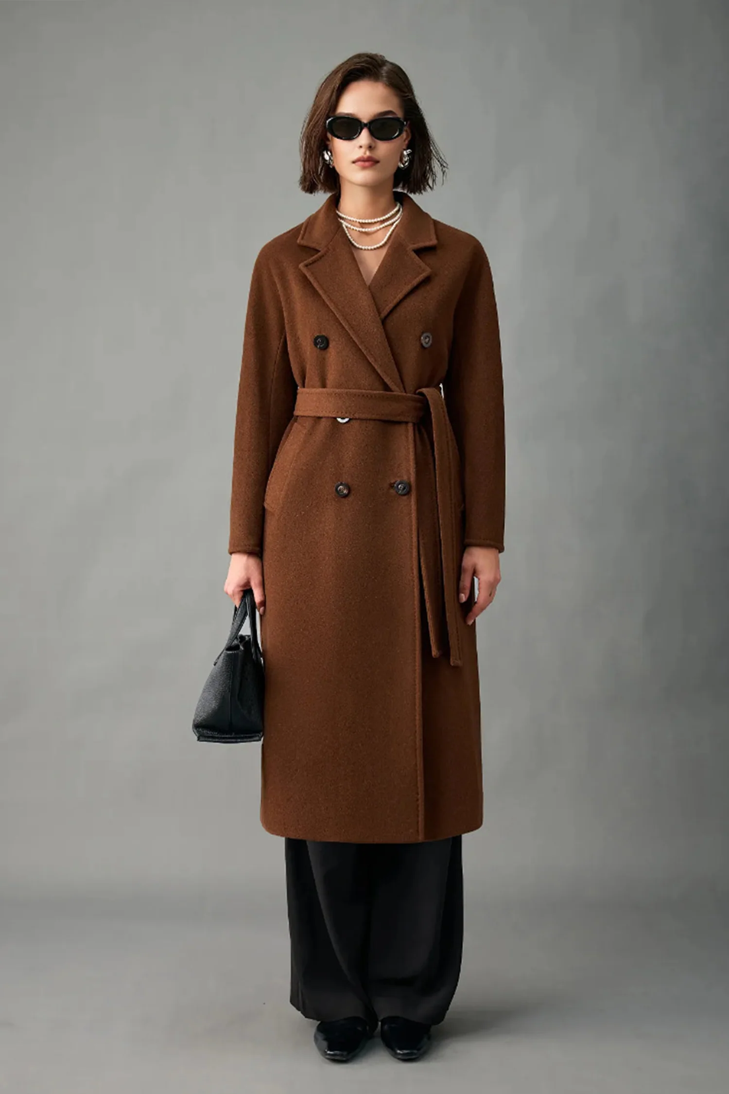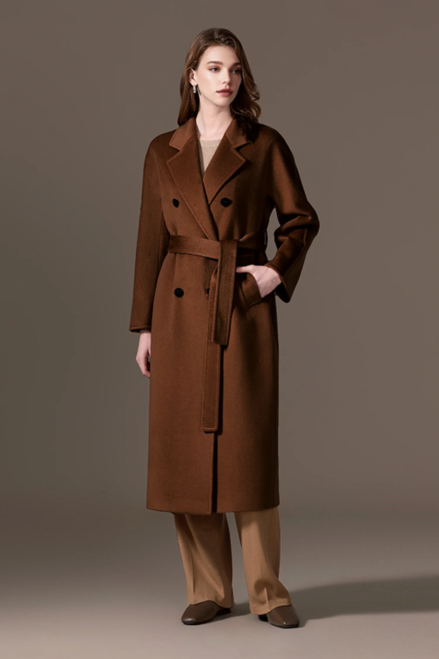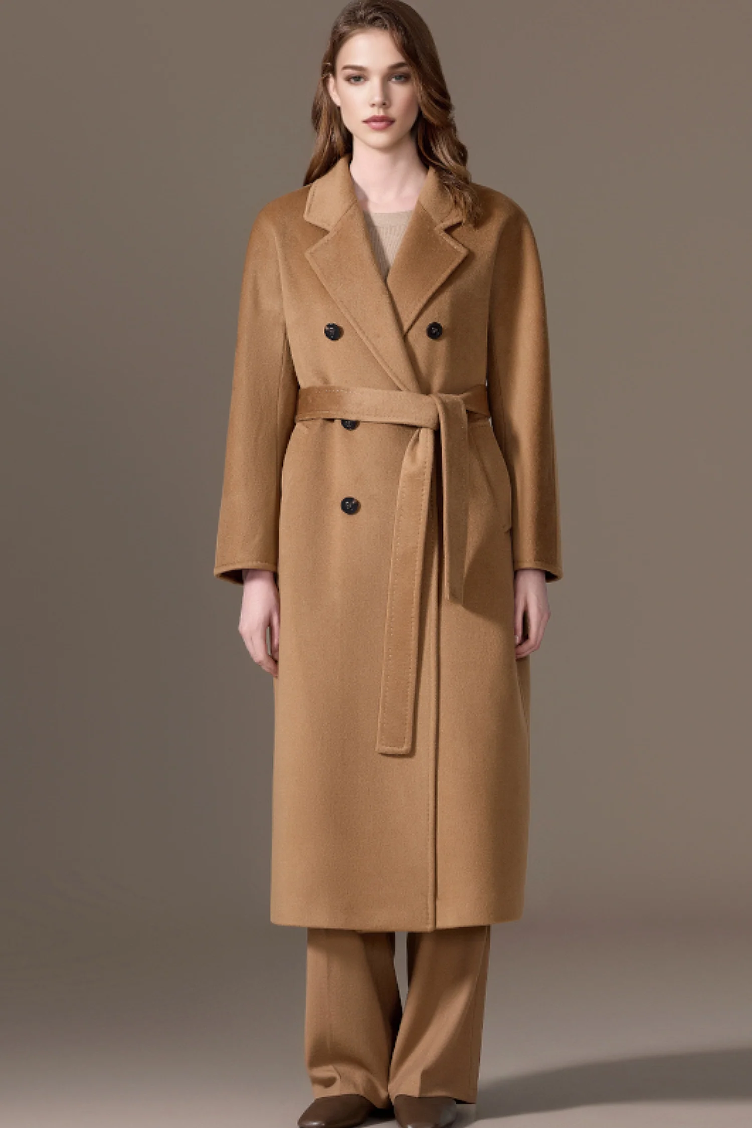Classic Handcrafted Cashmere Double-Breasted Belted Maxi Coat