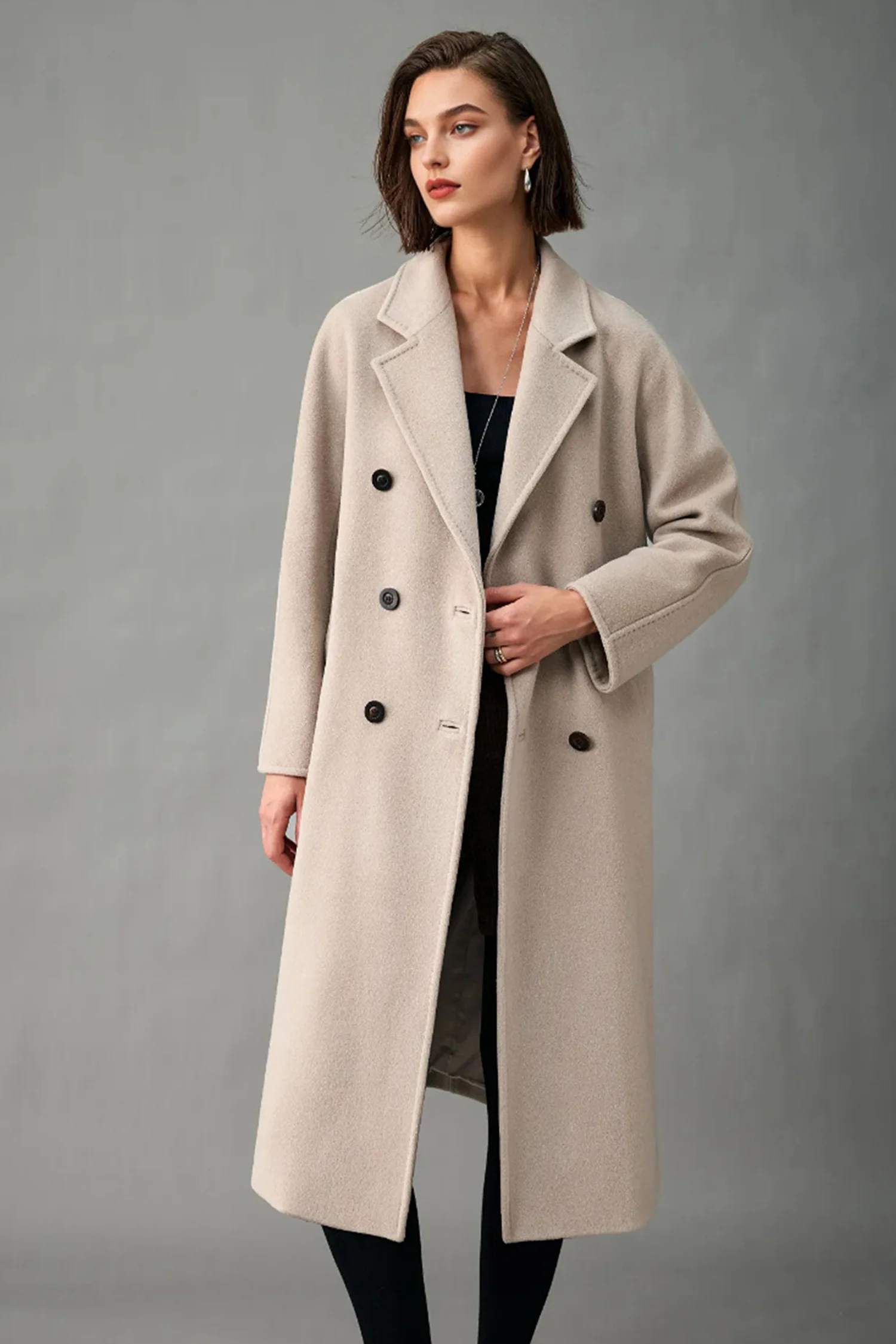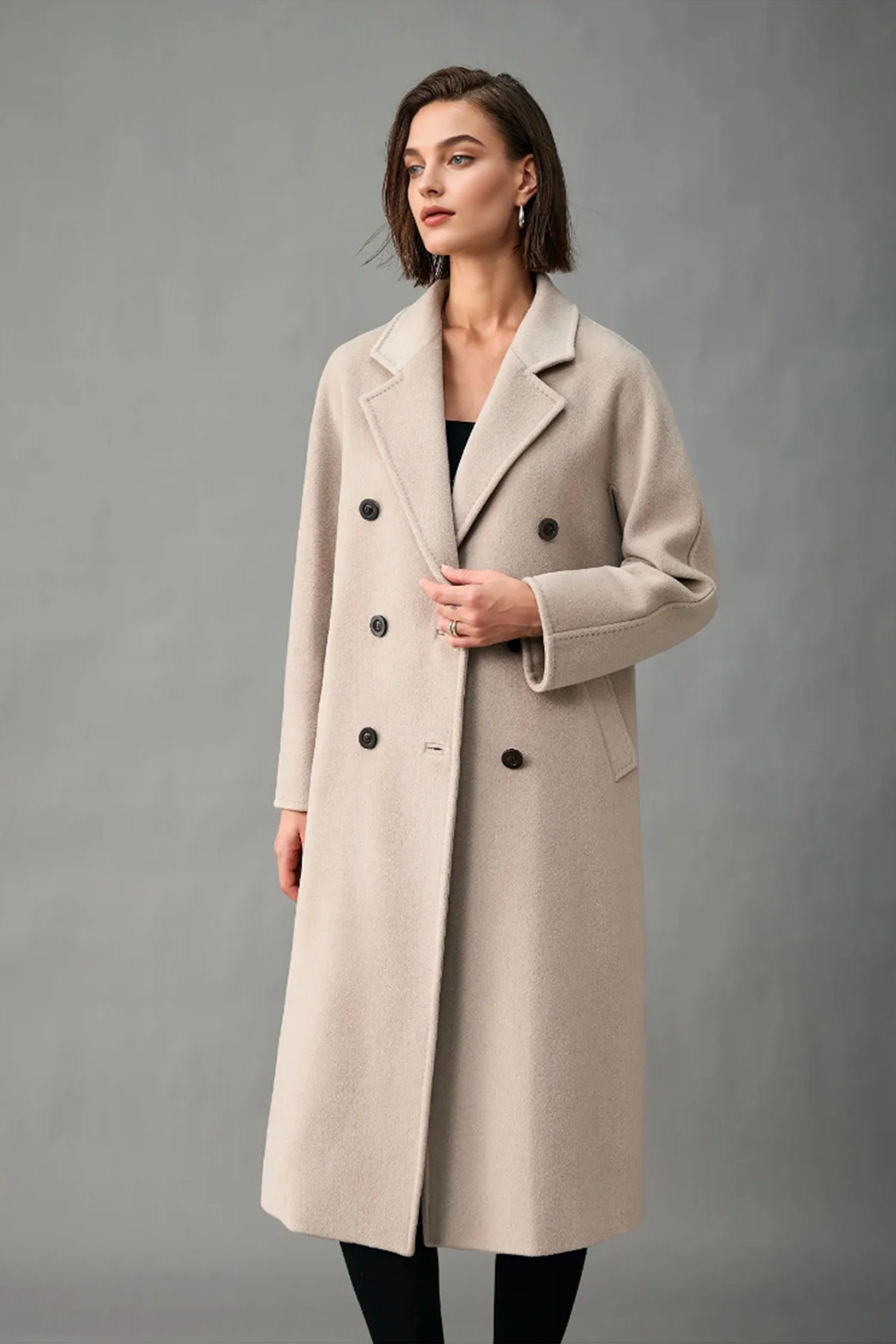 Classic Double Breasted Double Faced Long Yak-Cashmere Coat