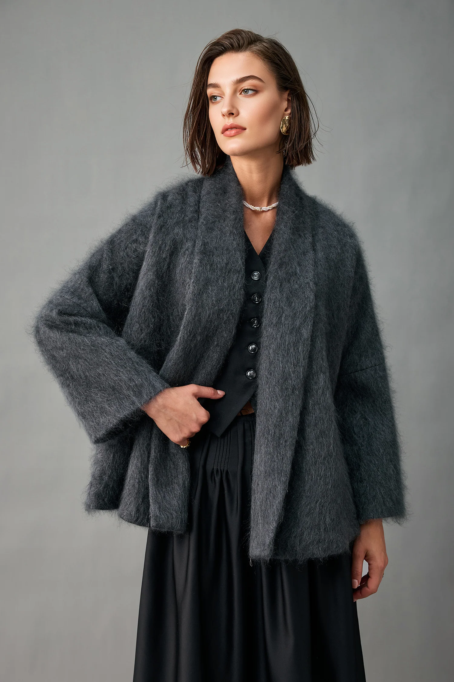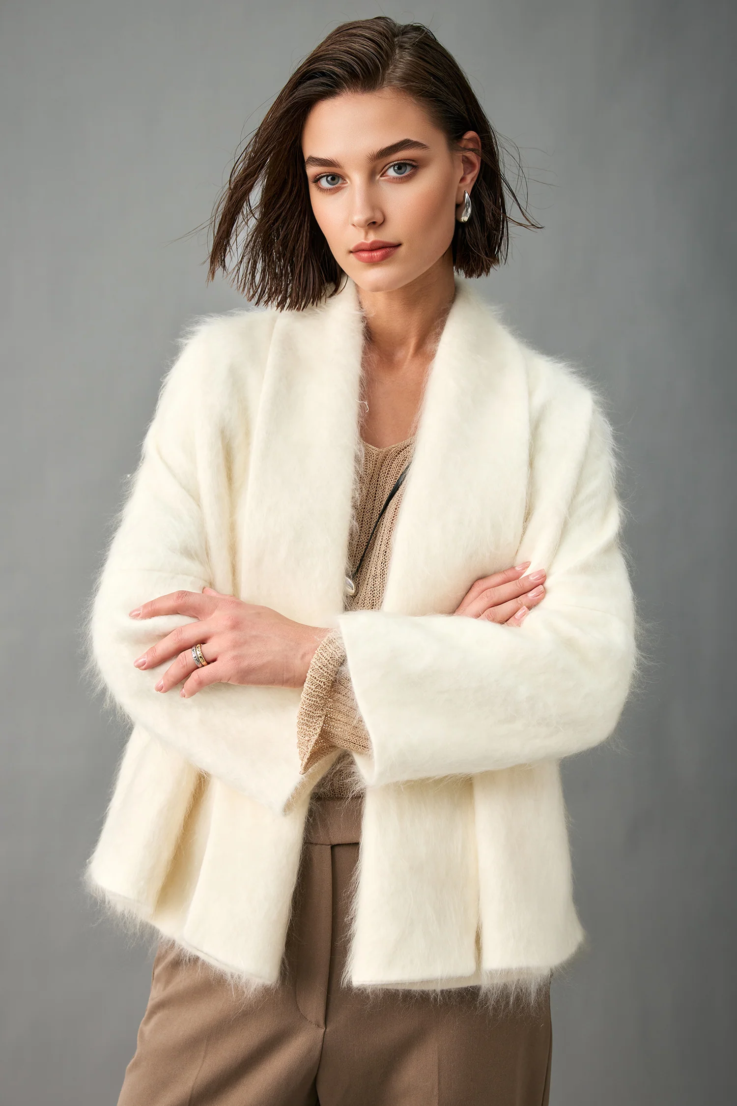 Ultrafine Handcrafted Bruhshed Cashmere Short Wrap Coat