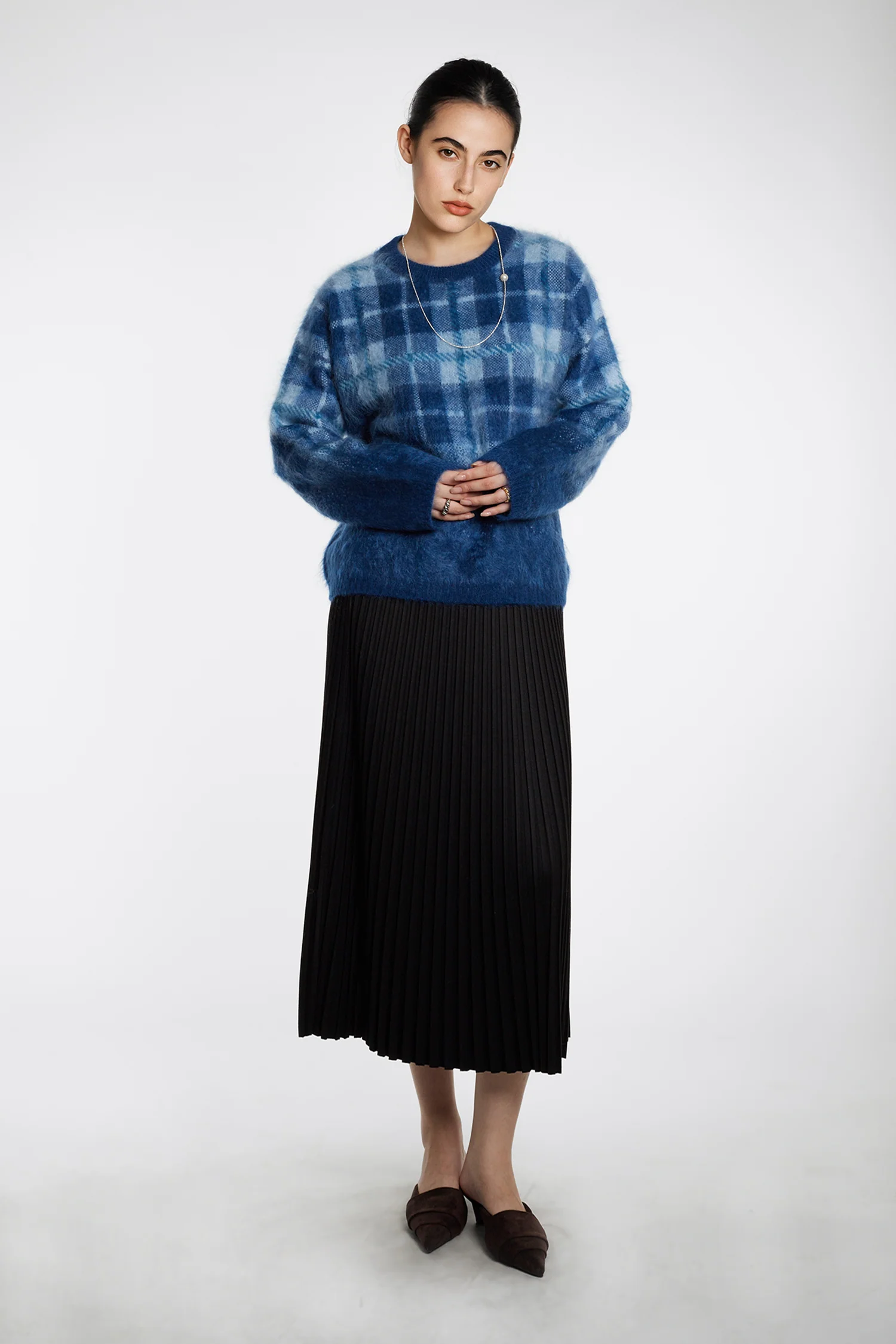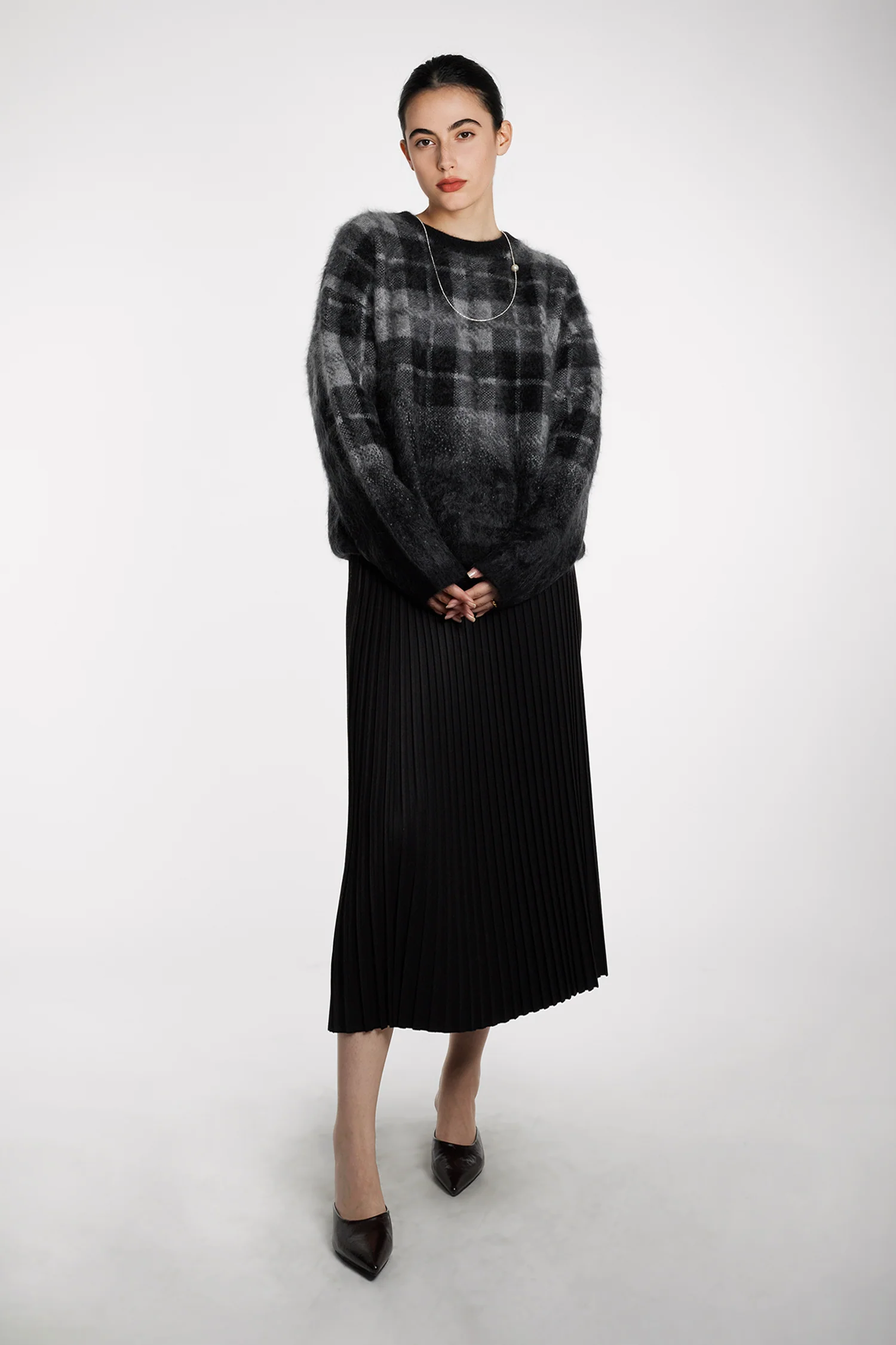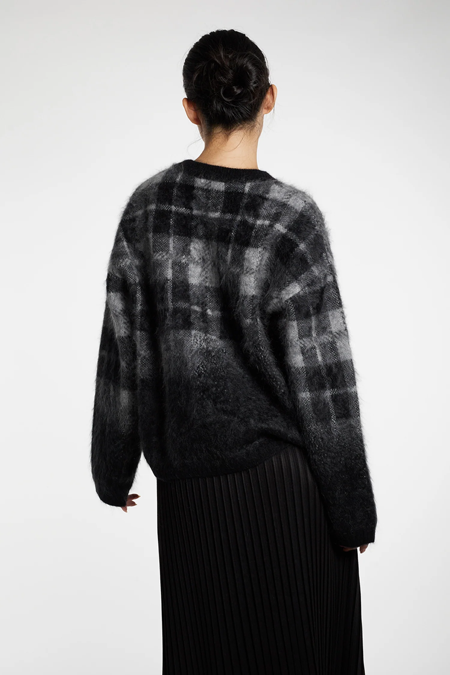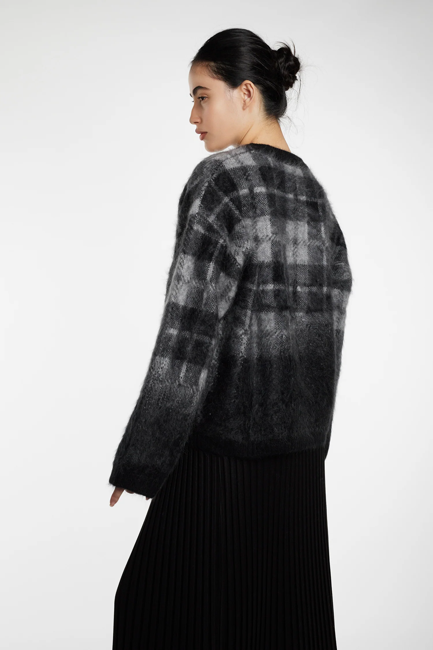 Fuzzy Brushed Cashmere Plaid Pullover Sweater