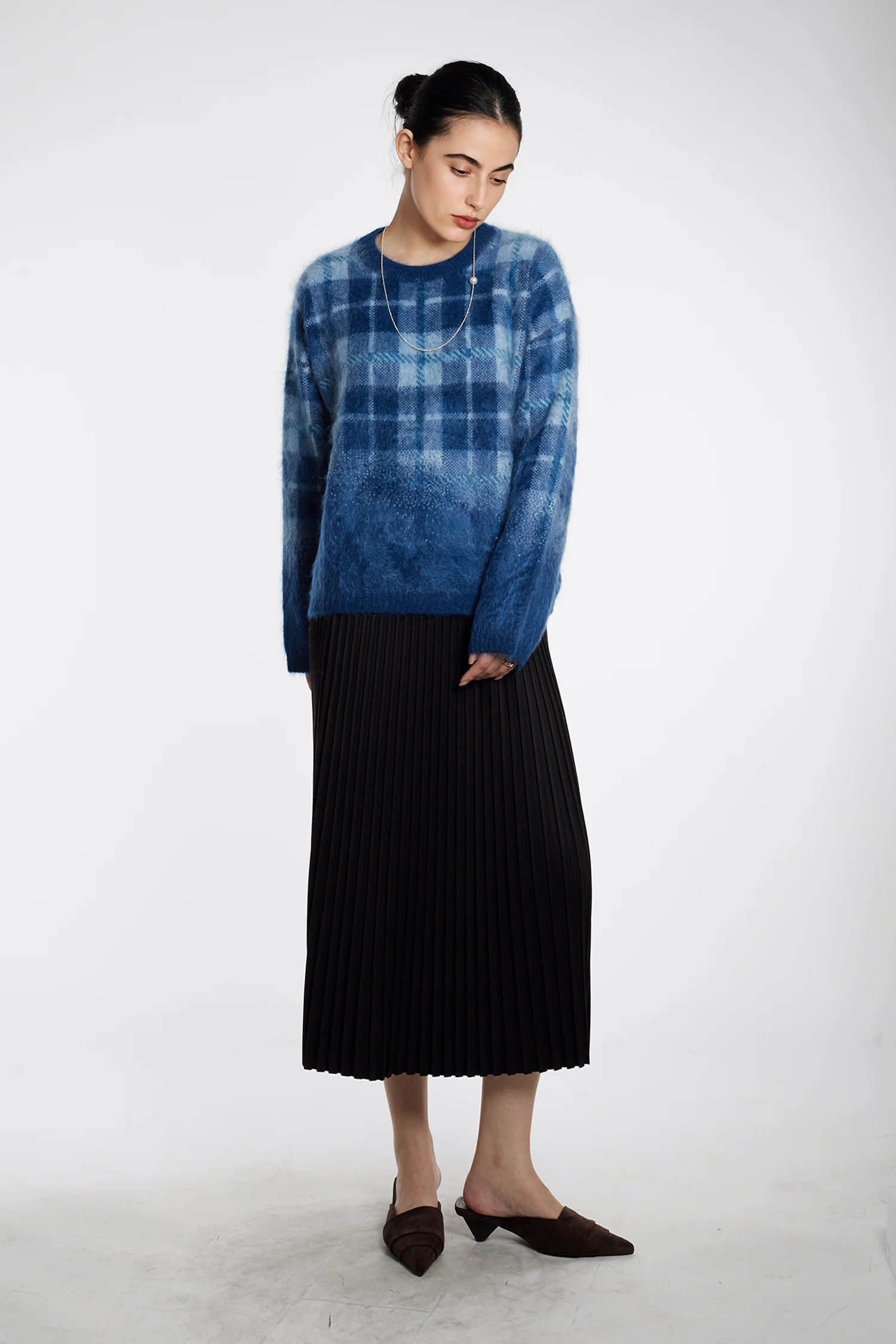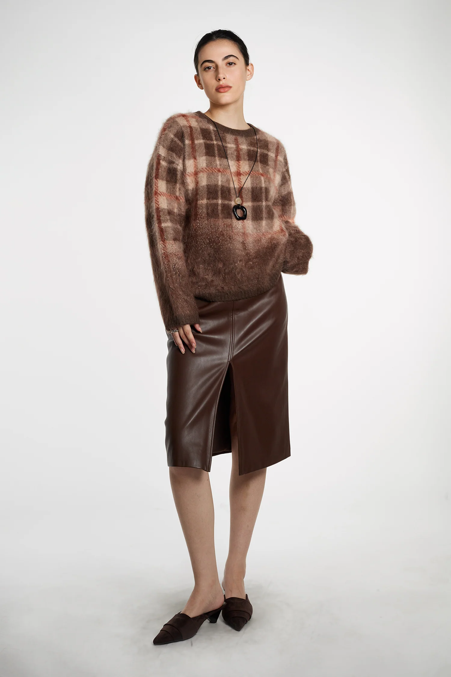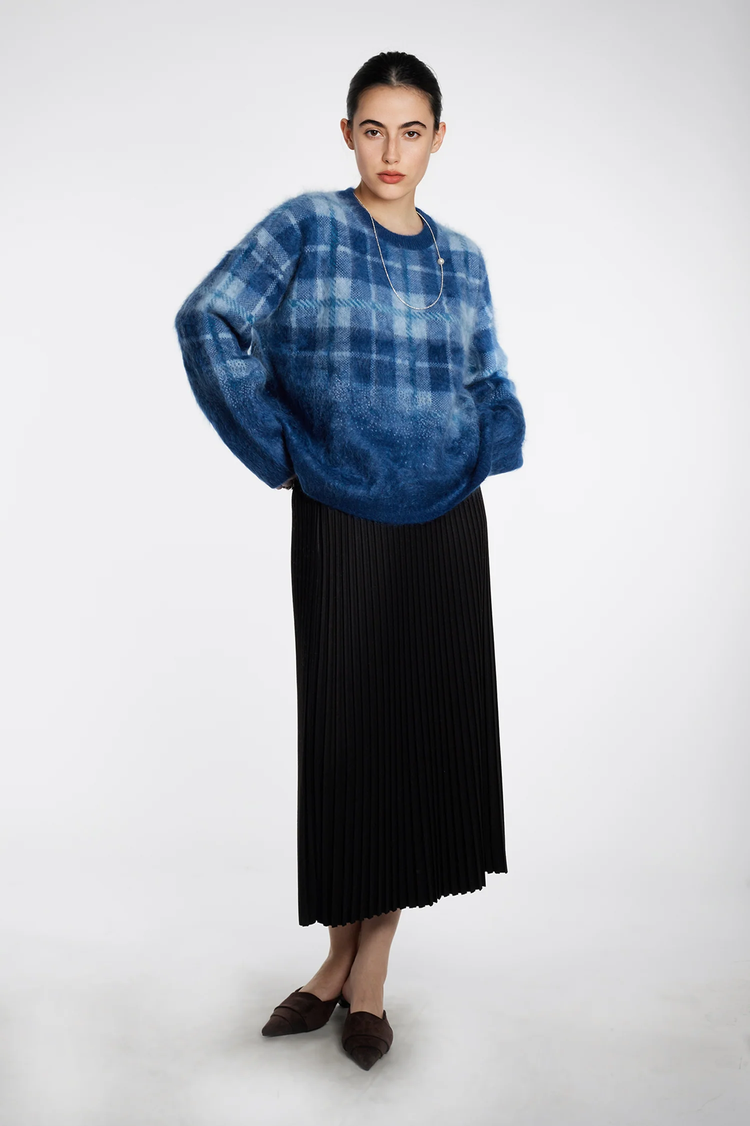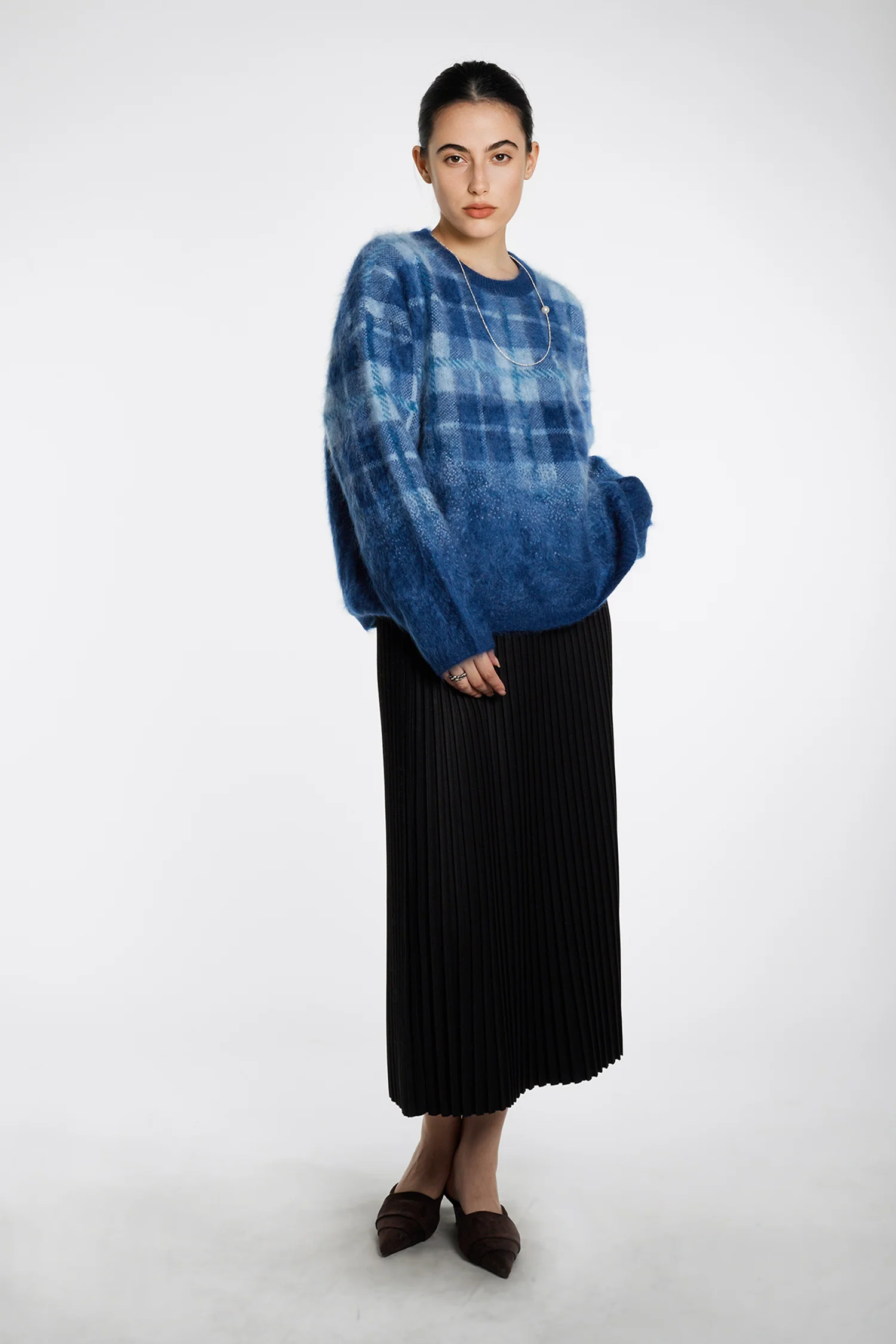 Fuzzy Brushed Cashmere Plaid Pullover Sweater