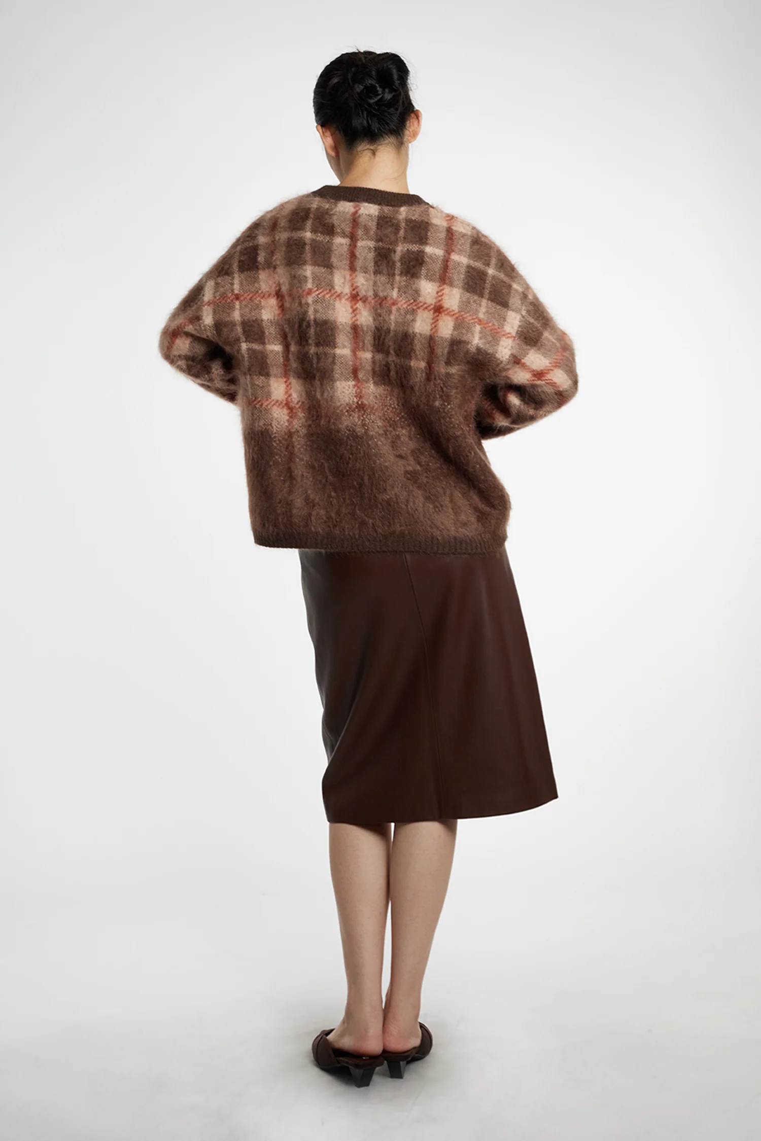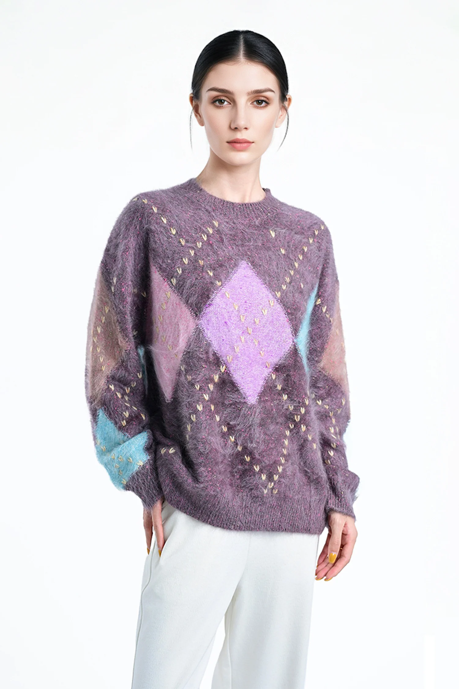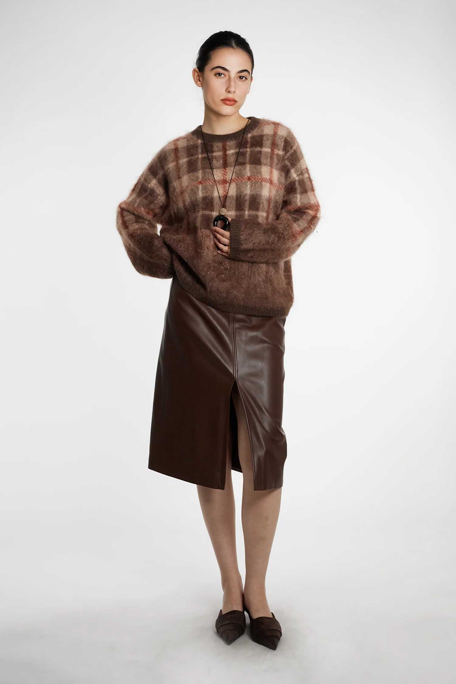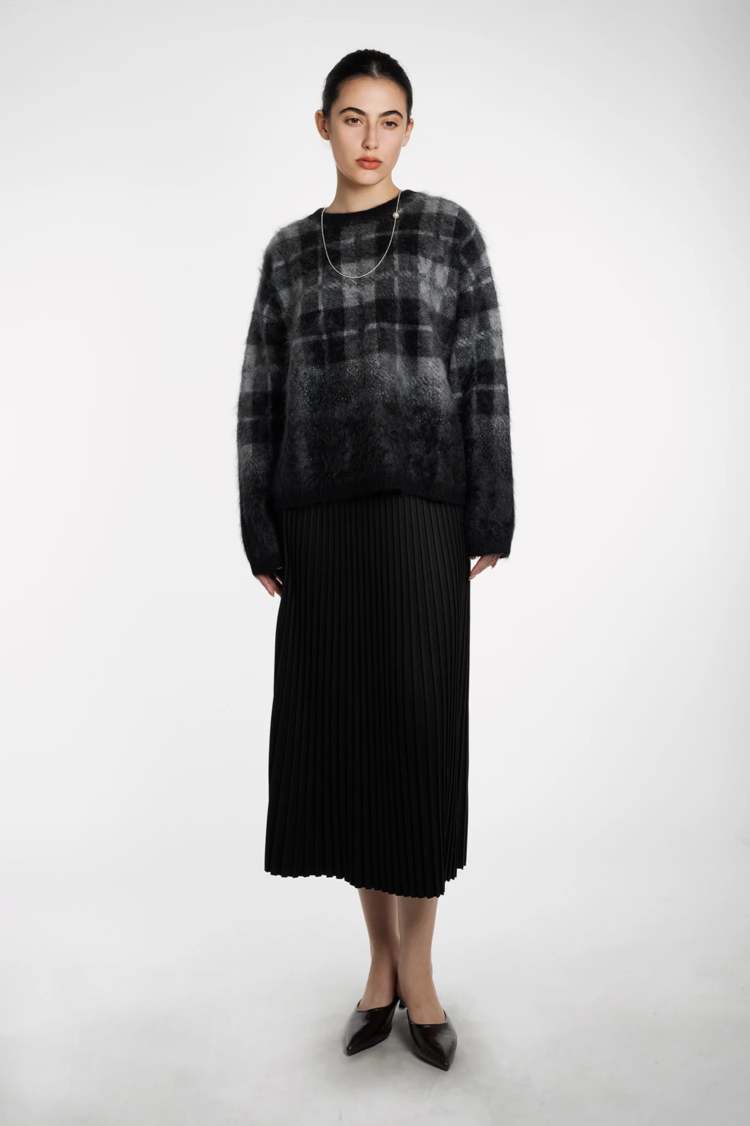 Fuzzy Brushed Cashmere Plaid Pullover Sweater