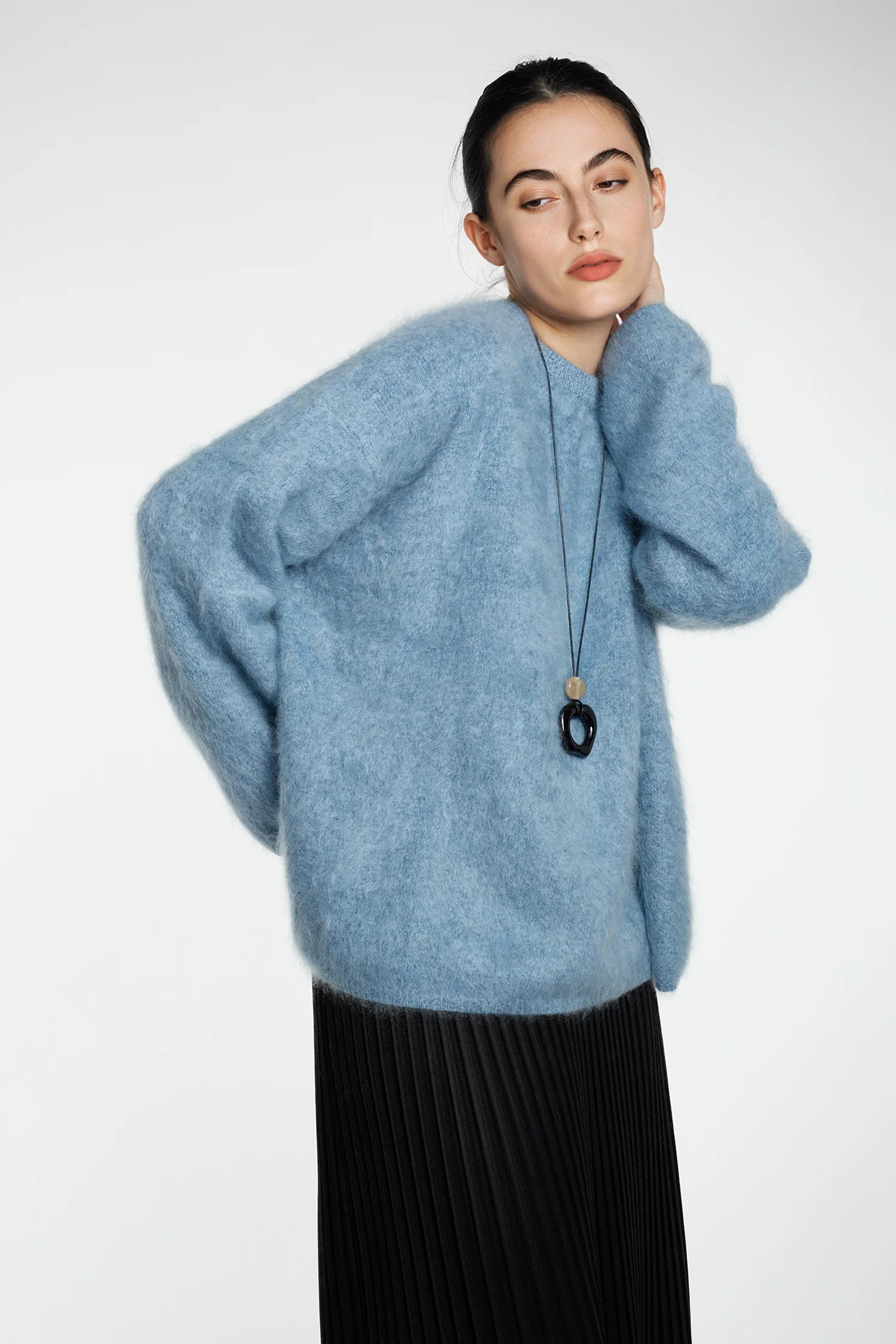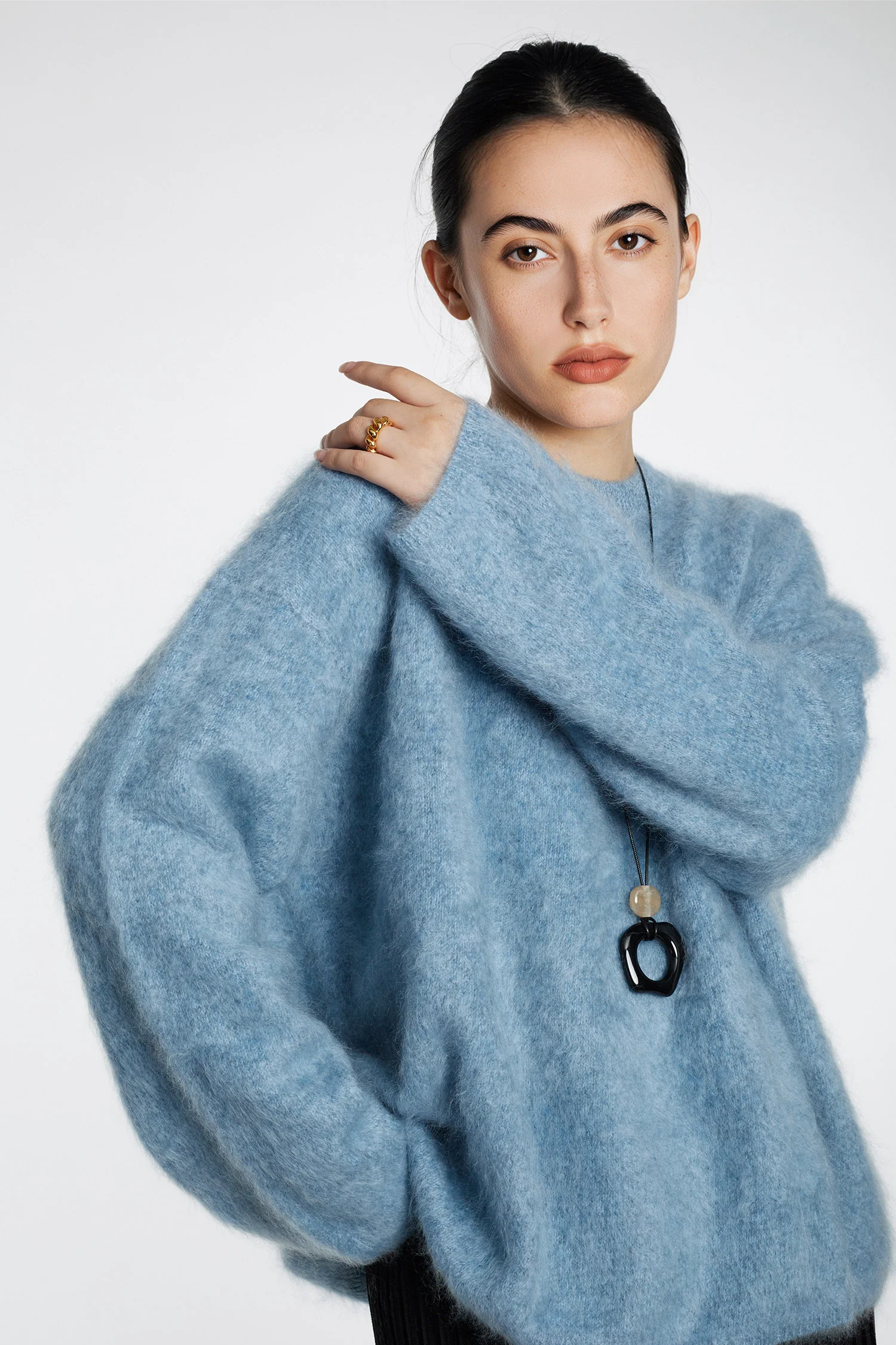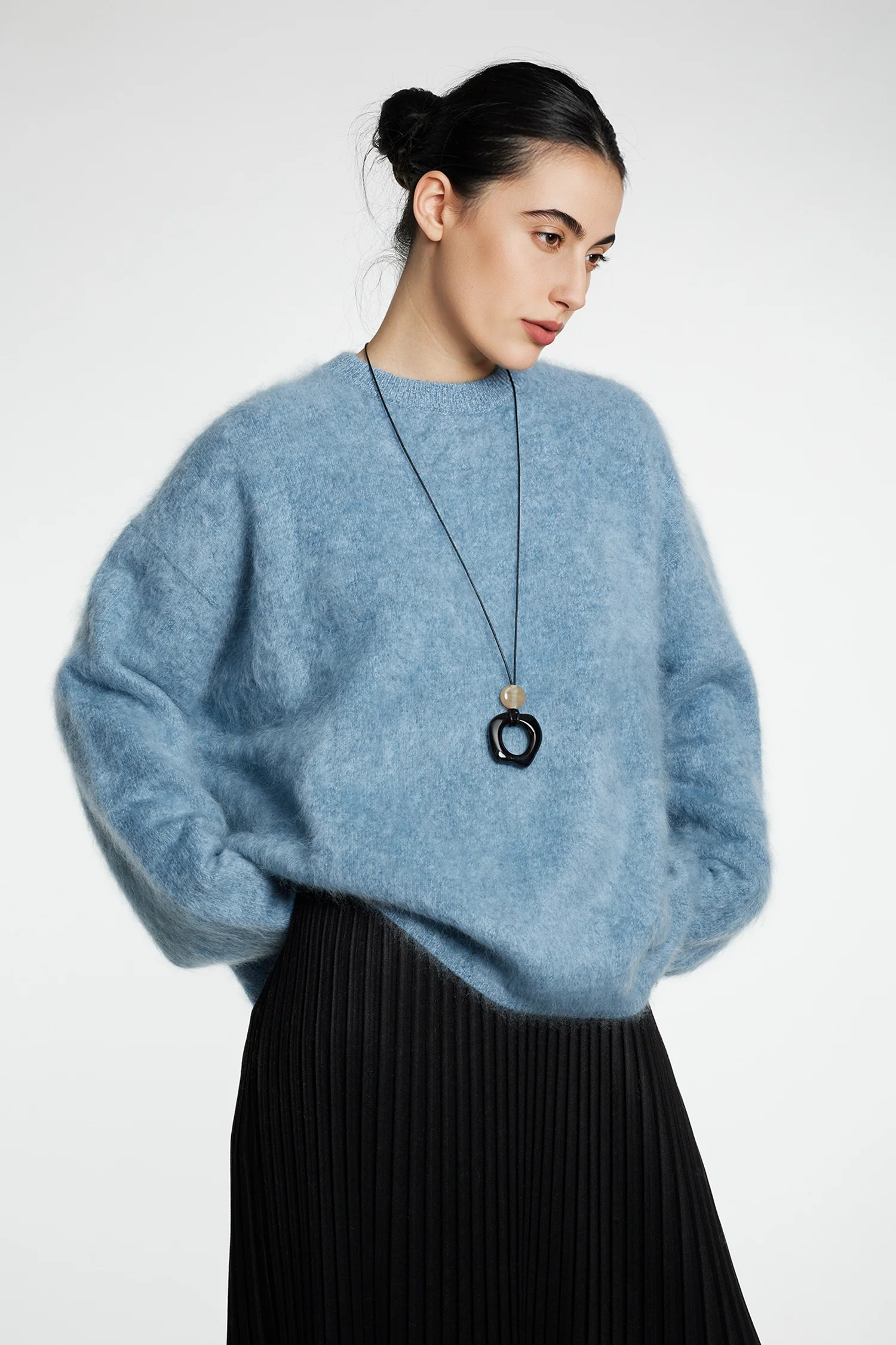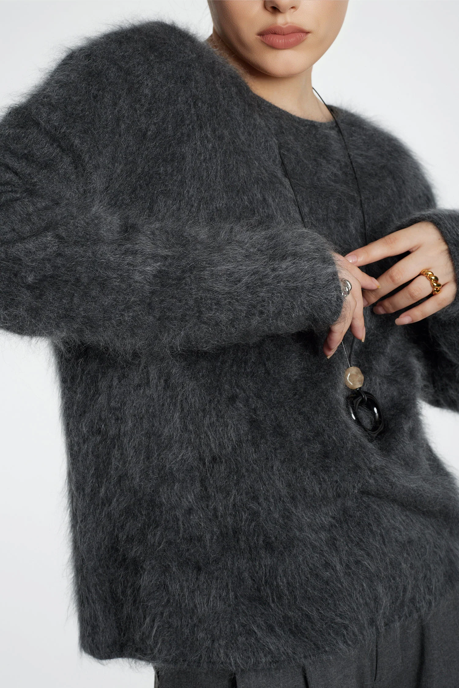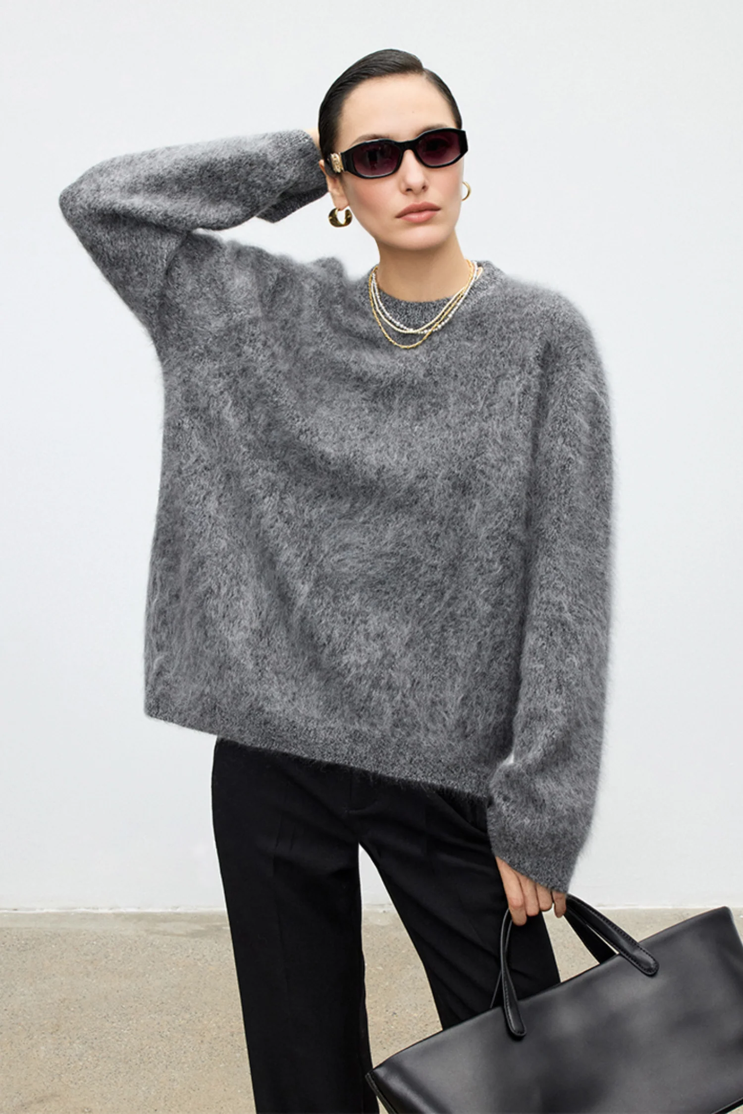Fuzzy Oversized Brushed Cashmere Crewneck Sweater