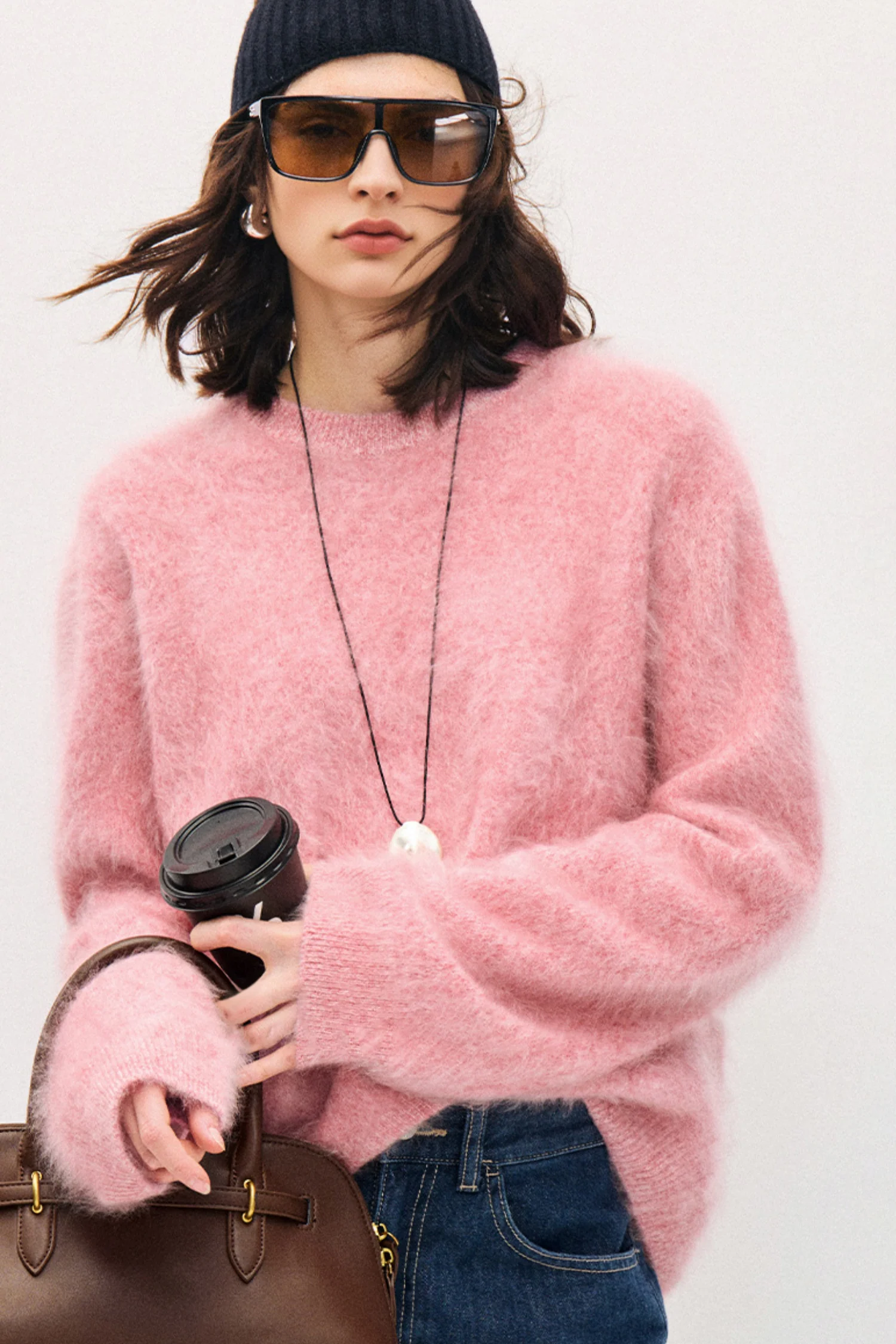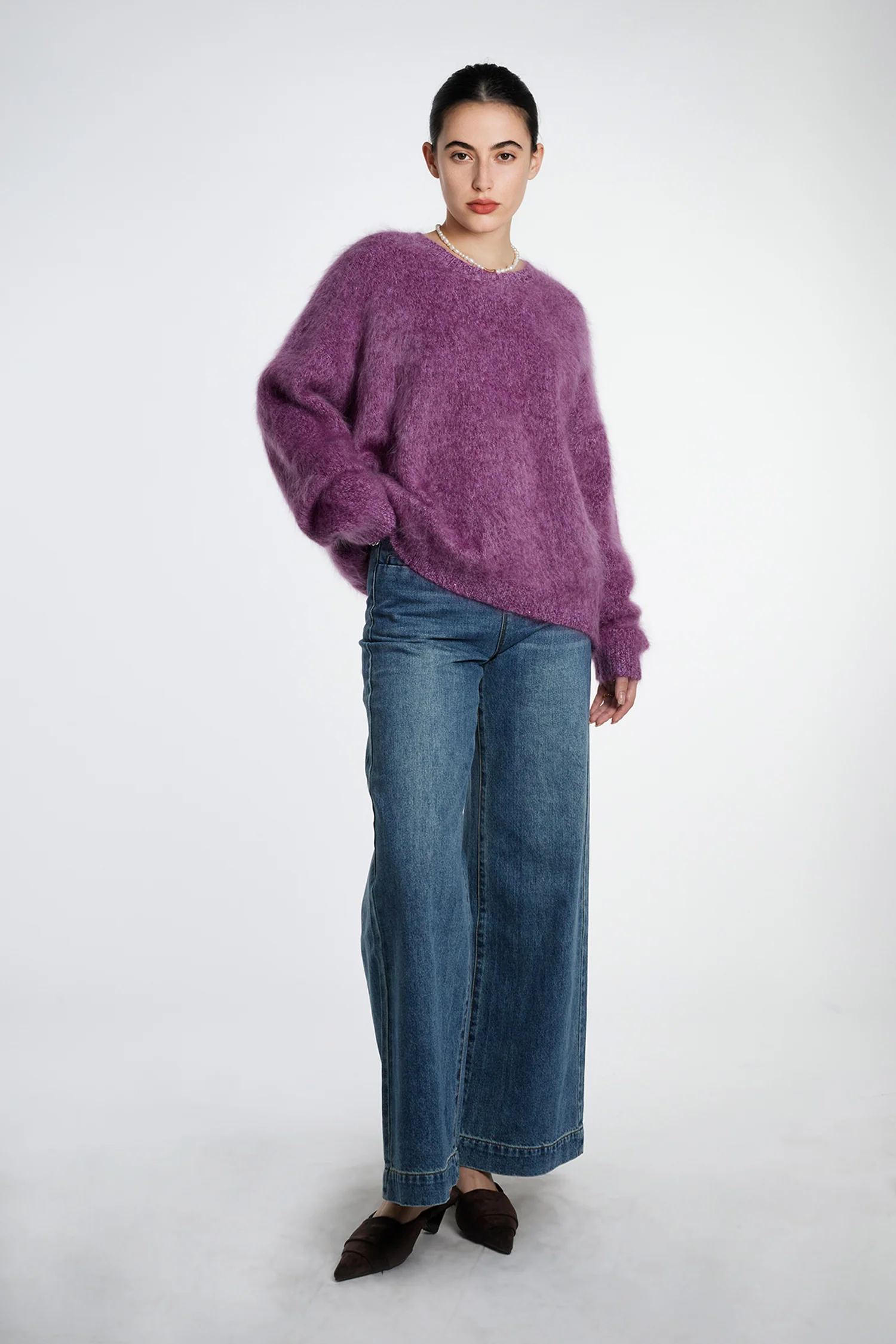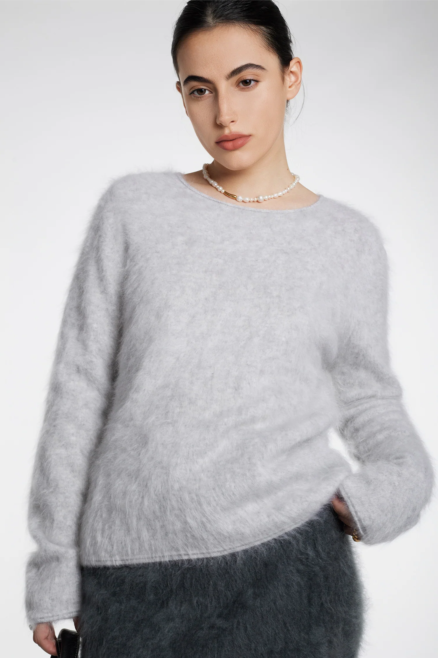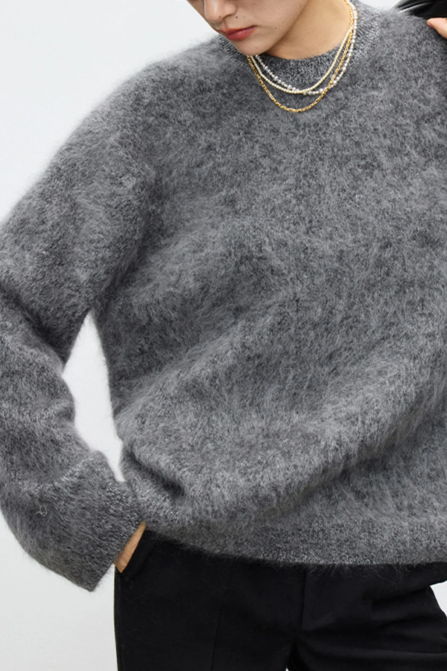 Fuzzy Oversized Brushed Cashmere Crewneck Sweater