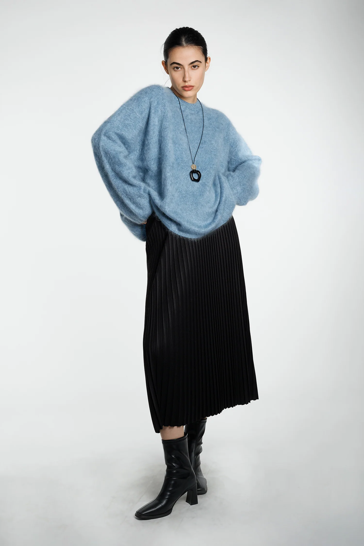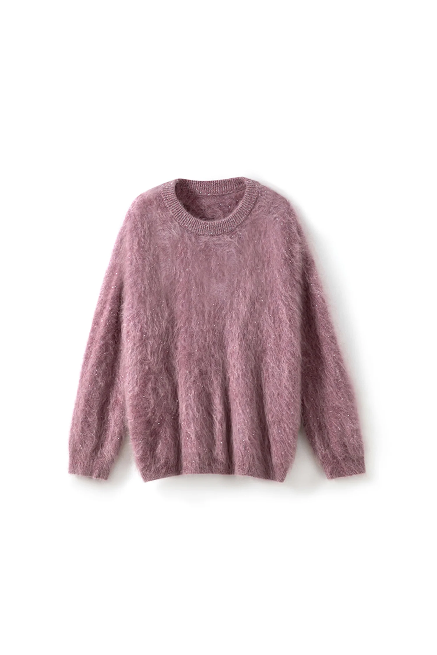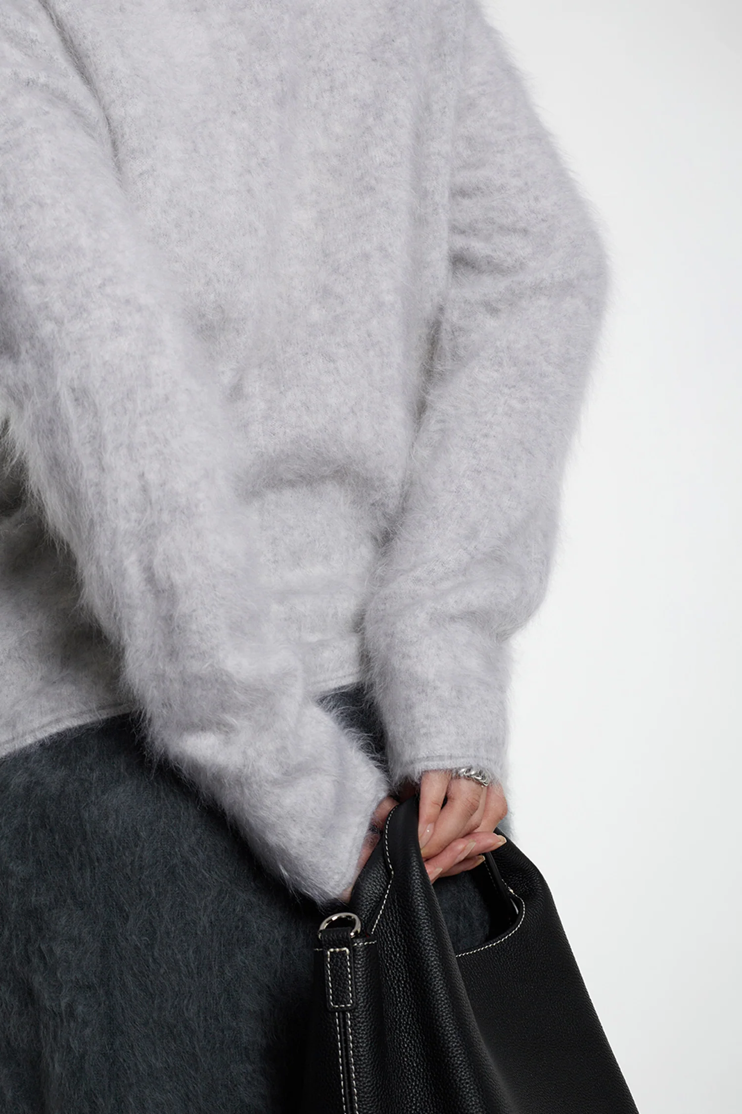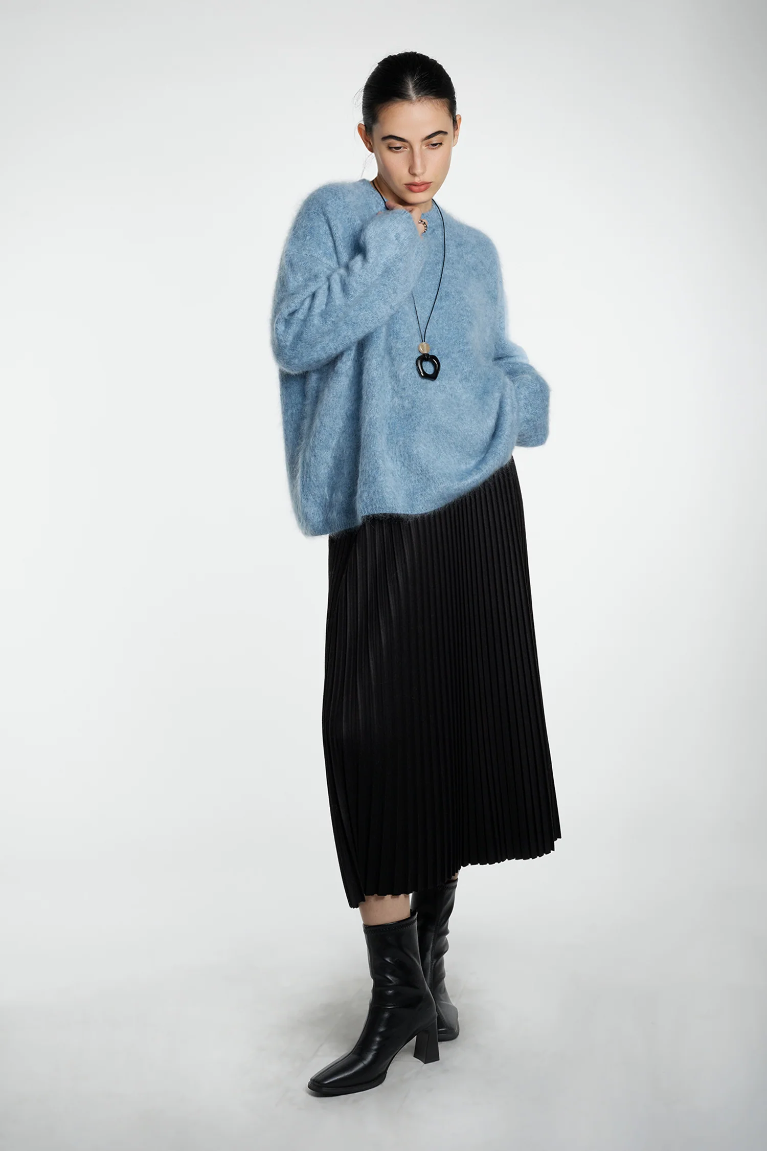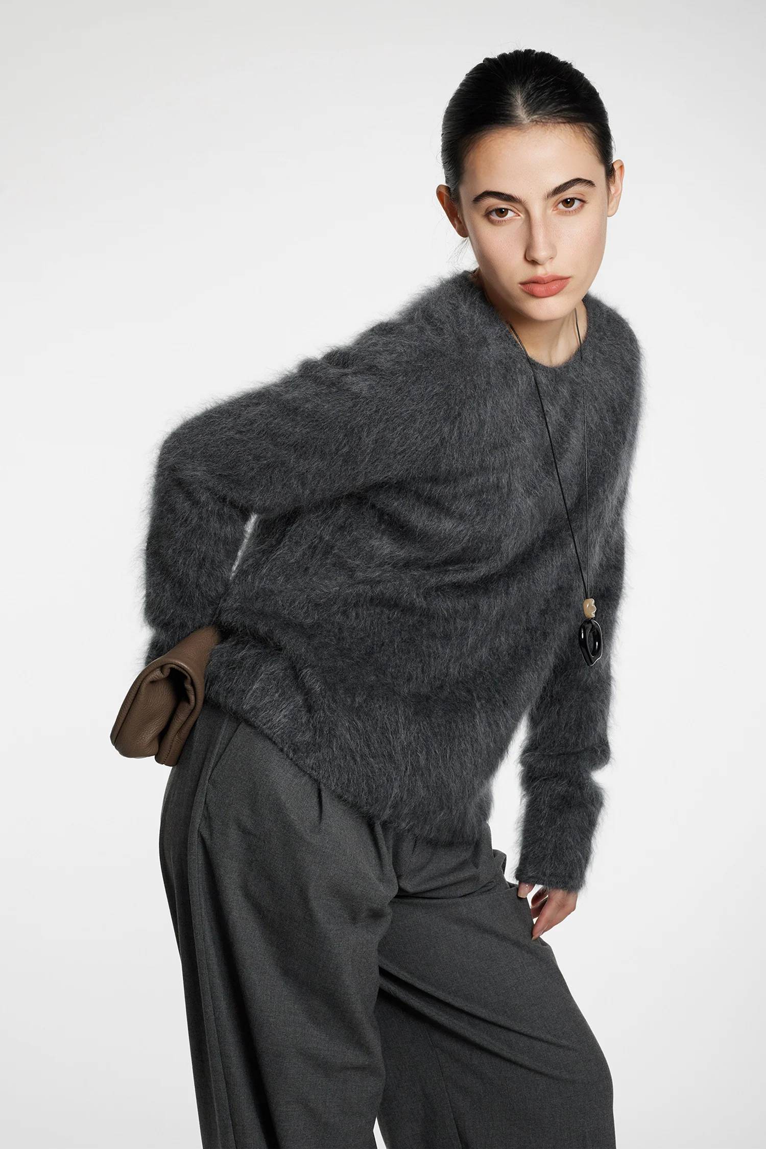 Fuzzy Oversized Brushed Cashmere Crewneck Sweater