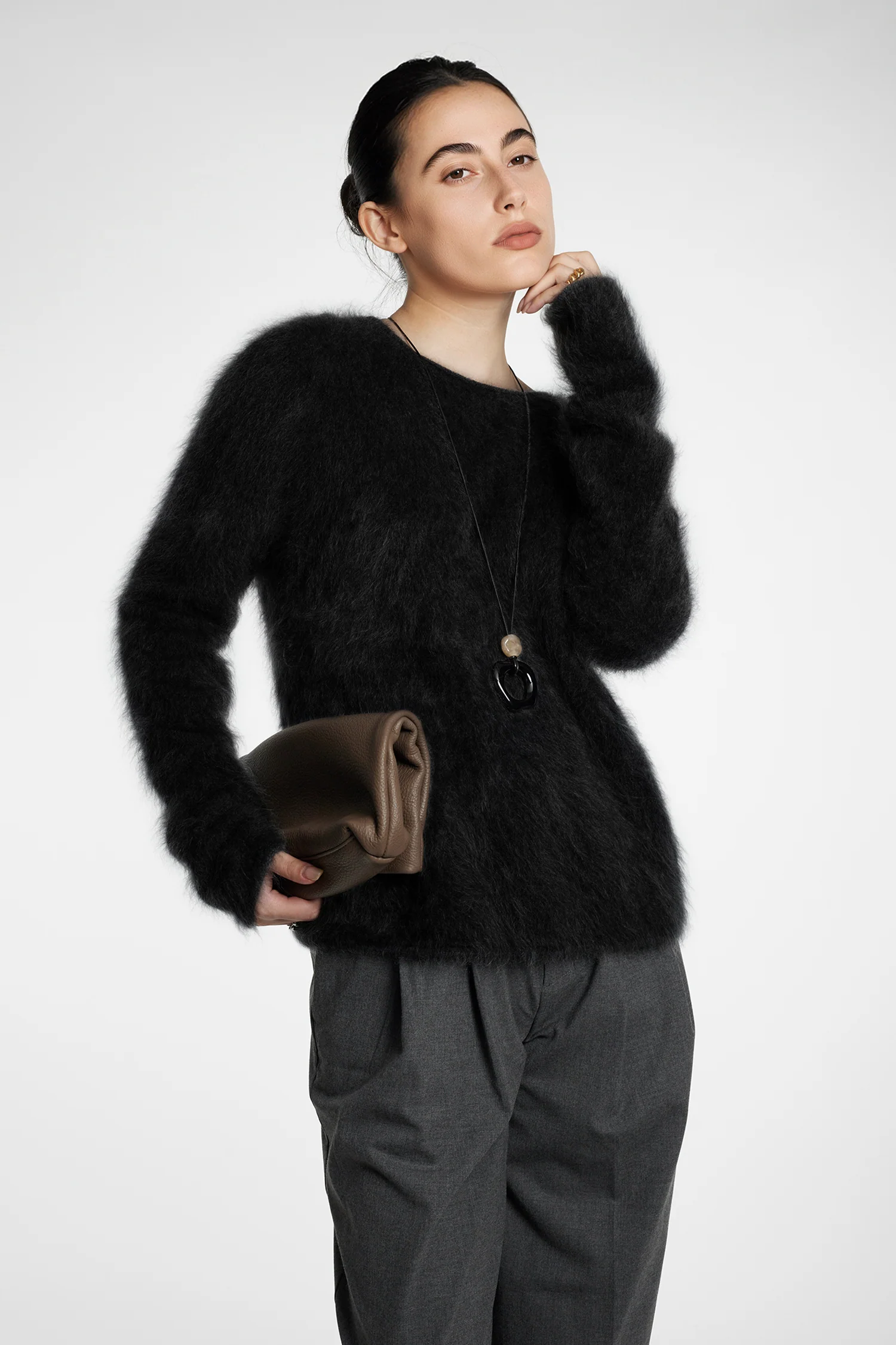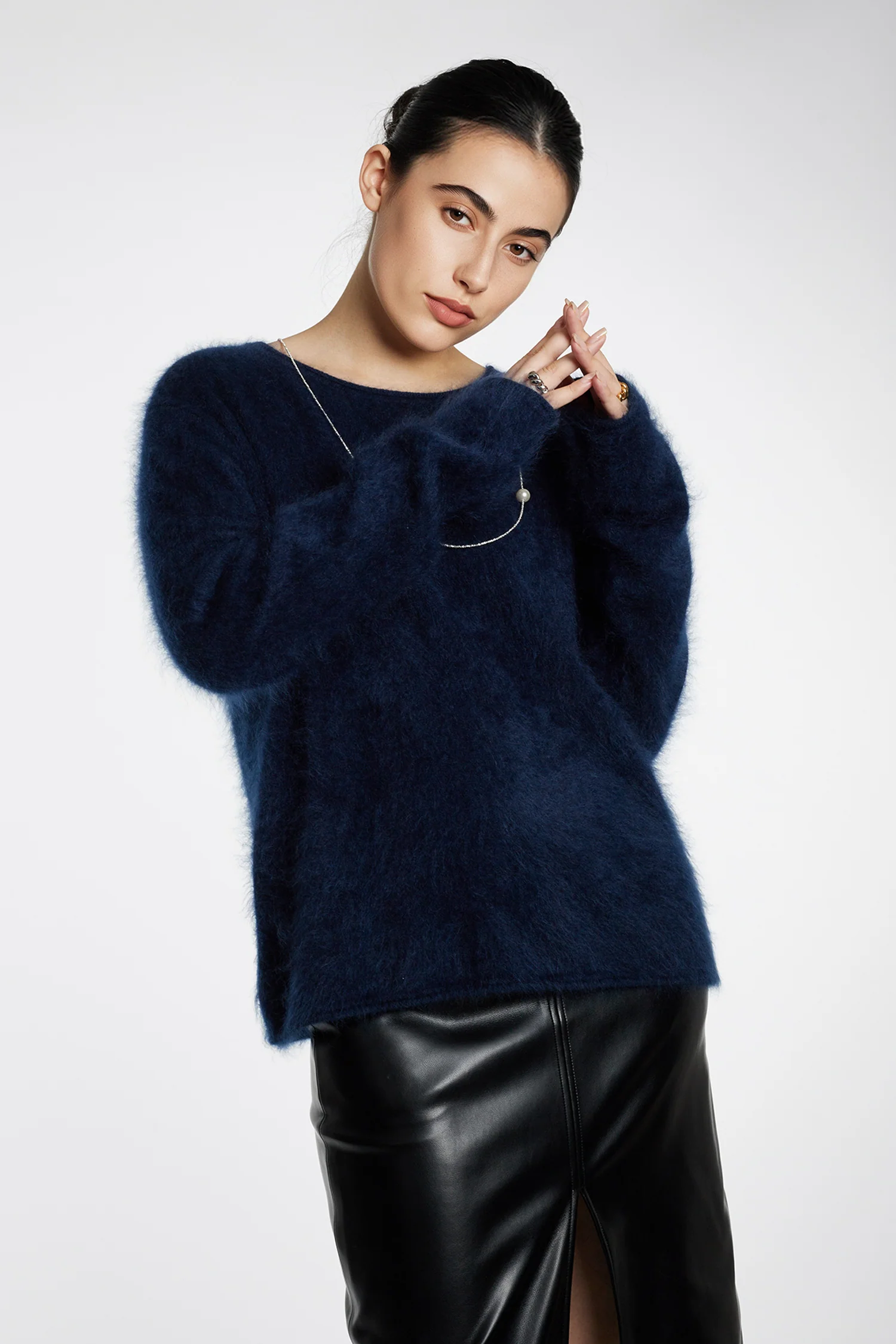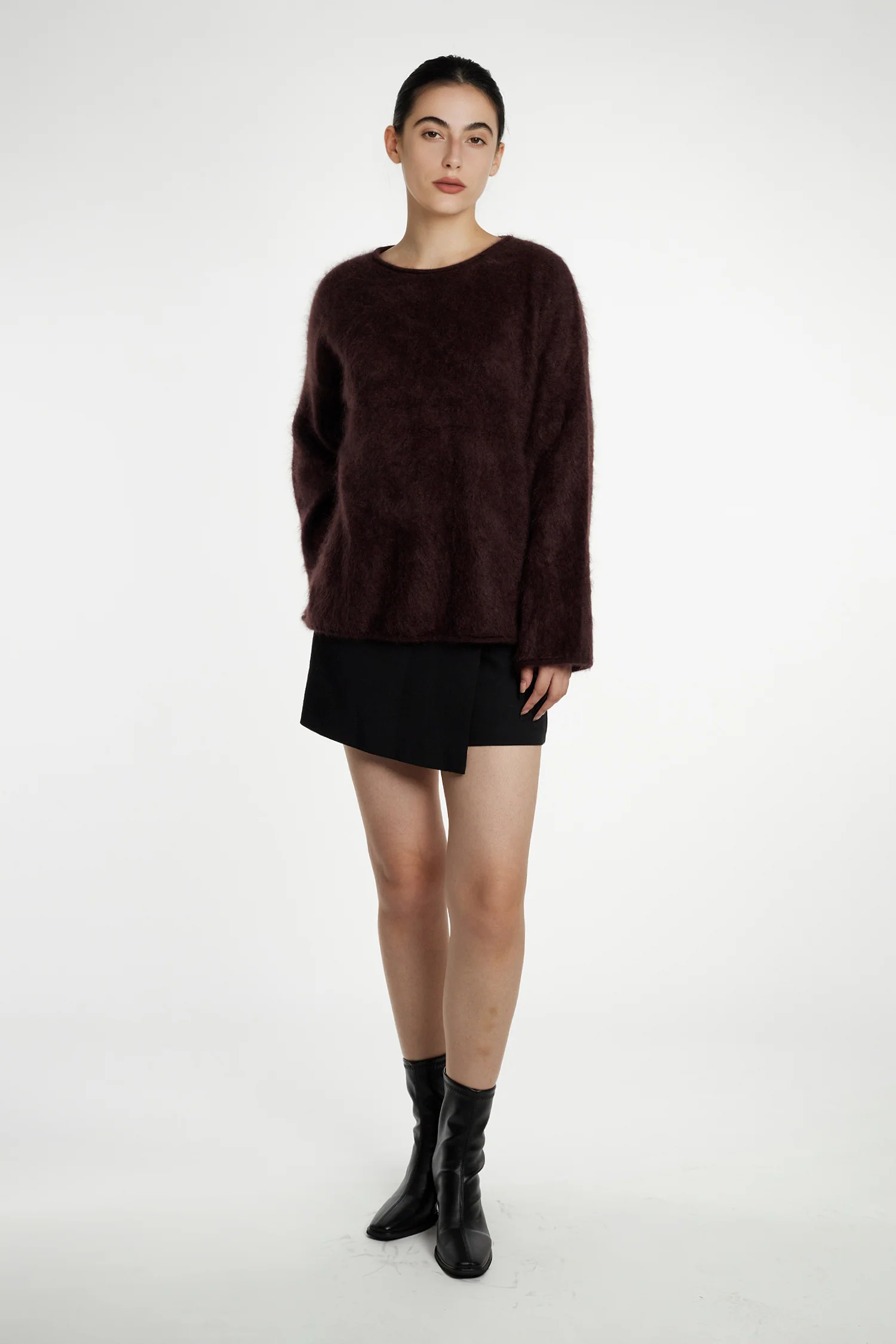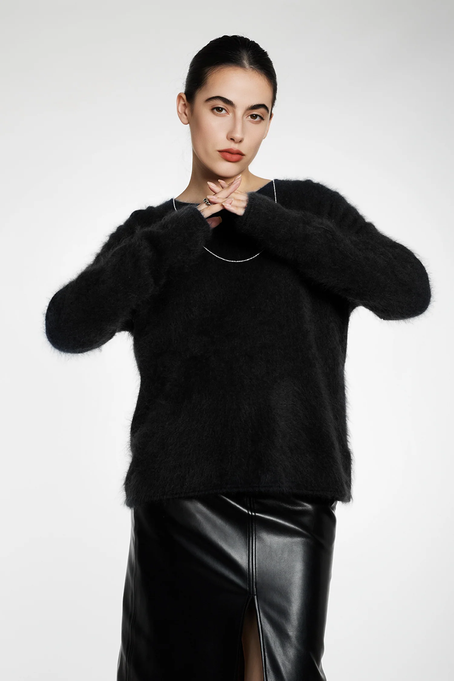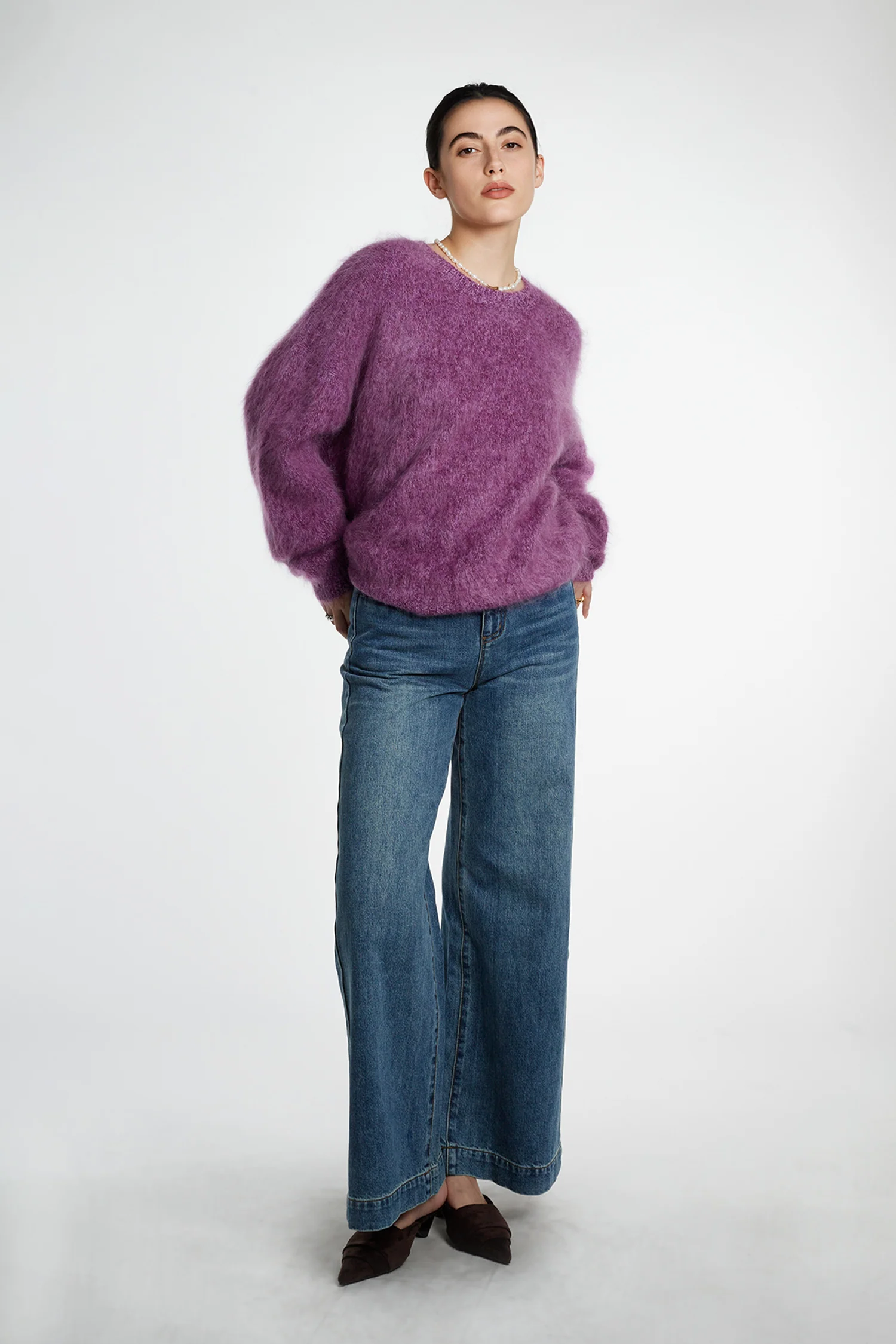 Fuzzy Oversized Brushed Cashmere Crewneck Sweater