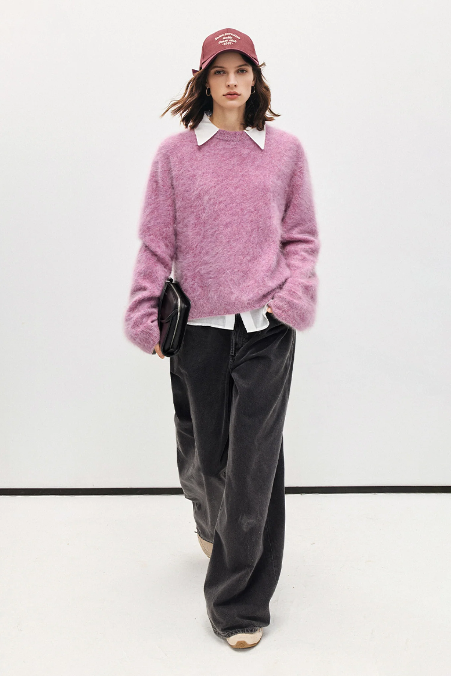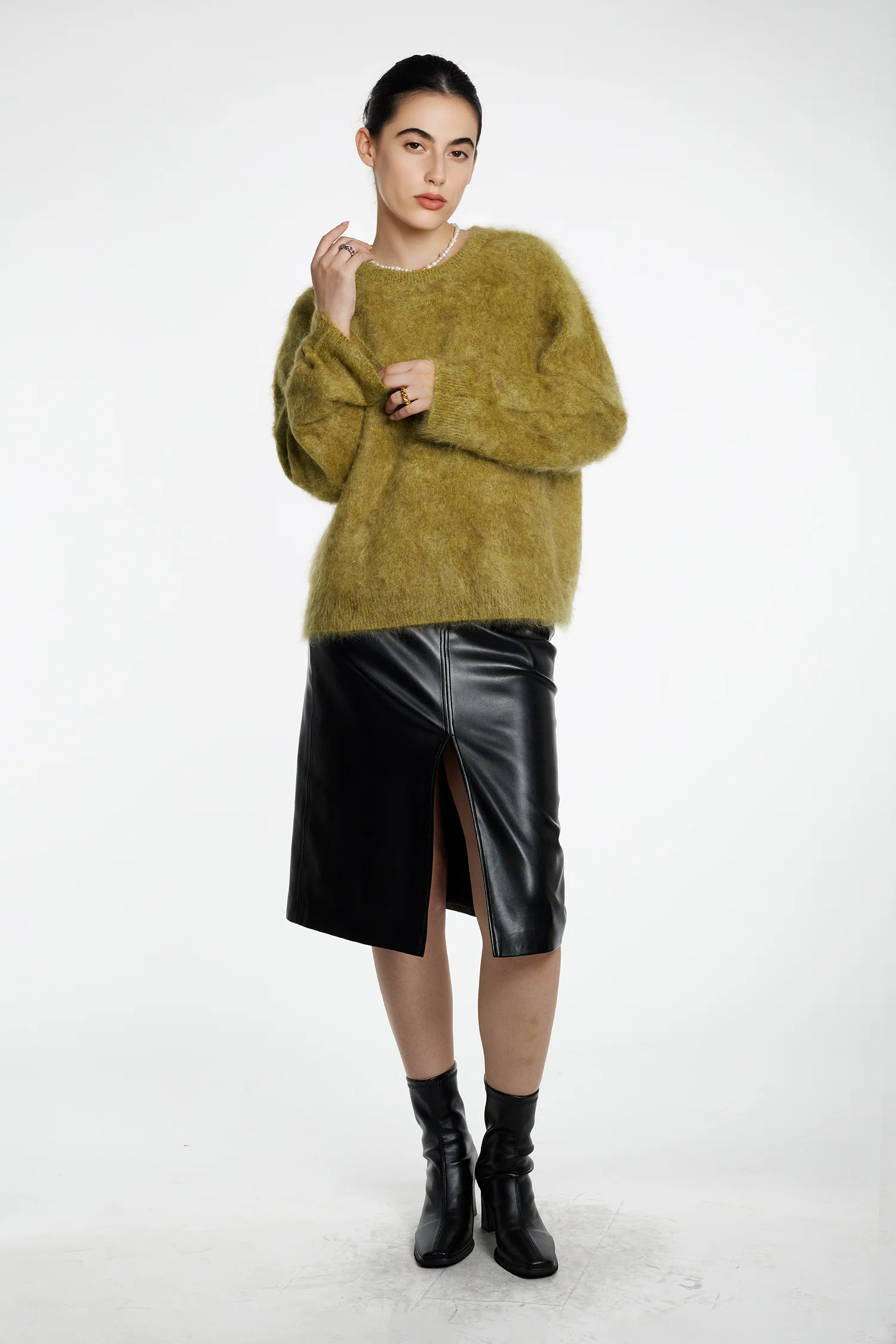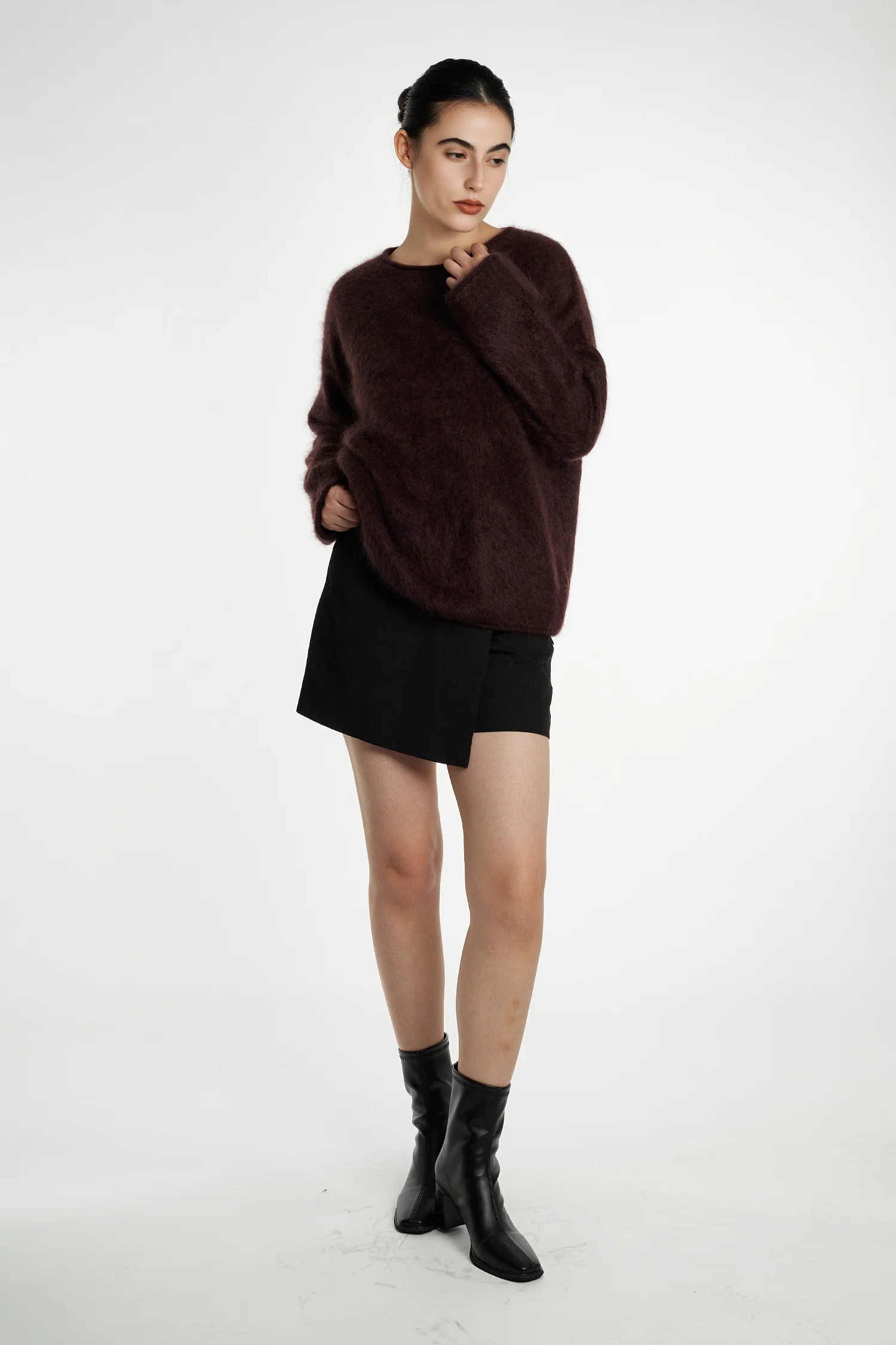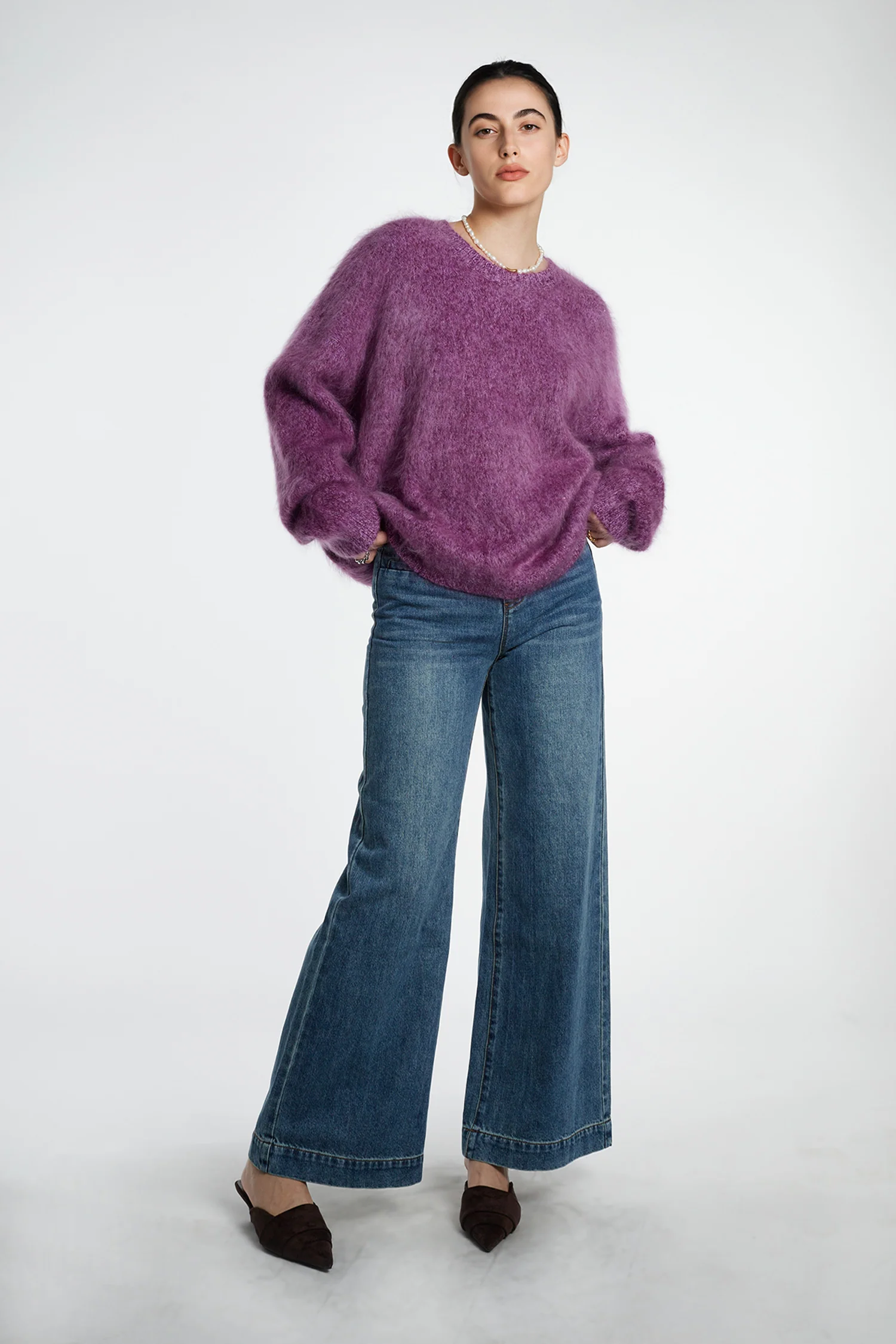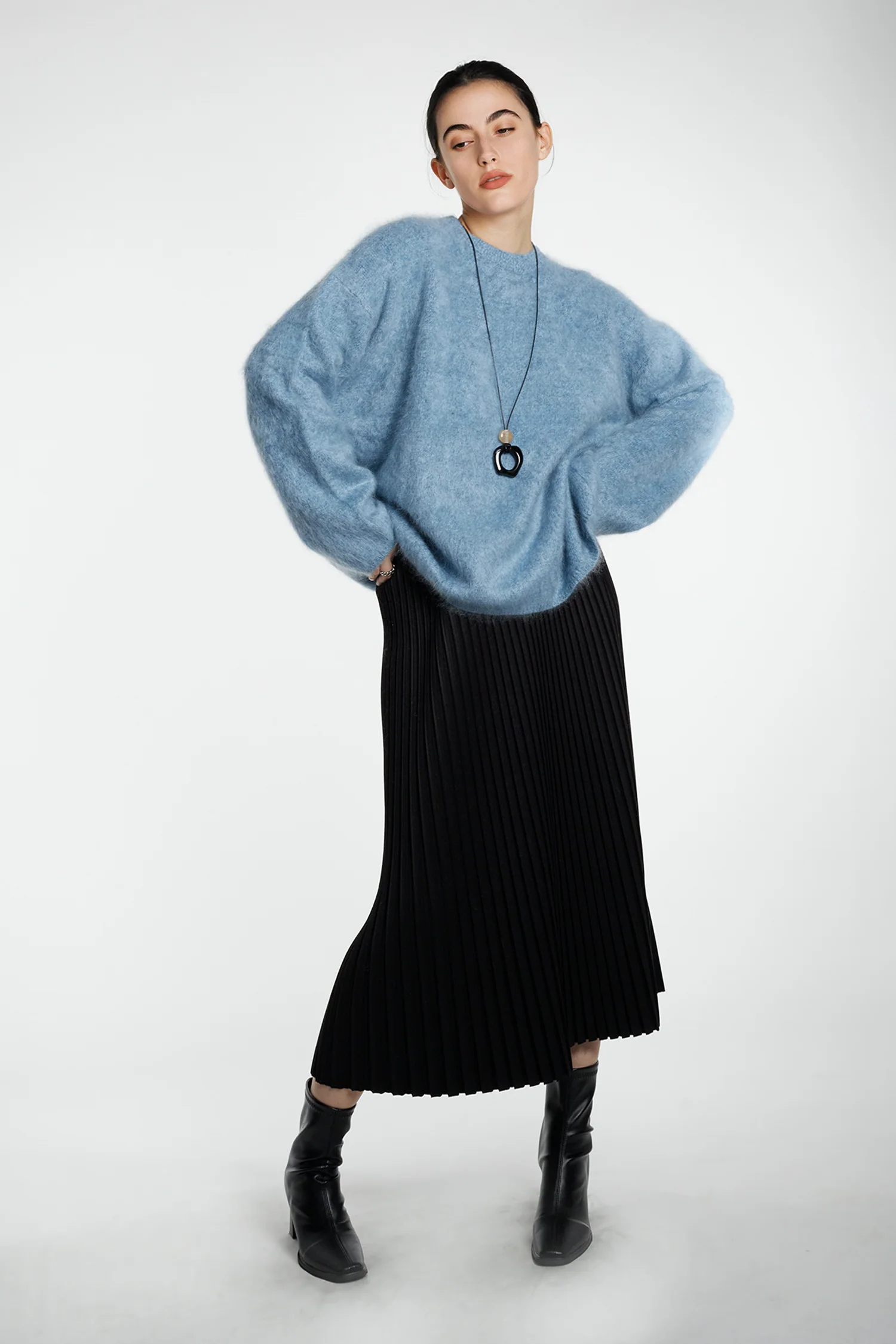 Fuzzy Oversized Brushed Cashmere Crewneck Sweater