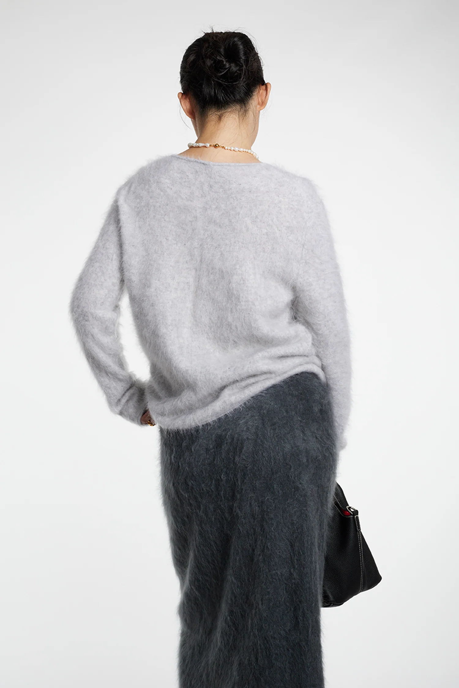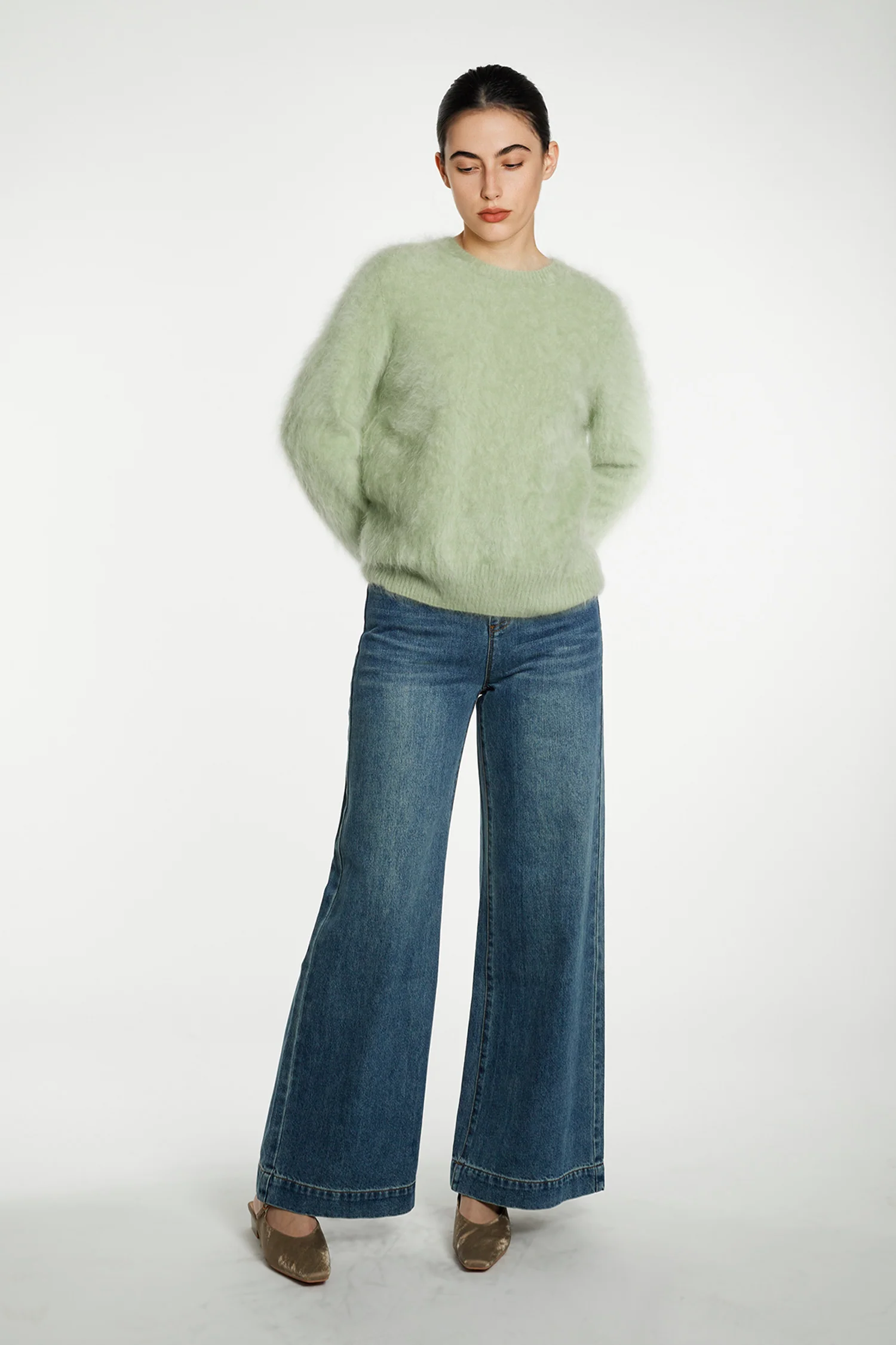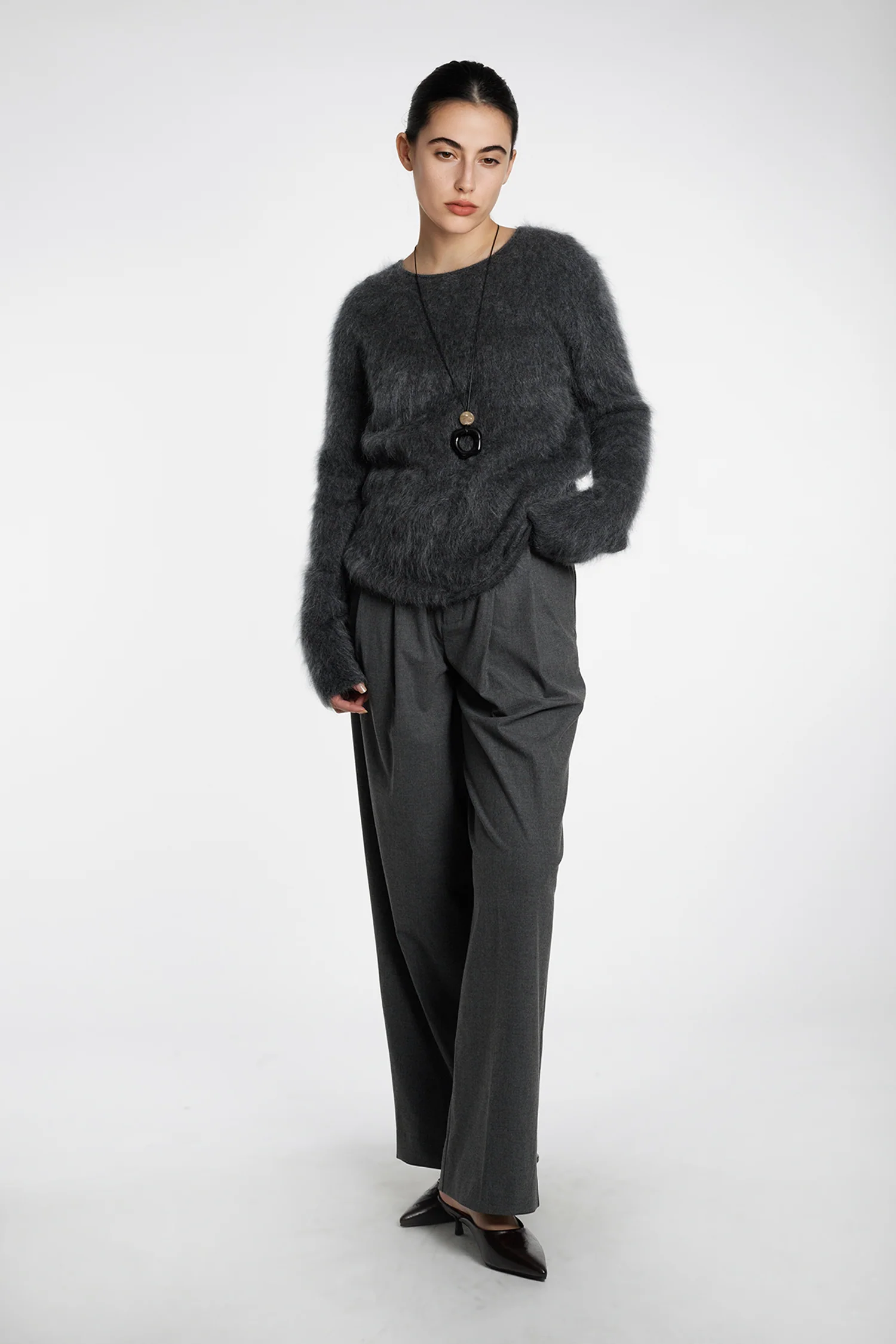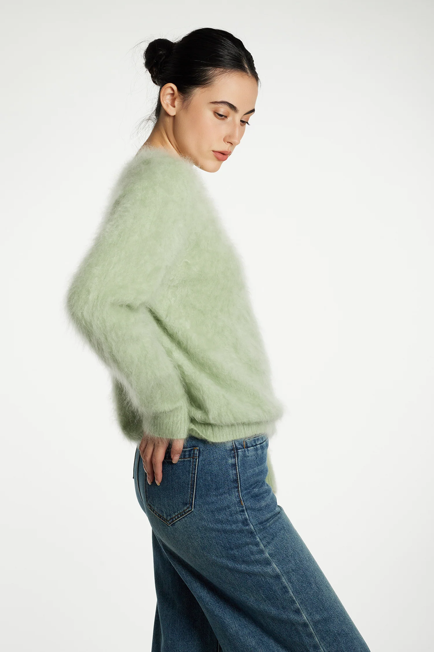 Fuzzy Oversized Brushed Cashmere Crewneck Sweater