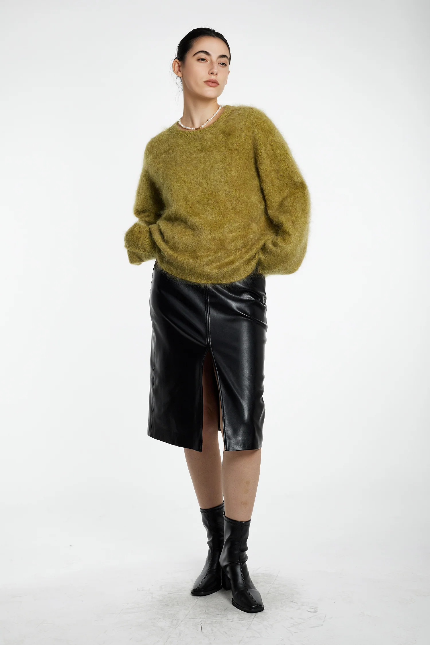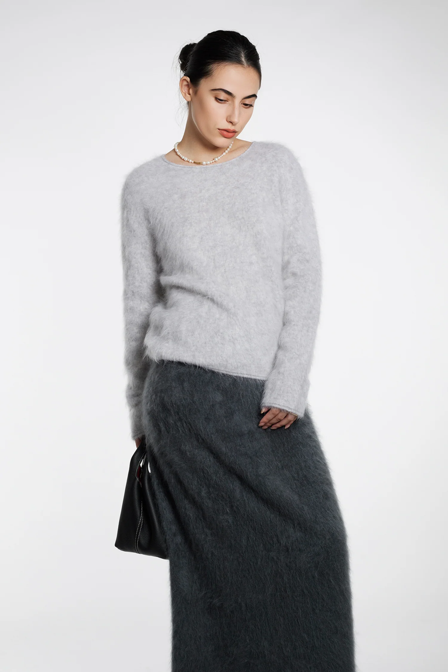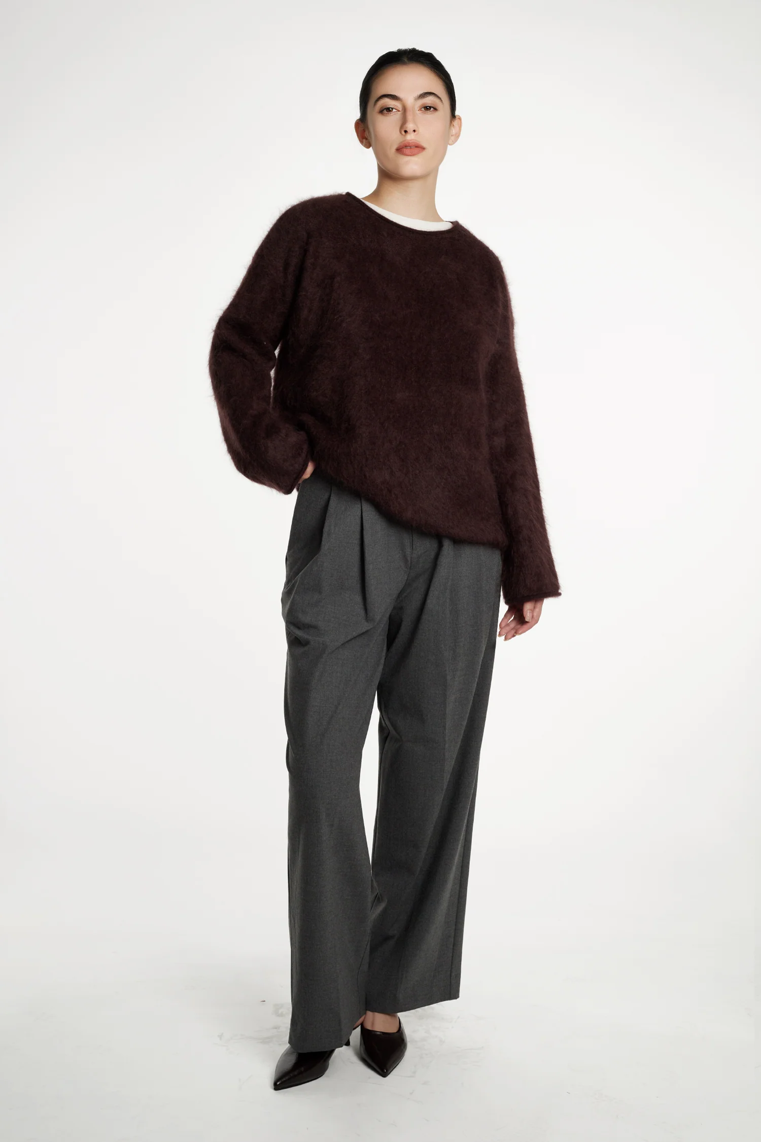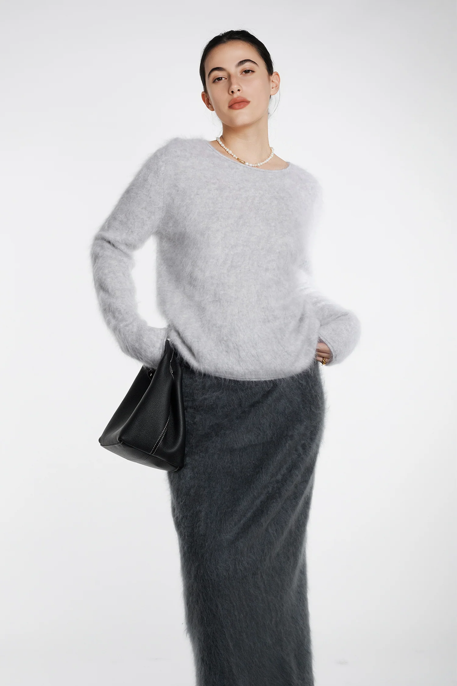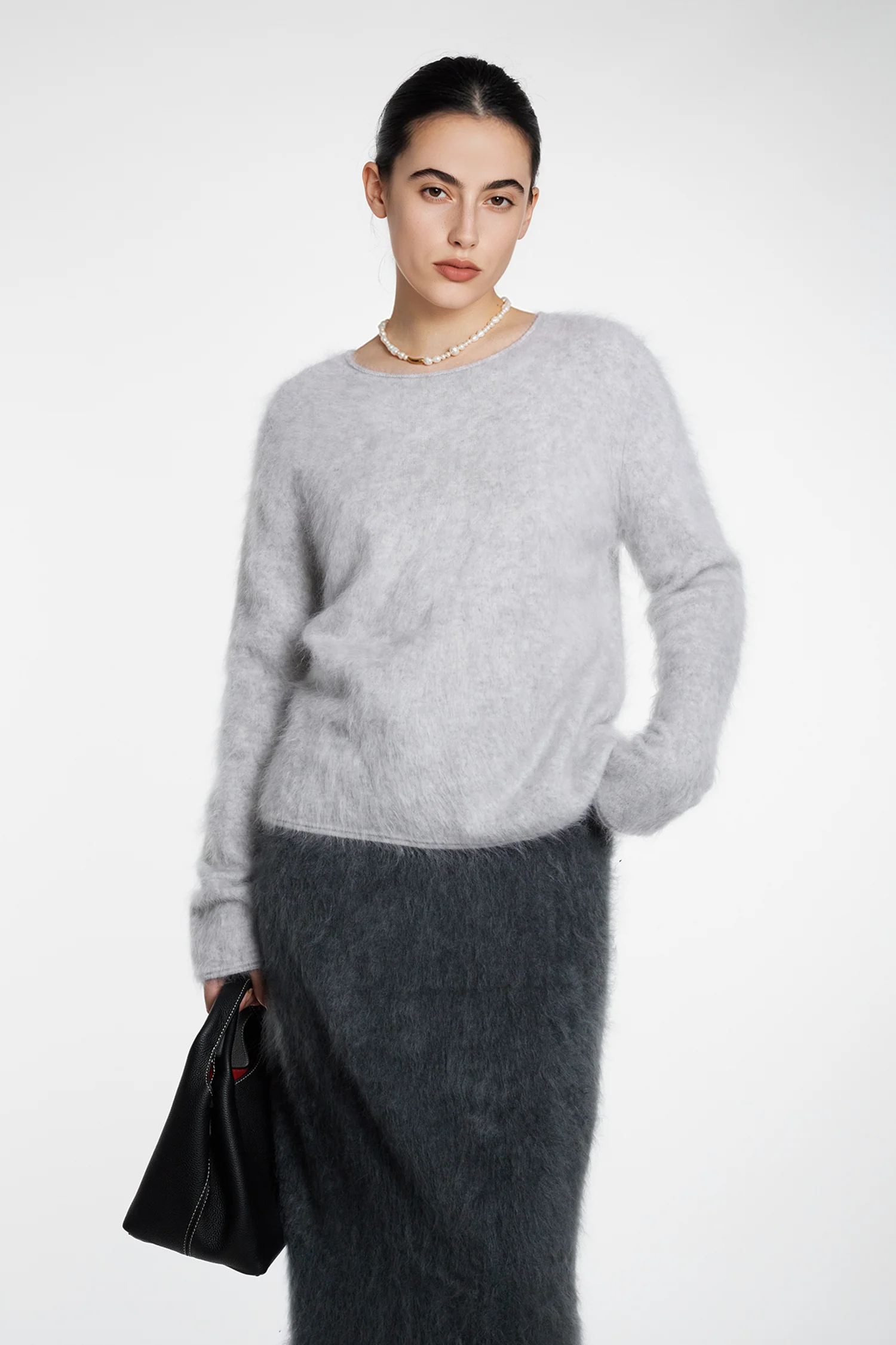 Fuzzy Oversized Brushed Cashmere Crewneck Sweater